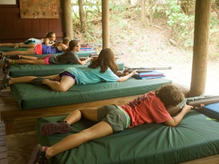 At the Riflery range our certified instructors help campers develop marksmanship skills while maintaining a controlled environment. We shoot .22 rifles and air rifles in the prone position. At the end of each session is Shoot-at-Random-Stuff Day where you can shoot holes through your favorite pair of jeans or whatever else you can think of.