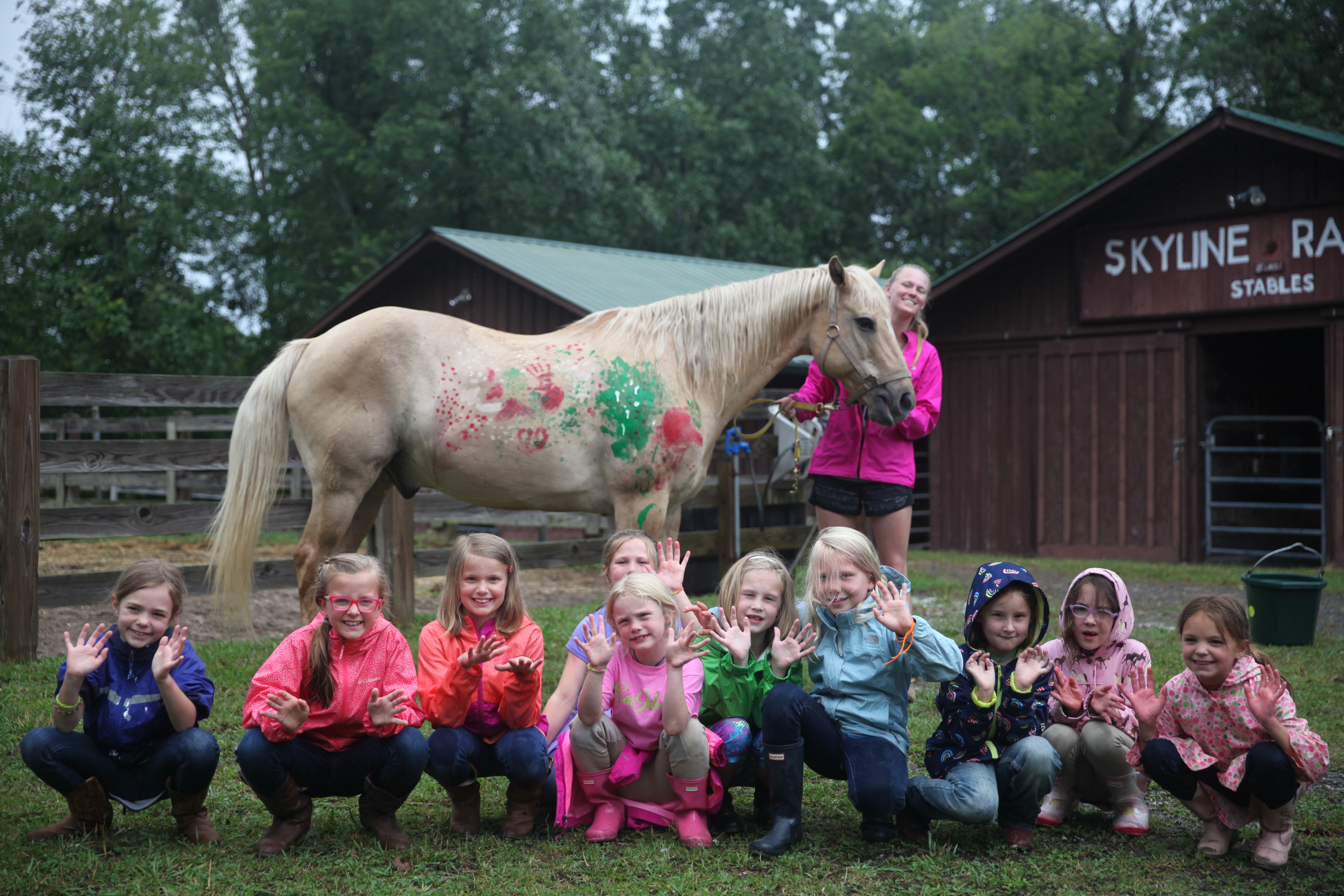 Horseback got in most of their classes today and when it got a little too wet for them to ride they all went into the stables and got ground lessons on tack (gear) and cleaning the horses and stalls. Some of the campers even got to learn about a “Paint” horse You want to be sure to see in the video exactly what I’m talking about. They had a blast!! Even when they may not be riding the horses, theres still plenty for them to do and learn!