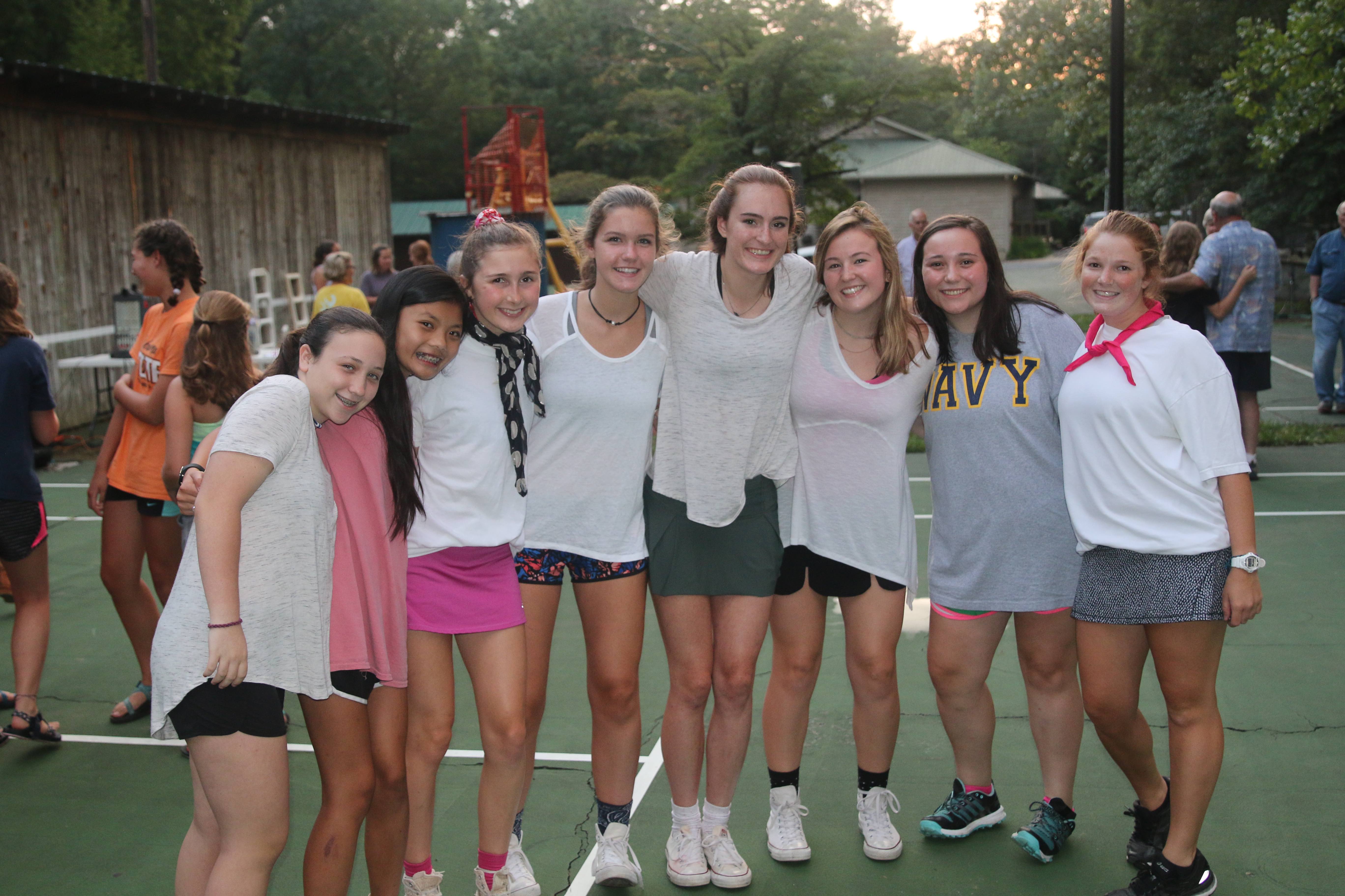 Now speakin’ of the dance, as the sun set and the temps dropped, it was just right for a little dancing under the stars out on the tennis courts with the boys from Camp Laney tonight. As the mini campers were finishing their dance, some “old ‘yeller buses pulled into camp. Sure enough, it was the boys pulling in for the dance. There’s no doubt they were “ready” for the dance you see a cloud and smell the aroma of Axe Body spray coming down the road as they pulled in. I gotta hand it to the boys tonight though, they hopped out of the busses and made their way through the human tunnel our campers formed for them and out on the courts they came and it didn’t take long for everyone to start dancing. I don’t know if it was the sock hop theme or what, but tonight everyone really got into it as they didn’t waste any time moving to the music. I know in the past, some of the boys stand off to the side for awhile and sometimes look a little more outta place then Snoop Dog at a George Straight concert, but that wasn’t the case tonight. Way to go guys, well done with your motivation!!