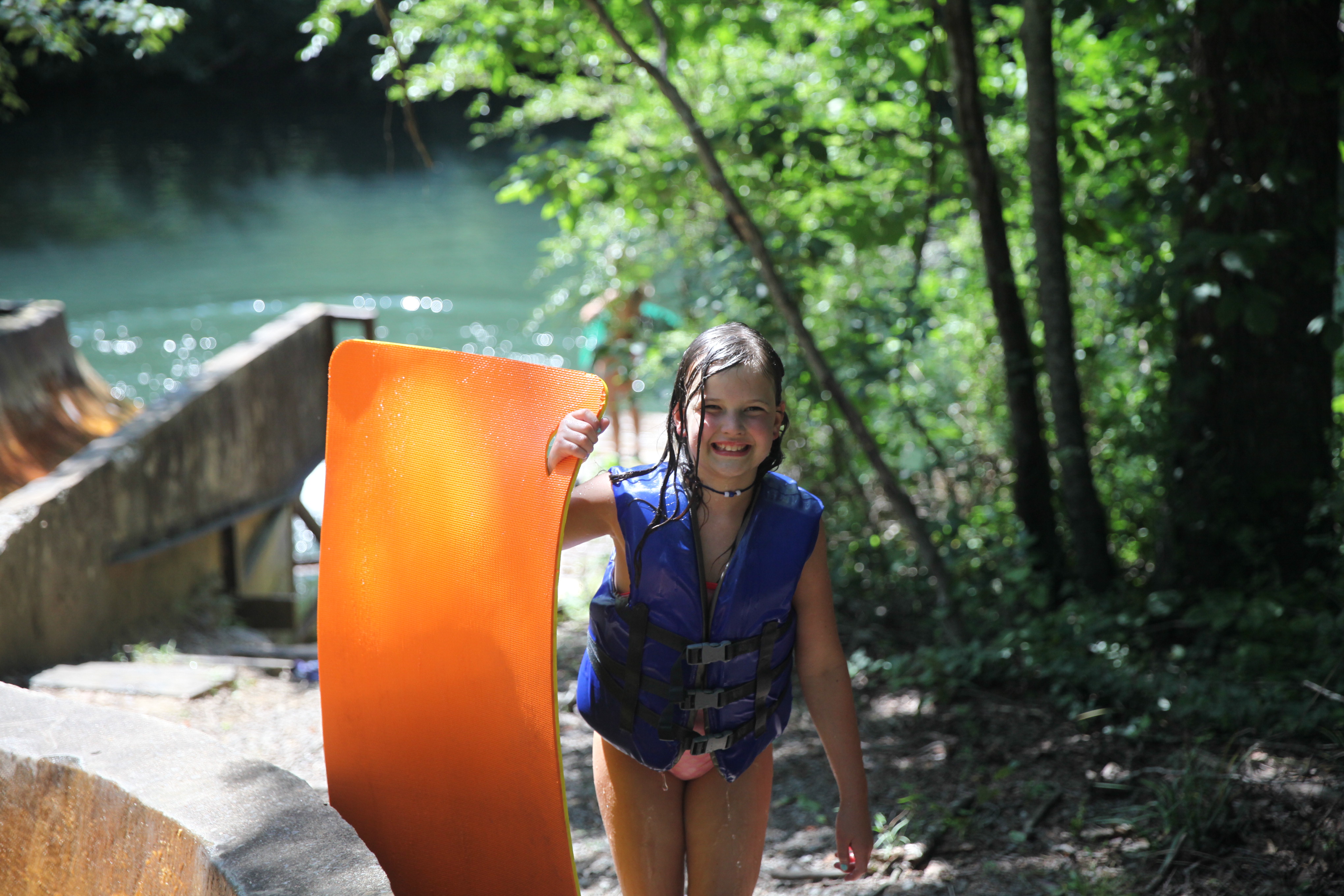 Later in the day it was great to spend a little time down at the river and watch everyone have fun cooling off. You can tell by the smiles on their faces the ladies on the waterslide were having a good time and the campers in canoeing took me up on my challenge to see what the back of a waterfall looks like when they made their way to the dam to play behind the wall of water. Of Course, you can’t go play in the river without playing on the blob and you should have seen all the campers taking turns blobbing and getting blobbed. We got some real great shots of both parts and even had a few do some “selfies” as they went flying through the air. Sometimes they even were able to hang on the the camera s they went flying. Be sure to check it out and see all the crazy ways the campers got in the water today!
