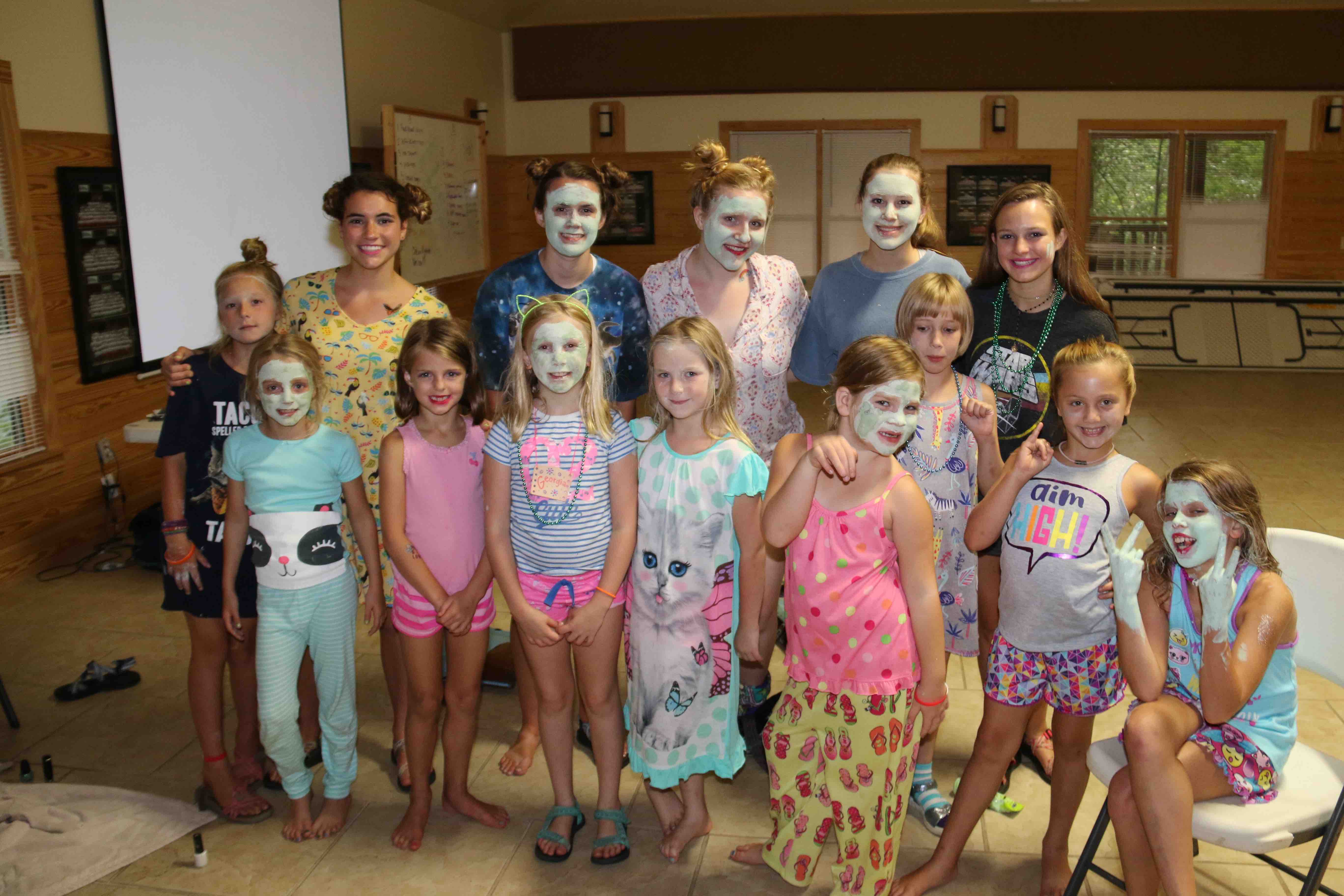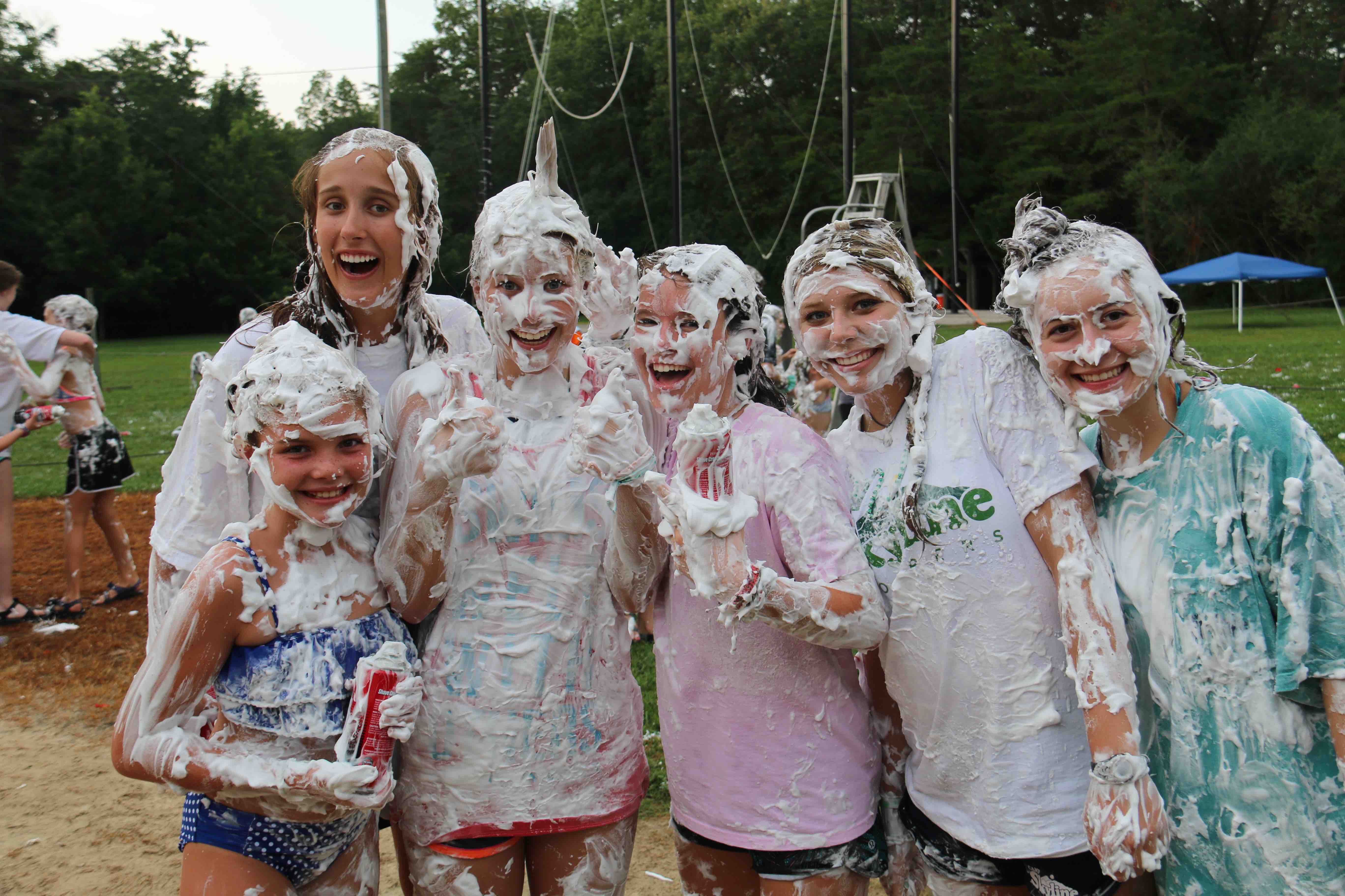 Now tonight after dinner, we decided to keep with the get to know ya activities as each cabin got to choose their own fun filled activity in Cabin Fun Night. There were all sorts of spa and make overs, tic tac toe charades and as you can tell from all the pics, plenty of shaving cream wars all around camp. I’m pretty sure it will take at least a week of rain to get the smell of menthol shaving cream out of our grass all over camp there was so much shaving cream everywhere. The campers loved it and you can see for yourself, they were covered from head to toe with it.
