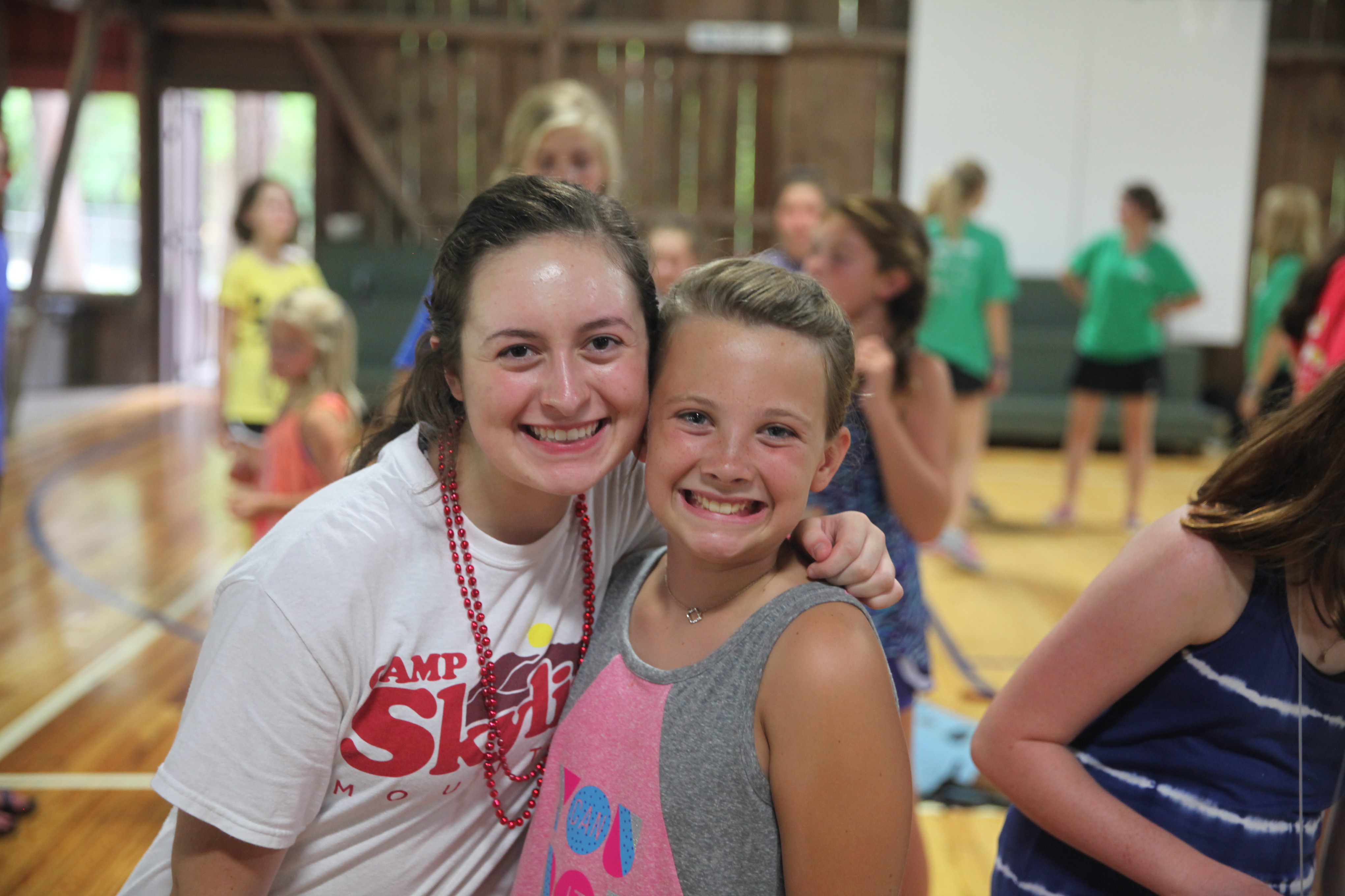 Now after lunch everyone got their Skyline Sister where we split up the campers by age and the younger campers take off one of their shoes and put it in a bag. The bag is taken to the older campers and each one takes out a shoe and returns to the gym and when they find the owner of the shoe they have, thats their Skyline sister and new friend for the session. Its kind of a “big sis- little sis” thing and the girls love it. I don’t think the whole shoe thing would work at a boys camp, or at least I know it sure wouldn’t work if they used one of my shoes, we’d have to issue gas mask for the poor person that had mine and they sure wouldn’t want to be my friend after having to hold one of my used shoes!