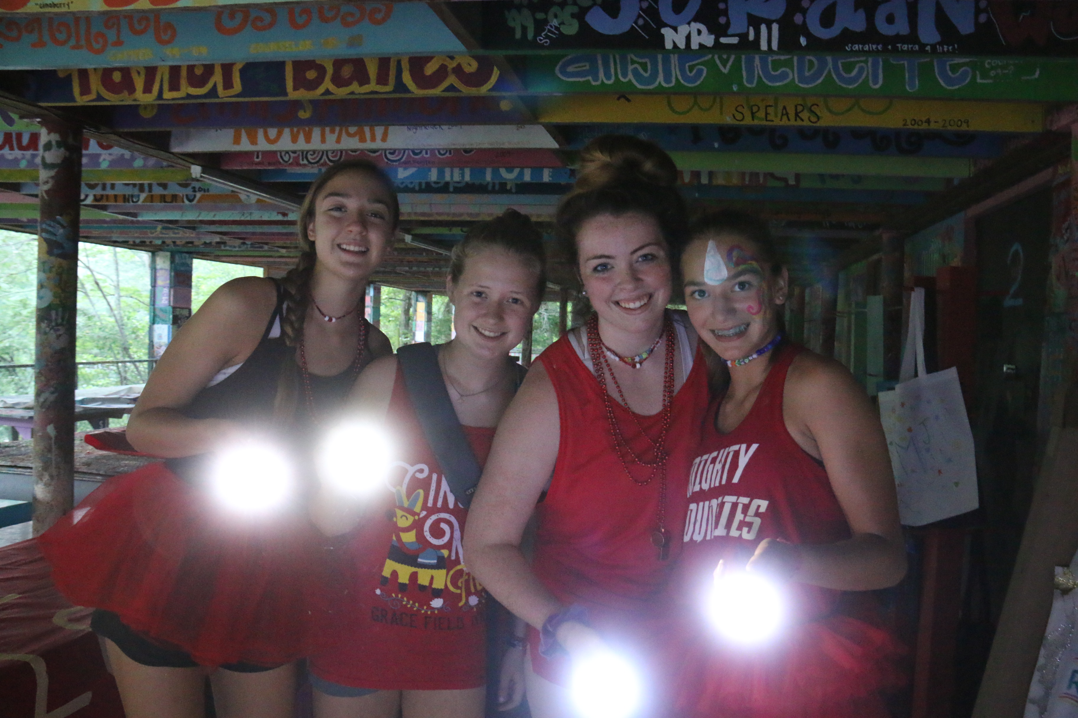 After dinner it was time for counselor hunt and your campers came prepared! They were decked out in al their club colors and paired up with other club mates to look under every rock and behind every tree trying to find the counselors. Some of the campers even looked in trash cans (and they found some counselors too!), under the climbing wall and everywhere you could imagine. There were flashlights going everywhere around camp and you could hear campers trying to lure the counselors out with false claims of “Camper sees you!!!” even though there was no one hiding anywhere around them. One of the best parts of counselor hunt is when the campers do find some counselors and walk them back to the gym. One particular group of counselors had a great hiding spot (and I do mean great) but to no avail, the campers found them and had escorted them to the gym. The campers had ear to ear grins and the counselors looked less than happy. “you ok?” I asked as they walked by. “Yep” the counselors replied, “just didn’t expect to be making the counselor walk of shame tonight” The campers were clearly enjoying the moment and the counselors couldn’t help but start laughing with the campers as they continued sulking their way to the scorers table to be recorded as “Caught”.