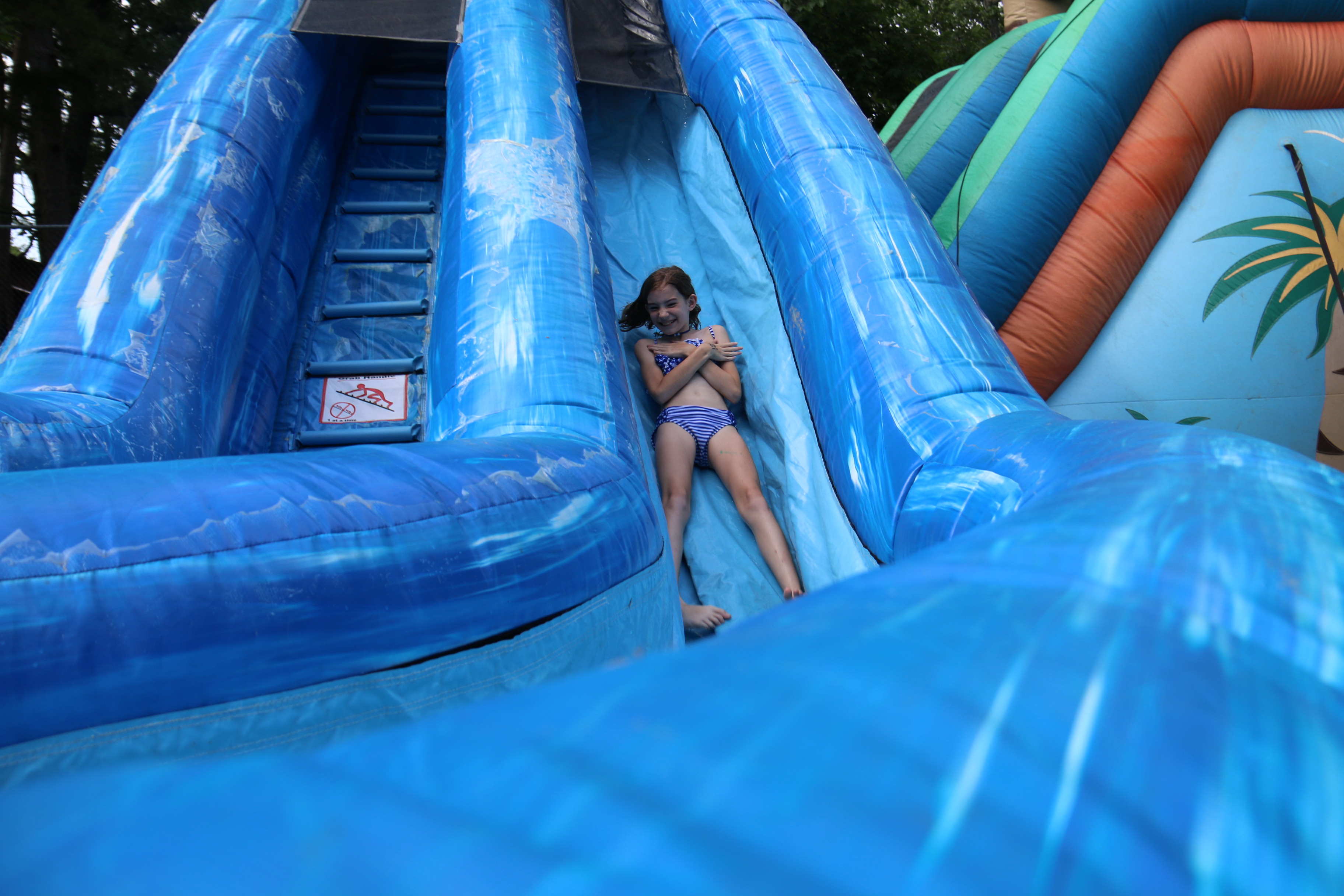 After lunch it was time for the carnival with all sorts of inflatable slides, an obstacle course, face painting, giant Jenga, football toss (some of those girls have a pretty good arm!) we even face painting and more. One of the campers favorite options was the snow cone trailer and you could tell from all the colored tongues they seemed to like the green and purple. Be sure to check out todays video to watch them in the obstacle course and on the slides, you don’t wanna miss it!