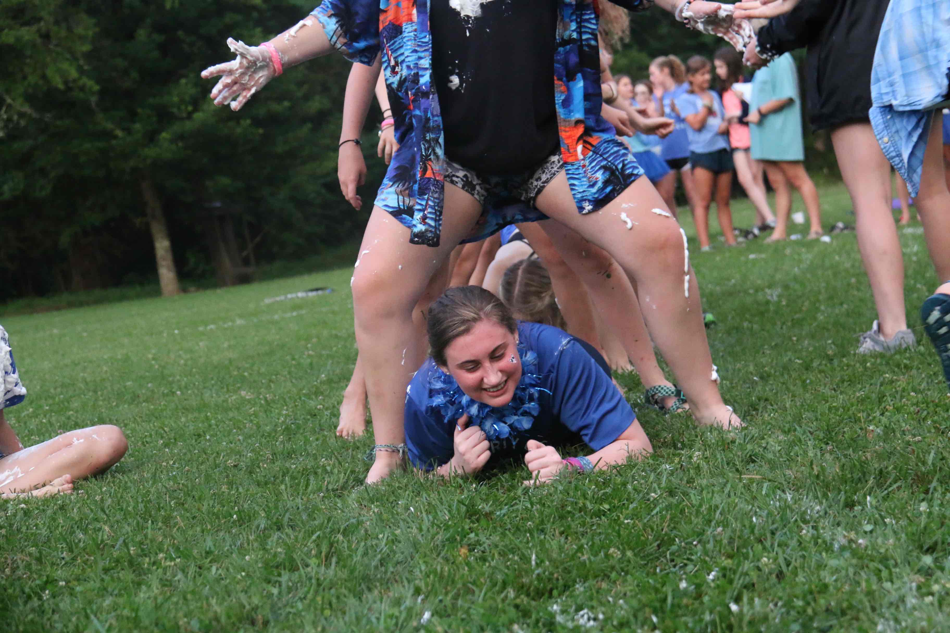 I forgot to tell ya about our activity tonight called Speed Challenge. Its where we have a series of crazy relay races, like blob run, hula hoop relay, the cover your partner with shaving cream relay, one of my personal favorites, the wrap your club in toilet paper relay, and of course the crawl through the legs to the front relay. Now these aren’t your ordinary relays, all the clubs were on the outside of a large circle and all the supplies were in a smaller circle in the middle. The first group of girls had to run to the middle as a blob with half the girls holding hands in the form of a blob and the other half of the girls were inside their blob circle. Once they got the middle they changed places and then ran back to the outside. As soon as they got back to the outside of the big circle the next group of girls in the next relay started their relay and when they got back the next group started and on and on. This happened for 10 different relay races back to back to back and so forth. And that was just the girls in Riverside. As soon as they were finished with their 10 relay races, we rest everything and then the girls of Summer place went. Then the ladies of the Lodge and then half of Hut Row and then theater half go Hut Row. So yea… if your math os correct there were around 50 relay races run tonight. All back to back to back and all crazy and sloppy fun! What did the girl that weren’t racing in each race do you ask (I’m glad you asked), well, they were cheering and shouting on encouragement as loud as they could all night long. You could hear them cheer all across the mountain. Theres no doubt in my mind they ALL are sleeping very well tonight!!