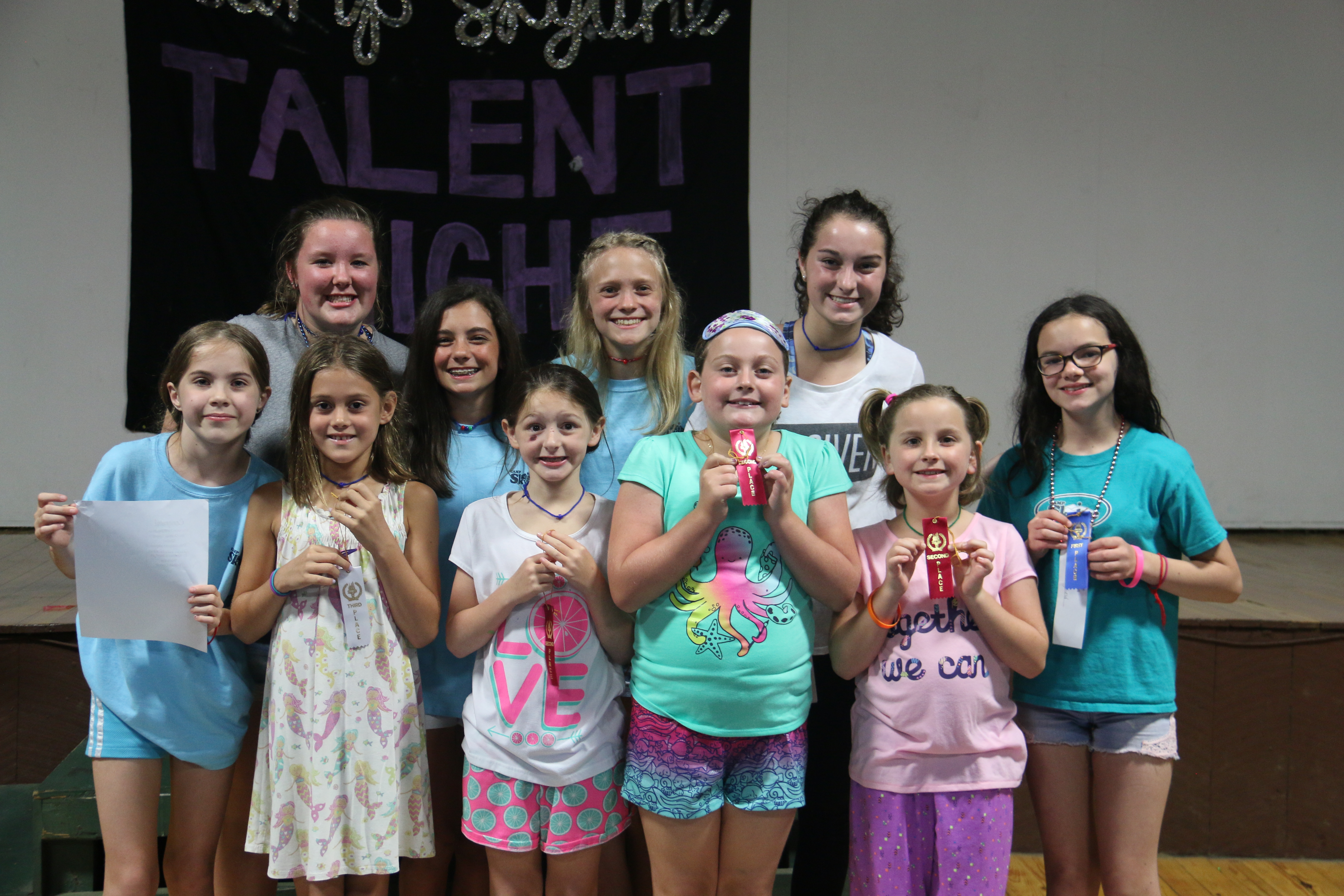 Tonight we decided to slow things down a bit and let all the campers get their legs back under ‘em while they enjoyed our very own Skyline Talent night. All the camper that preformed were top notch and I do mean TOP NOTCH! We had everything from singing, to gymnastics, piano and guitar playin’, and more. The campers really enjoyed the show and you could hear them cheering each other on all over the mountain. All the campers were great and the judges had a hard time picking the routines that stood out but they finally did and came up with tonights winners…………..(ya hear that drum roll in your head again?)………….. Groups 1,2,3&4 3rd: Carrie Young 2nd: Collete Fancher, Caullier McMullen & Ann Reed Tayler 1st: Ellie Mayfield Overall winner: Daisey Whittingham