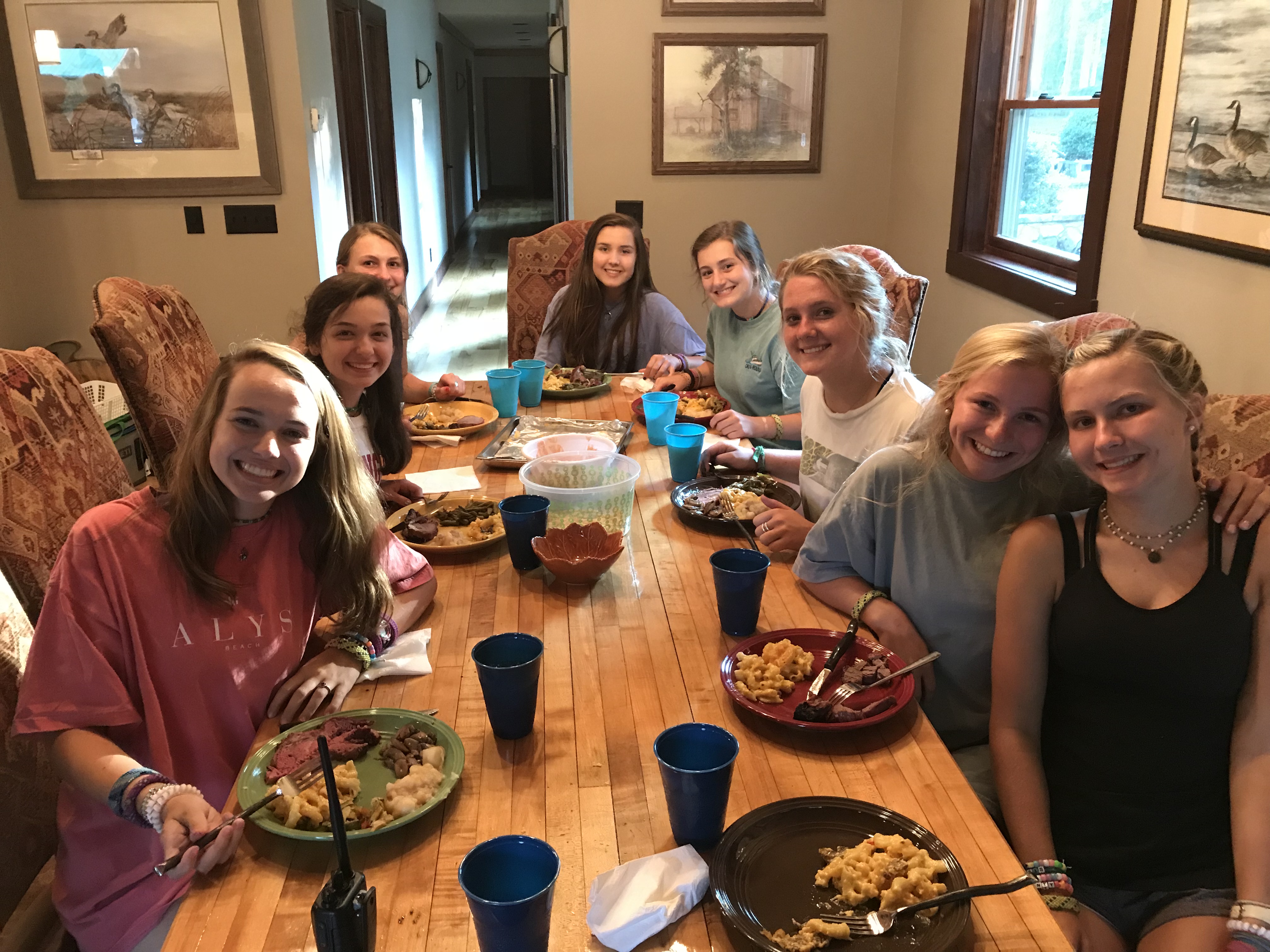 As you walk around and talk to everyone, its easy to tell which campers are the “age out” campers. Those are the ones that are at camp for their very last time as a camper and they were starting to realize their time here is coming to an end. You hear them yelling “one last time” as they ride down the zip line or find a way to get their last chance at being blobbed. As a special treat, Sally always cooks a great home cooked meal for all the age outs over at our house and tonight was no exception. They dined on beef tenderloin, mac and cheese, mashed potatoes, green beans, veggies, snacks as an appetizer and of course, they finished their meal with several (and when I say several, I mean MANY more than one) cups of homemade ice cream. Tonights choice was strawberry, butterfinger, blueberry and of course….oreo! It was really great to enjoy an actual quiet meal with the campers that have spent so much time here at camp and we’ve had the privilege to watch grow up over the years.