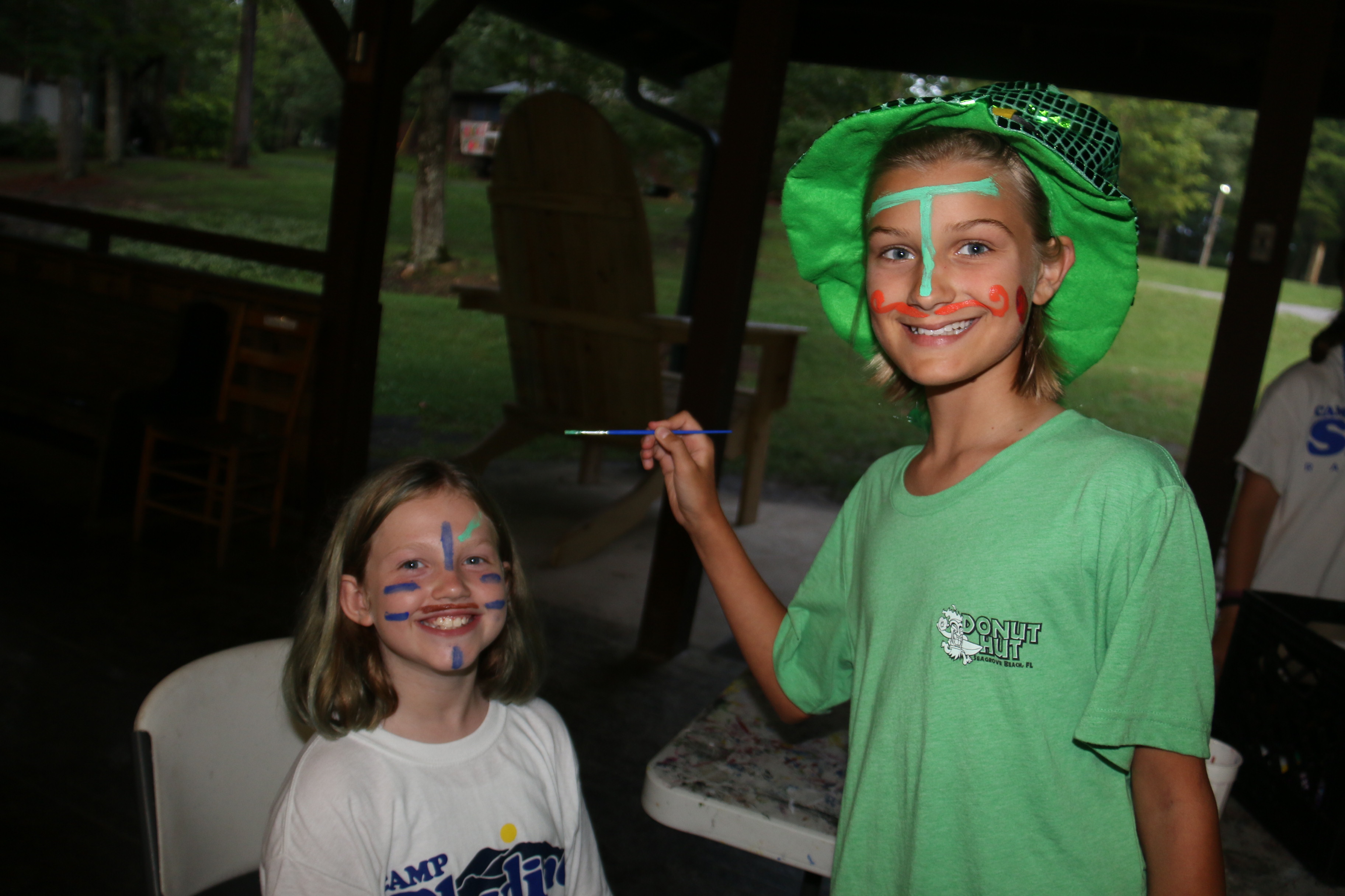 Now tonight we wanted everyone to keep getting to know all their new cabin mates so we had out “Cabin fun night” where each cabin got to choose what they wanted to do together. We had everything from shaving cream wars (the field has a nice menthol smell to it now thanks to all the shaving cream on it), crab soccer on the sports field, spa night (we are at camp right…..spa night????) gaga ball, face painting, tie dyeing and a strange game of hide and seek that the girls love and I still don’t understand. You could hear them yelling and laughing all across camp as the night went on.