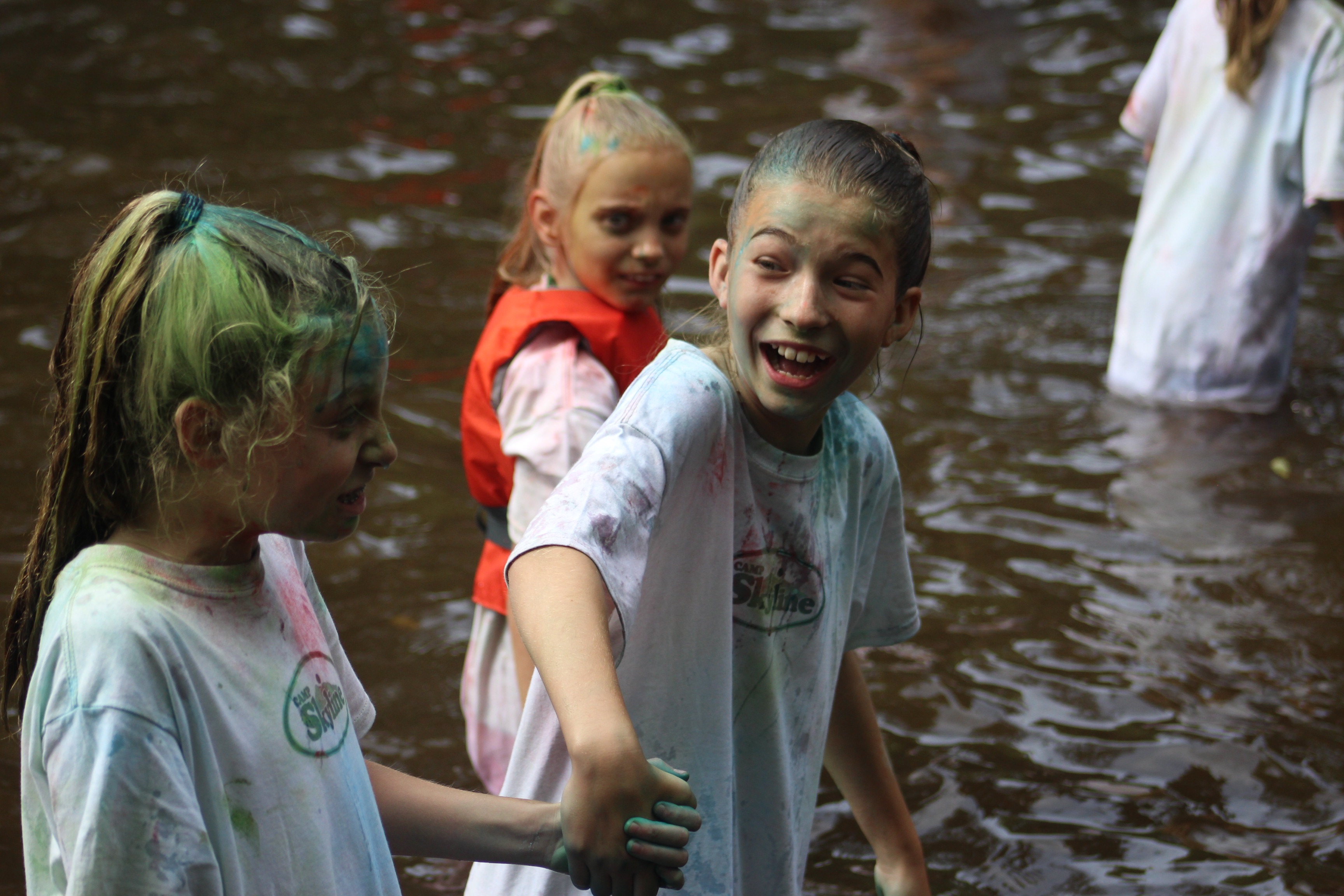 After Color wars, it was time to clean up in the river. By then the temps had warmed up and no one complained one little bit about hopping in the river to play, um, I mean clean up and cool off to get ready for the big ChEER OFF they’ve been working on all week.