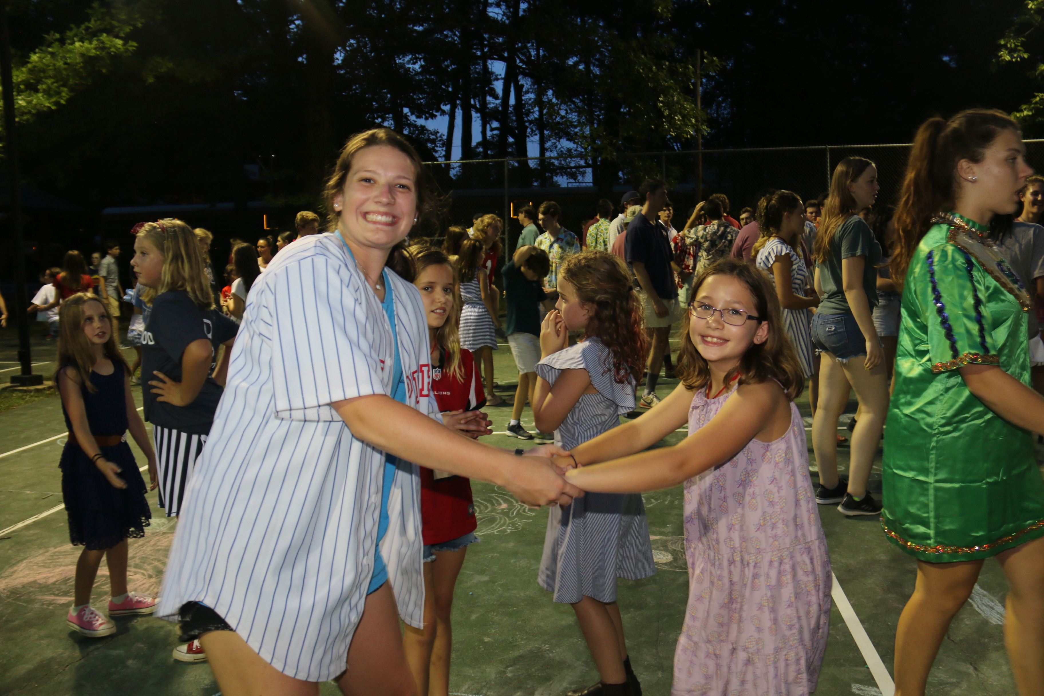 Just as in their activities, it didn’t take them long to get dancing and grooving (anyone use that word anymore?) to the sounds of the music blaring from the speakers out on the courts. The boys followed suit and before long, everyone was enjoying a great dance out under the stars of Skyline!. Before you knew it, the dance was finished and it was time for all the boys to head back to the buses and head back to camp, just wishing for one more song to dance to. Oh well guys, maybe next year!!.