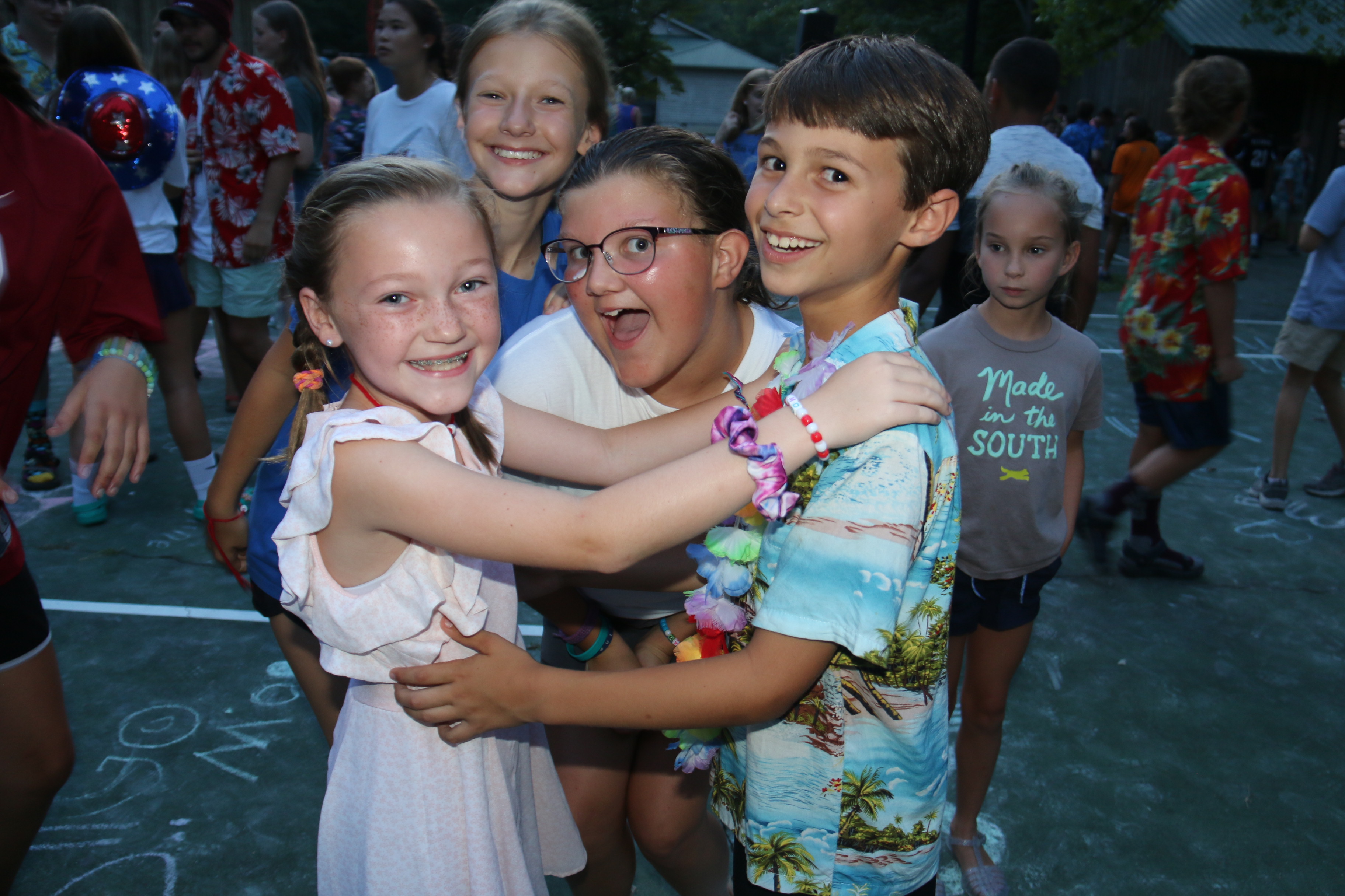 And now….. the rest of the story we started this whole blog off with, the boys from Camp Laney were over here dancing with our lovely campers. You could feel the excitement building throughout the day as all the campers were talking about tonights dance. You could smell, um… I mean see the cloud of Axe Body spray approach and hidden in the middle of the magical manly mist were the buses containing the recently spray re-applied boys from Laney! All the girls yelled like something I could only compare to what it must have been like the day the Beatles landed in the USA. I’m not sure why they were yelling and screaming….. they just were. Hey, I only report the stories, I don’t make them up….. well…. mostly. Once those now terrified boys got off the bus, the girls had formed a tunnel to lead them straight onto the tennis courts or as they were decorated tonight, the big dance floor!