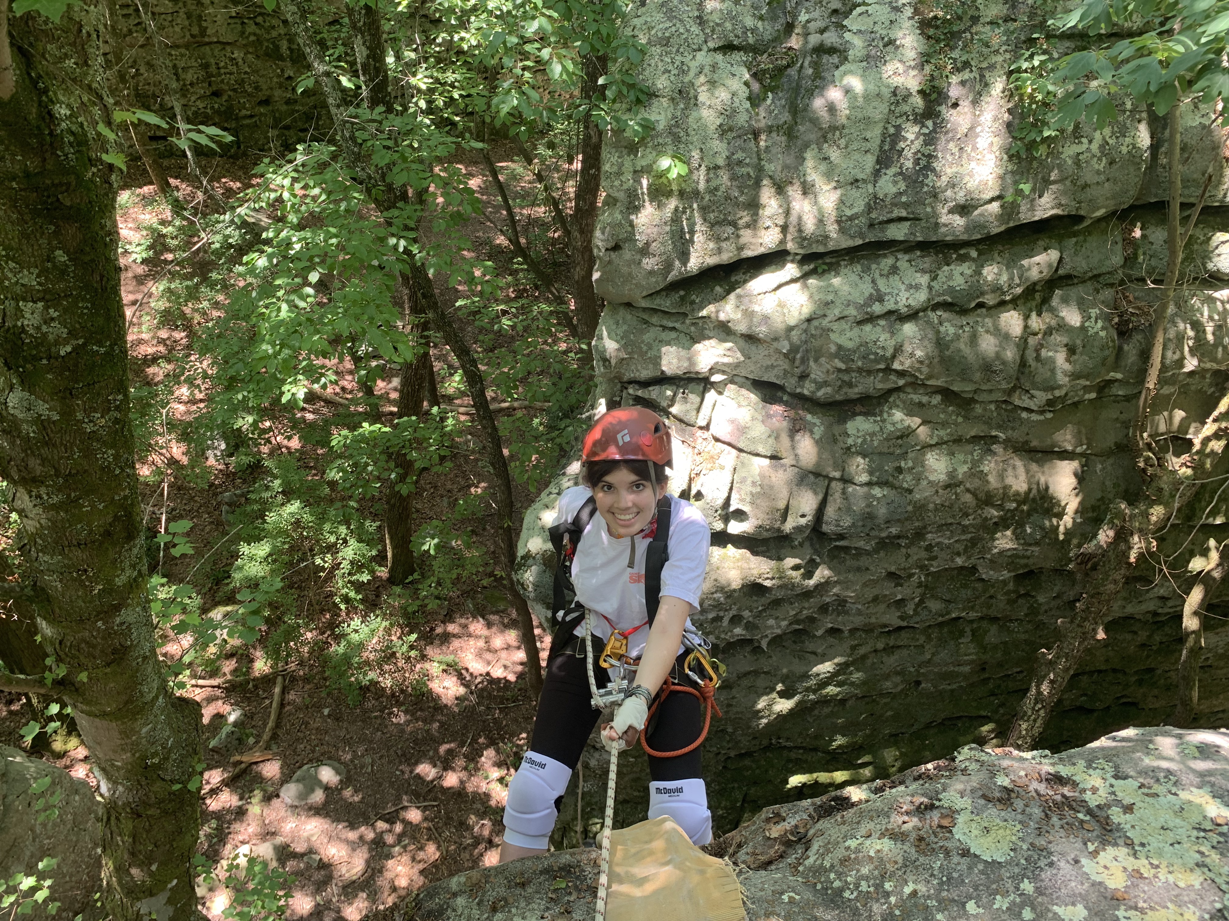 The campers in the caving and repelling class made their first out of camp trip this afternoon. We packed up lunch and took it with us ‘cause we didn’t have any time to spare as we got right out into the woods over on the Georgia side of the brow and then did exactly what they had been practicing all week. They went down and up the ropes we had hung, over and over, carefully working the edge of each rope placement to perfection. We only had 2 1/2 hours and some of them were able to make 9-10 trips down and up the rope. They were rockstars today and I couldn’t have been more proud of the work they’ve put in this week. It definitely paid off for them today and you could see their smiles grow almost as much as their confidence each trip over the rock edge. Tomorrow is a class in survival where they’ll make their own sterno ovens and hypothermia kits (like they’ll need those anytime soon???) and learn all the different knots we use and why we use them. Our next trip will be Monday morning where we’ll spend most of the day underground in a SCCi cave (including lunch in one of the huge rooms and a constant 57 degrees!!).