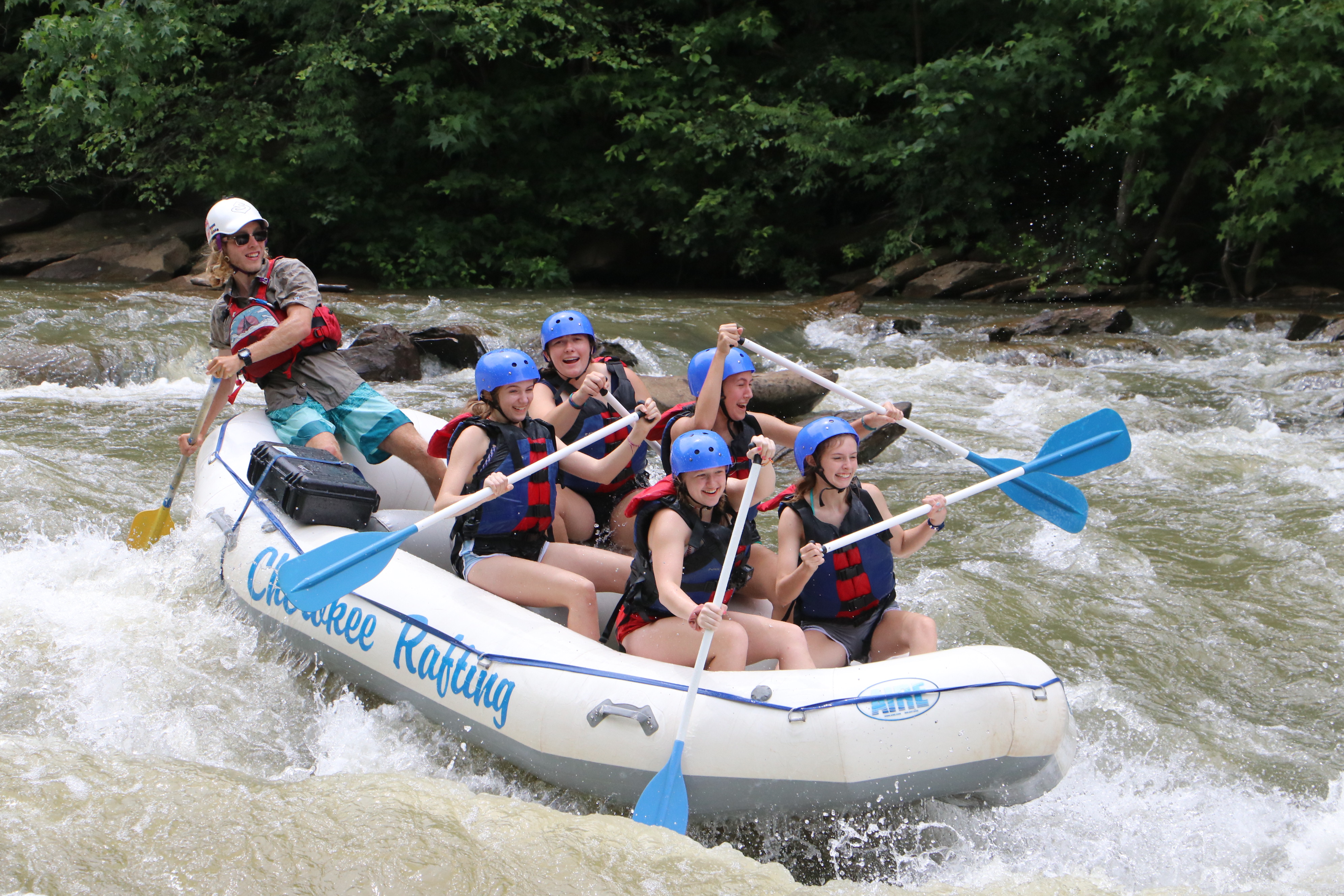 First thing this morning we had a group of campers load up and head to challenge the white waters of the Ocoee River up in Tennessee. They all made it back just before dinner and were talking about the fun they had bouncing up and down over the rapdis. If ya look through the pics, you can see there are some looks on their faces that either confirm that (laughing) or completely deny that (fear). Either way, it was a day they won’t forget from the looks on their faces.