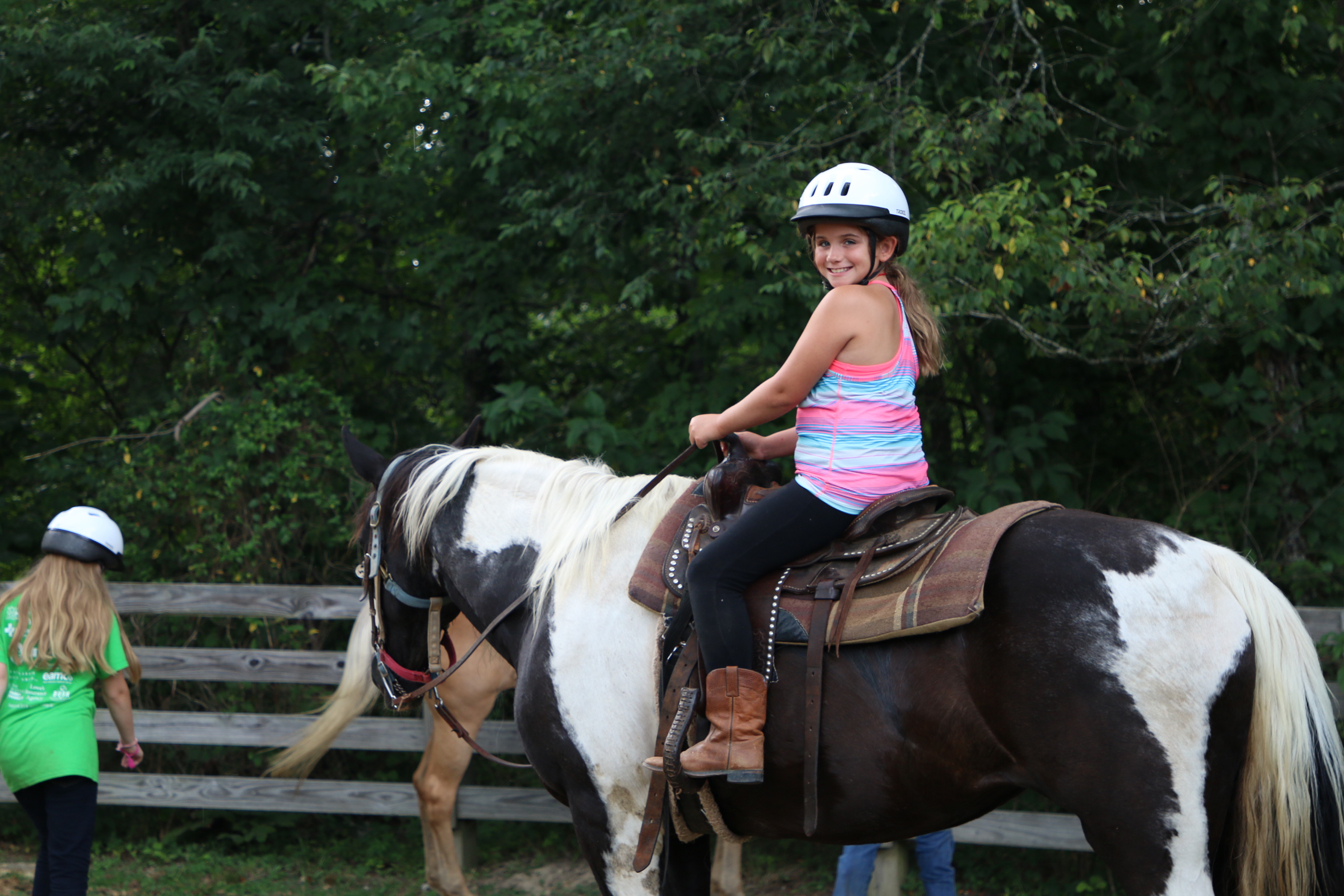 Shortly after cabin cleanup the girls head to their club meetings, learn more songs and bond together with all ages. It’s really neat to see the older campers braiding the younger girl’s hair or leading the group in cheers. This is also a time to hunt for the Horseshoe that has been hidden around camp and worth several points for the club who finds it. See if you know where it is after reading the latest clue…