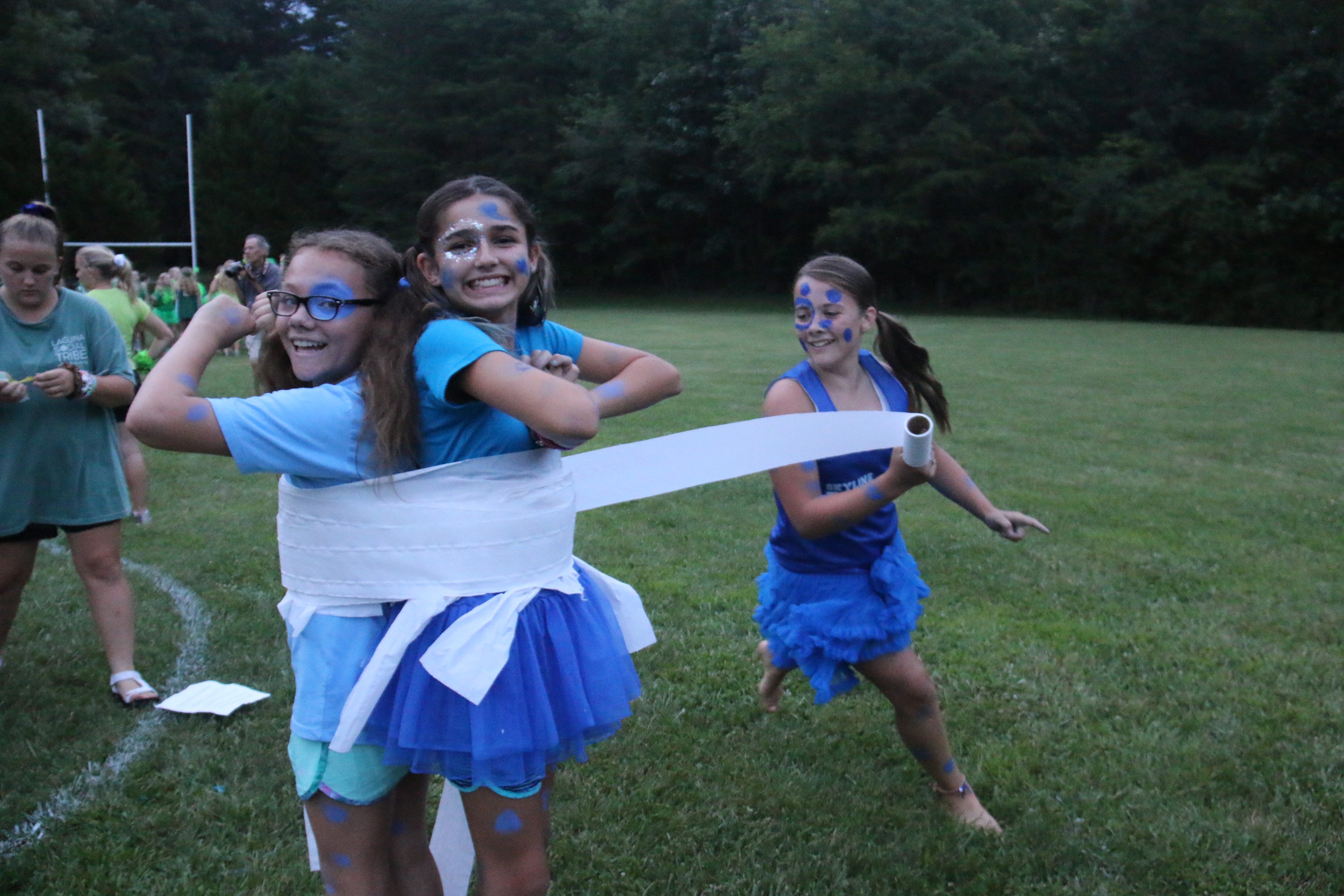 After everyone returned to camp we began our nighttime activity, Speed Challenge. This is such a fun activity on the Riverside field where the clubs compete and are all decked out in their club colors. Check out the pictures of your daughters in these hilarious events. Final results are Rangers 1st, Mounties 2nd and Troopers 3rd.