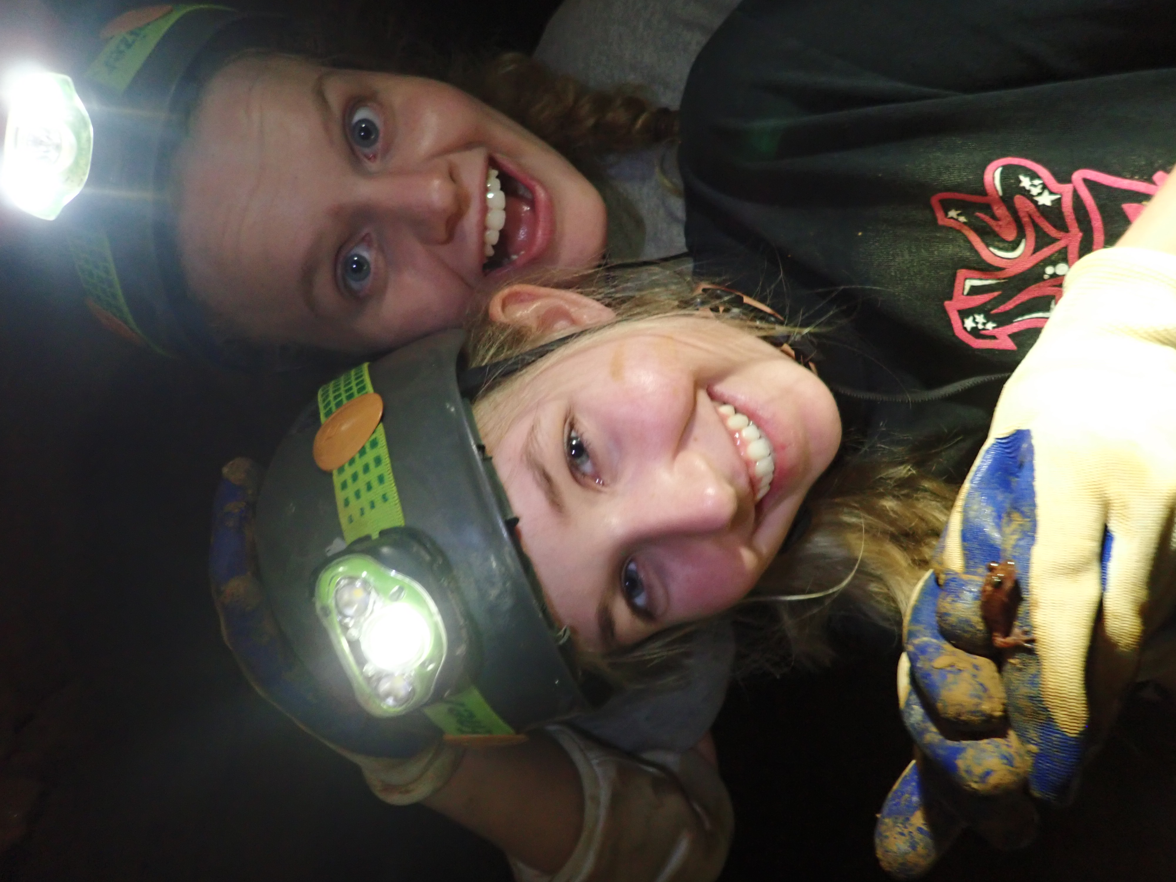 Pretty much the same entry into camp for the campers that went caving today. They spent all day underground exploring Howards Waterfall Cave in Trenton Ga and we had a great time. I’ve never had campers wanting to explore every nook and cranny of the cave like they did, but they found everyone and checked it out. We even had lunch about 100 feet underground in a cool 57 degree “private dining area” (and by that I mean no one else was in the cave with us so it was nice and quiet). One of the highlights for everyone was the campers were amazed at how dark it got when all the headlamps were turned off so on the way back out after lunch, they asked if we could turn them off again and have a “rest hour”. Well, who am I if I don’t try to make the campers happy so we cut the headlamps off and took about a 30 min nap in the cool, dark confines of the cave. They said it was one of the best rest hours they’ve ever had while they’ve been to camp. I’d have to agree with them. Even though we didn’t see anyone else in the cave, they did manage to find a friendly salamander or two for them to pose with in the pictures.
