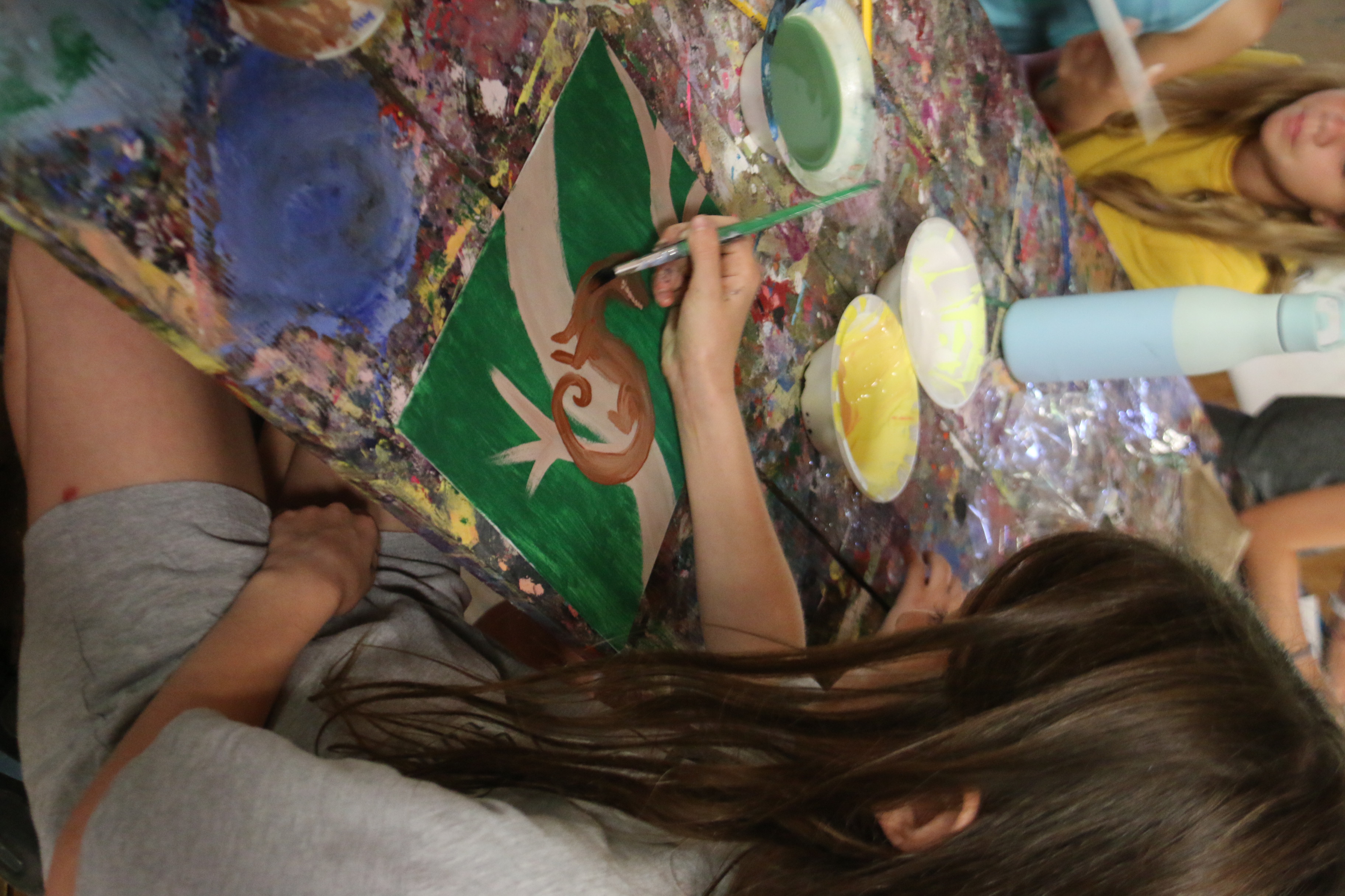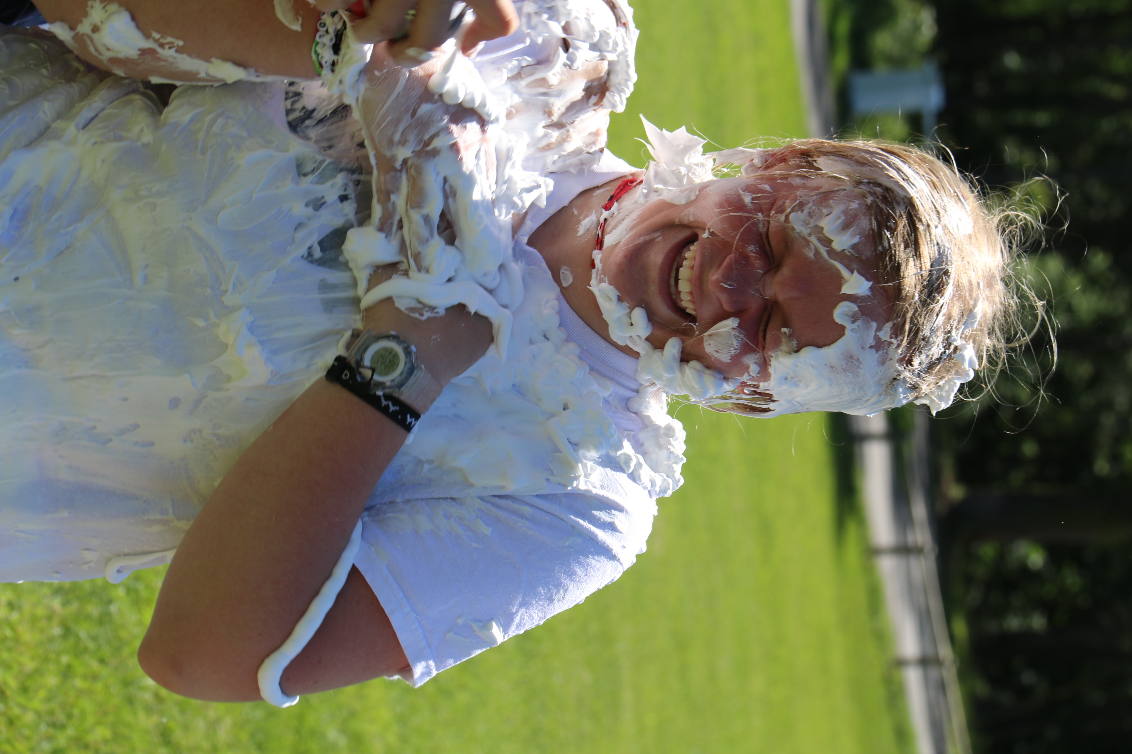 After Speed Challenge we went straight into a 1st session (only) speciality called Color Wars. Each camper had a bag of “color” and when they said go, it was club vs club (which very quickly turned into every camper for themselves) and the object was to get as much color on anyone else. Needless to say the whole sports field turned into a giant canvas of flying colors and yelling. I’m not really sure how they scored this for the clubs since everyone I saw afterwards was COMPLETELY covered in different colors. The good news was after all the color had been used, everyone got to take turns jumping in the river to “wash off” as best they could before heading to their cabins.