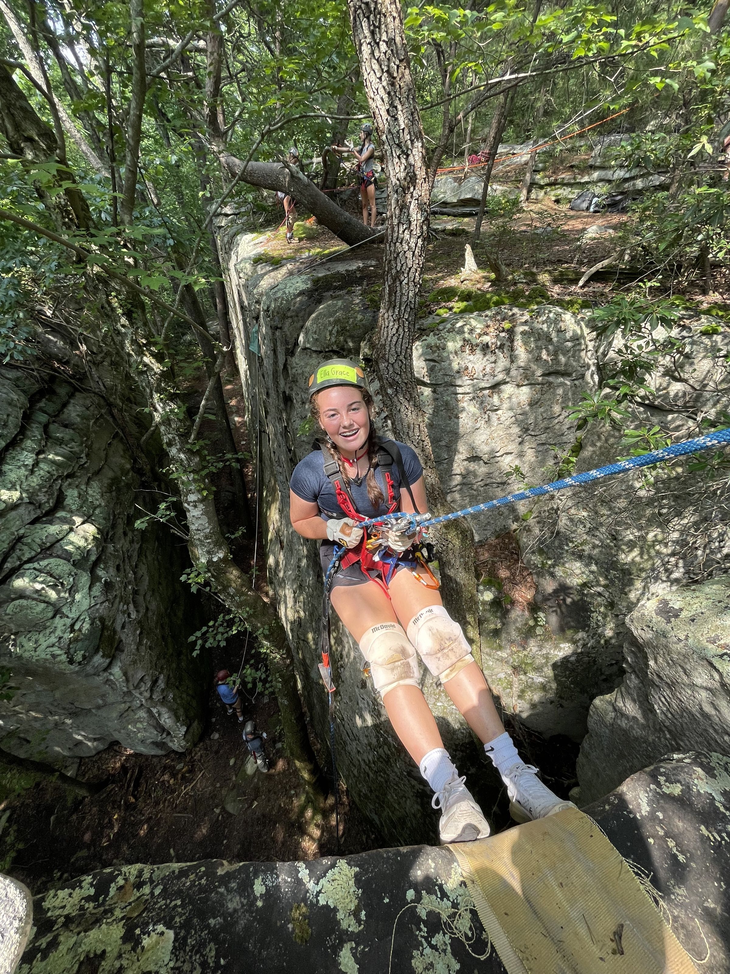 Now back to today… Like I sad, the ladies were all encouraging each other in their classes and you could see the campers grow with confidence as they mastered each challenge with their friends support. Speaking of growing confidence, the ladies in the CSR class went on their first out of camp trip this afternoon and when they first started out rappelling down and climbing back up the rock wall, you could tell they were cautious. By the time they had made several trips up and down the ropes, they were moving like a well oiled machine. To be able to see them expand their comfort zone and work in their “growth zone” was amazing as they just got better and better with each time on rope. There are some great pics of them out on the cliff so be sure to check them all out, you’ll be surprised at what your campers are doing.