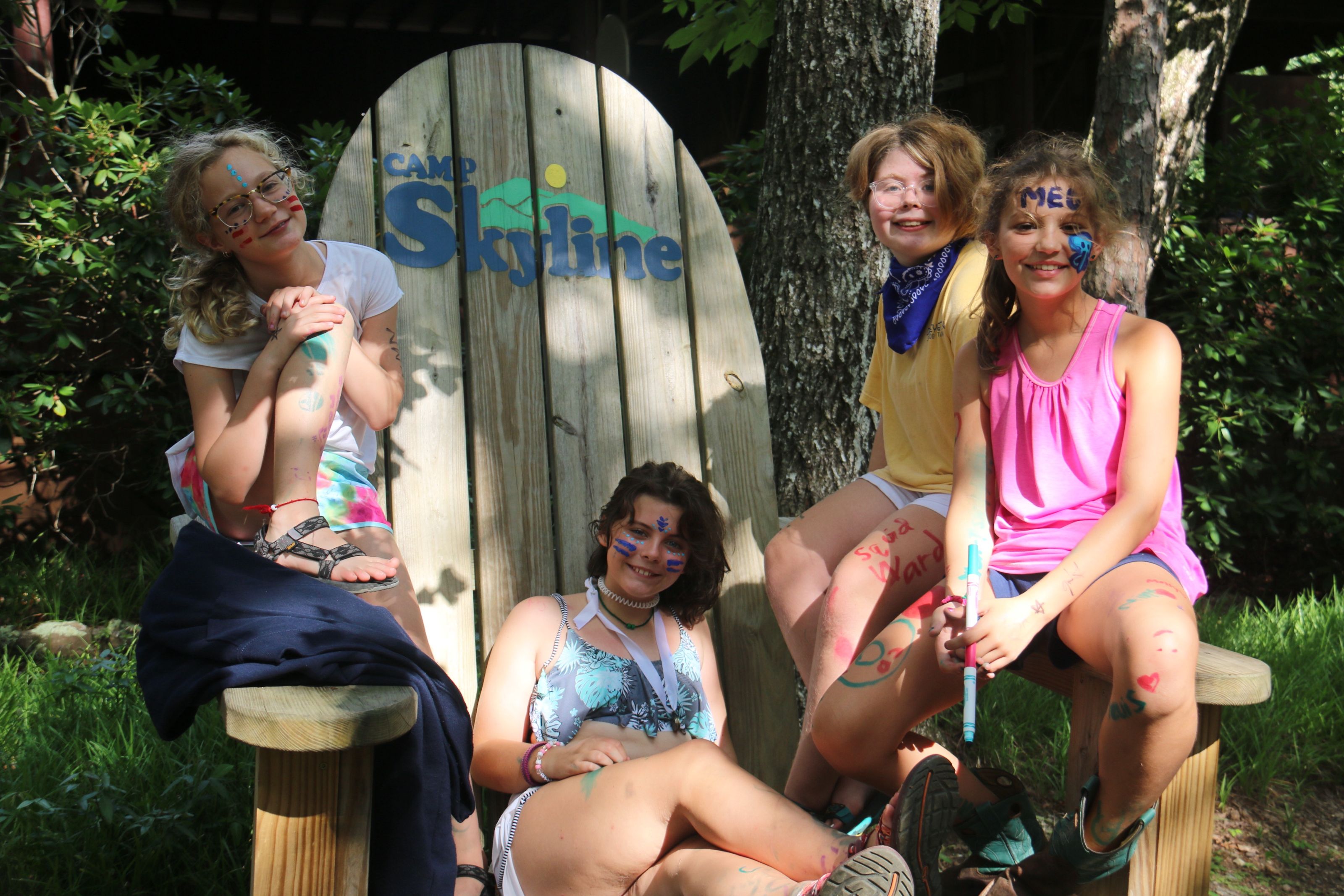 After Church and a delicious lunch it’s off to rest hour and then on to the Skyline Carnival! This is a fun time of games, popsicles, face painting, slip n’ sliding, swimming, and so much more. I believe the older girls really like laying out by the pool and blobbing in the river. Even one of our nurses blobbed today and did the water slide! Its great to see AND hear the camp filled with so much laughter… The pictures should say it all!