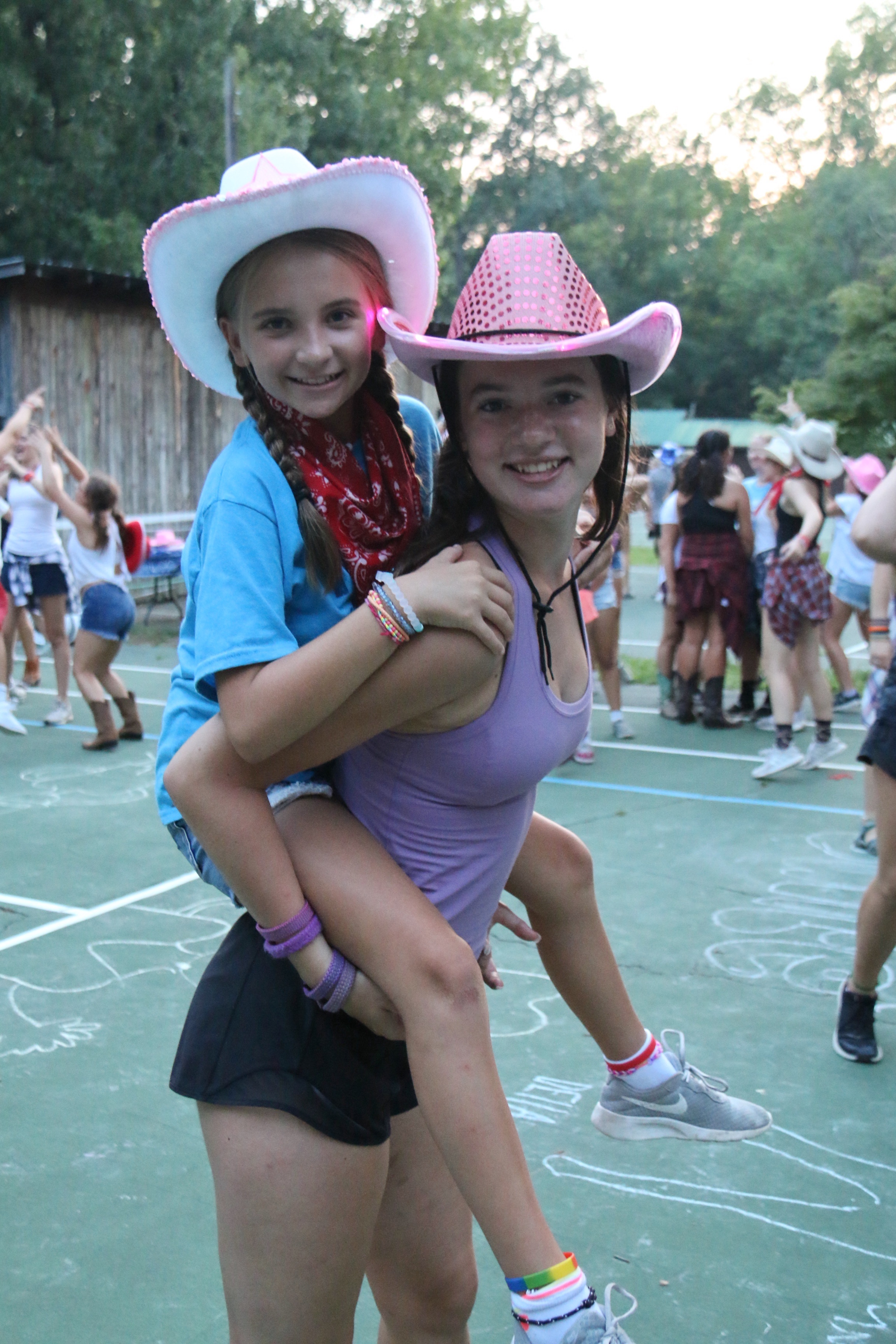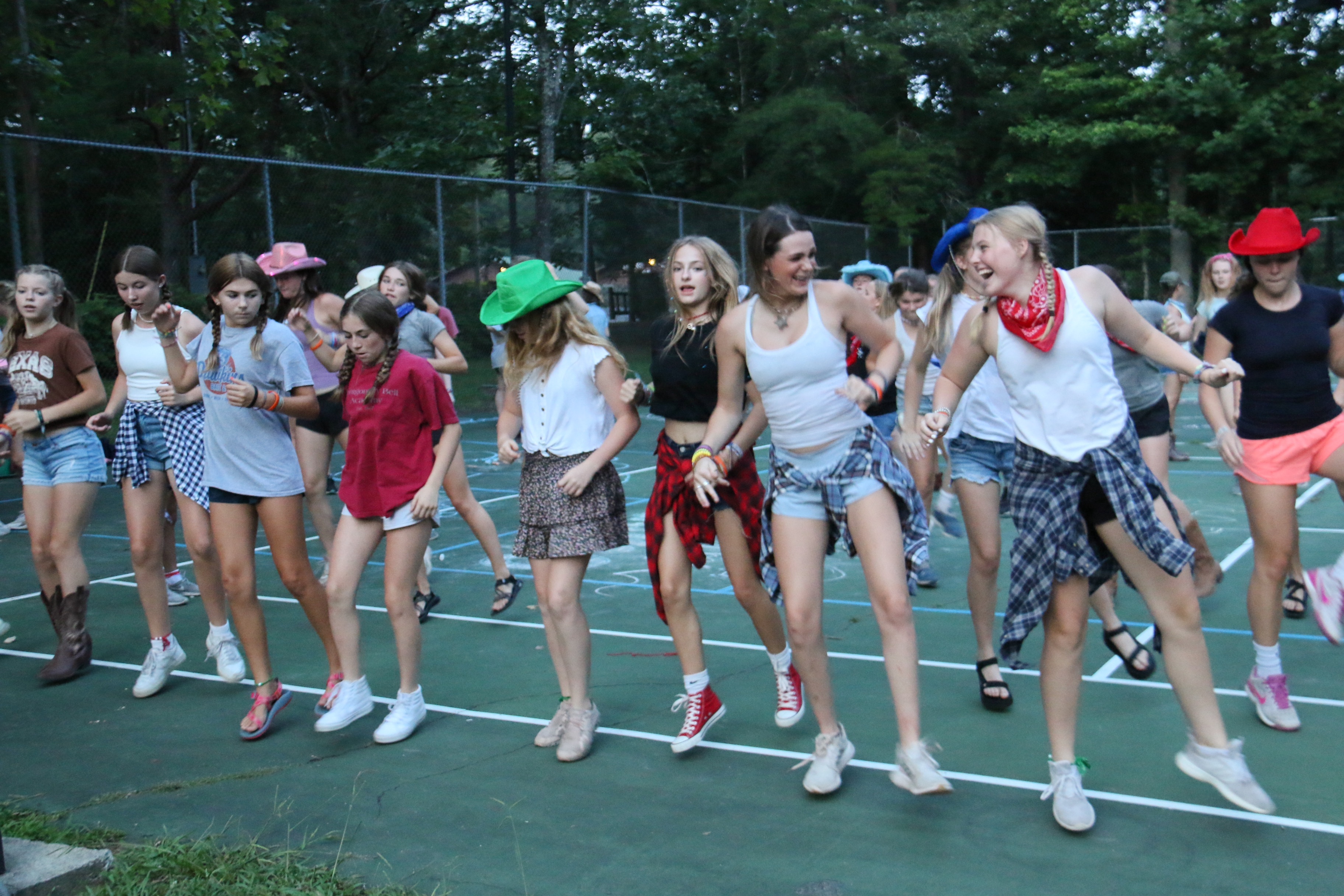 Speaking of comfort zone, the campers tonight seemed to be right in the middle of theirs as they all hit the dance floor (of the tennis courts) out under the stars. Our dance theme was Skyline Hoe Down and you can tell from all the cowgirl hats and boots you see, everyone came fully prepared and all decked out for the dance. Some of your campers really have some good dance moves as they danced the night away to the cotton eye joe, fishing in the dark, and many other songs that filled the night air. Some campers were not dancing the whole time and apparently saving their energy by leaving masterpieces of sidewalk chalk drawings and designs around the outskirts the dance area. Whether you were and artist or a dancer tonight, it was a fun time under the lights in the cool night air!