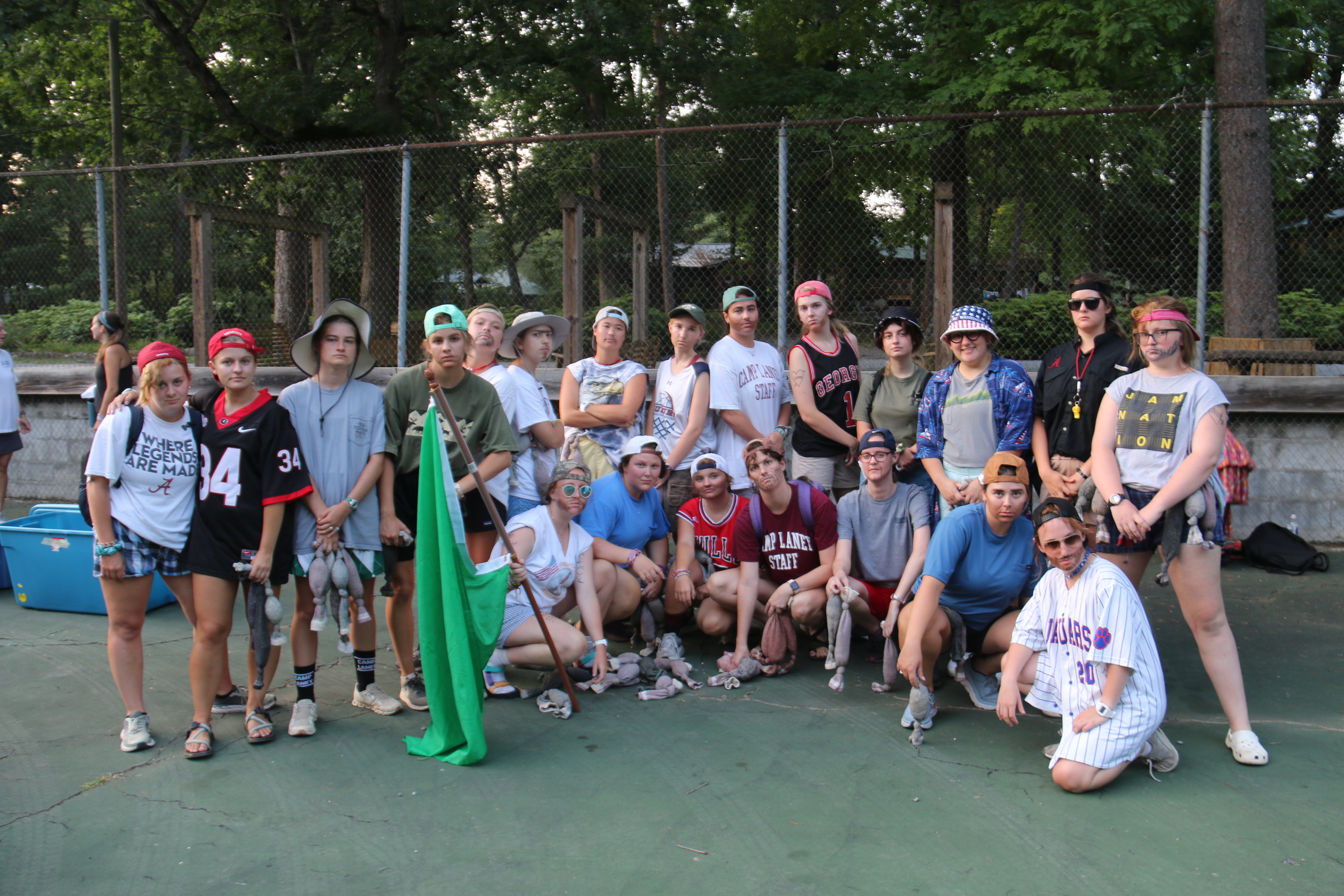 Tonight we were enjoying a quite dinner (ok… that part is defiantly NOT true….. its never quiet with all these girls eating at the same time) but then all of a sudden the stinky ol’ boys from Camp Laney (again, not true…. it was just our counselors dressed like them) came busting into the dining hall and took our club leaders and their club flags. Well, your and I both know, your campers aren’t gonna stand for something like that, and as soon as they finished their desserts they got in their clubs and headed out to rescue their leaders and club flags. All they had to do was cary an armload of stuffed socks (we get A LOT of use out of stuffed socks up here) and have 4 campers hit a counselor with a sock to get her out of the game. But of course, this time the counselors had some stuffed socks of their own and if they hit a camper with a stuffed sock then the camper had to report to the scorer before they could get back into the game. Of course you know your campers won and rescued all their leaders and their club flags.