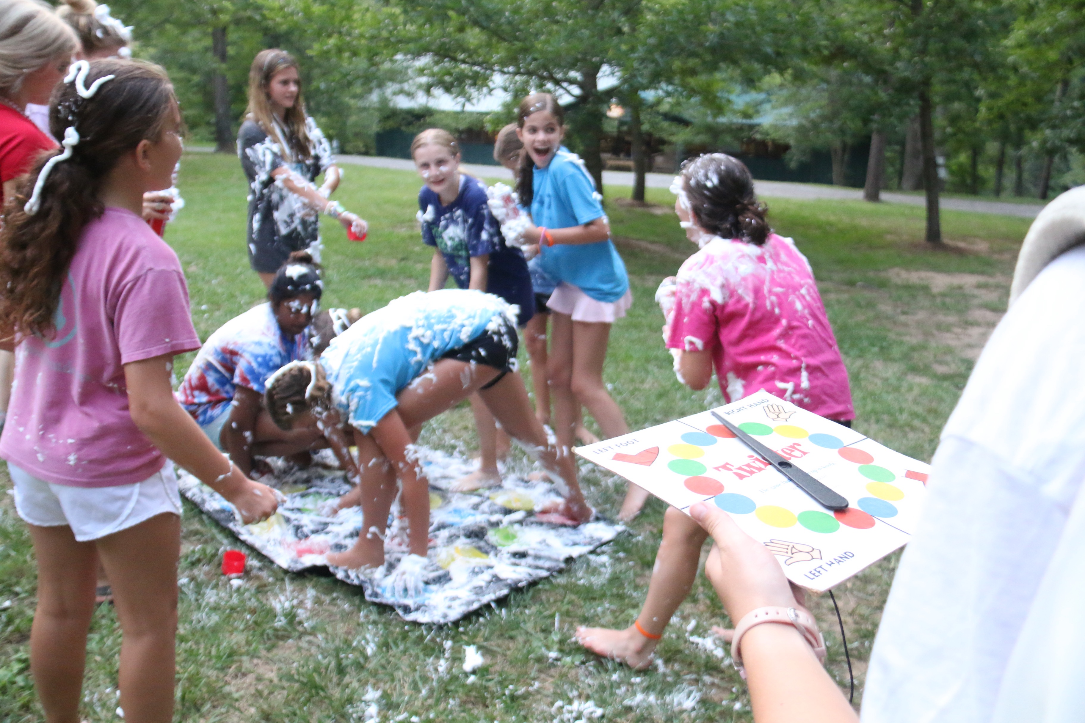 Tonight was a fun night as each cabin played “Cabin fun Night” where each cabin picks their own activity to do so they’re all together and still learning more and more about all their new cabin mates. We had all sorts of activities going on tonight from dodgeball, tie dyeing, face painting, shaving cream wars, spa night, messy twister, and more!