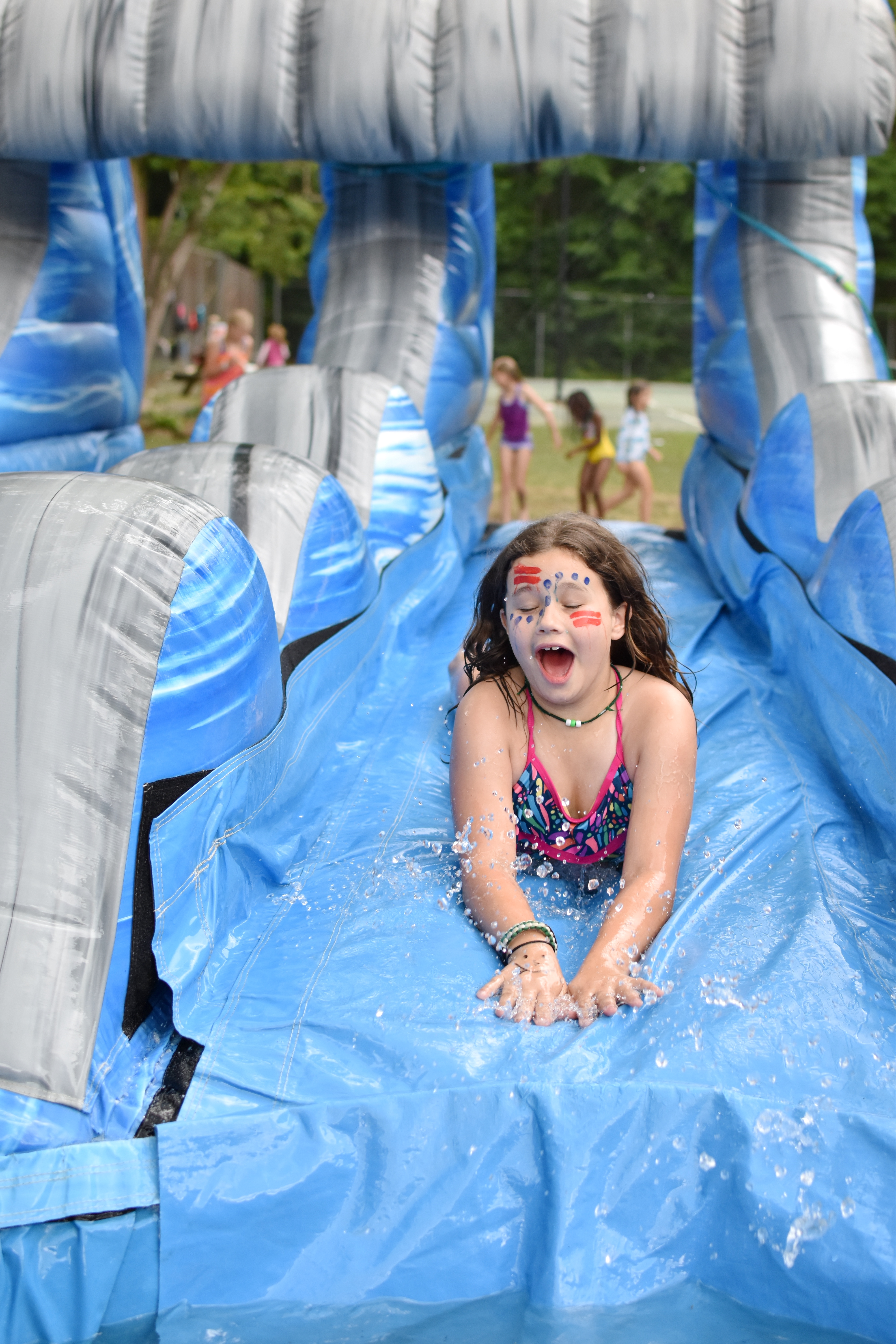 After lunch it was time for carnival. As you can see in the pics and video, everyone had a cool time of the giant inflatable water slides. As I walked around watching everyone play, you couldn’t help but hear the campers from Riverside across the river enjoying themselves at the pool. Needless to say, some splash fun was just what all the girls needed to have a good time and cool down from our lack of rain.