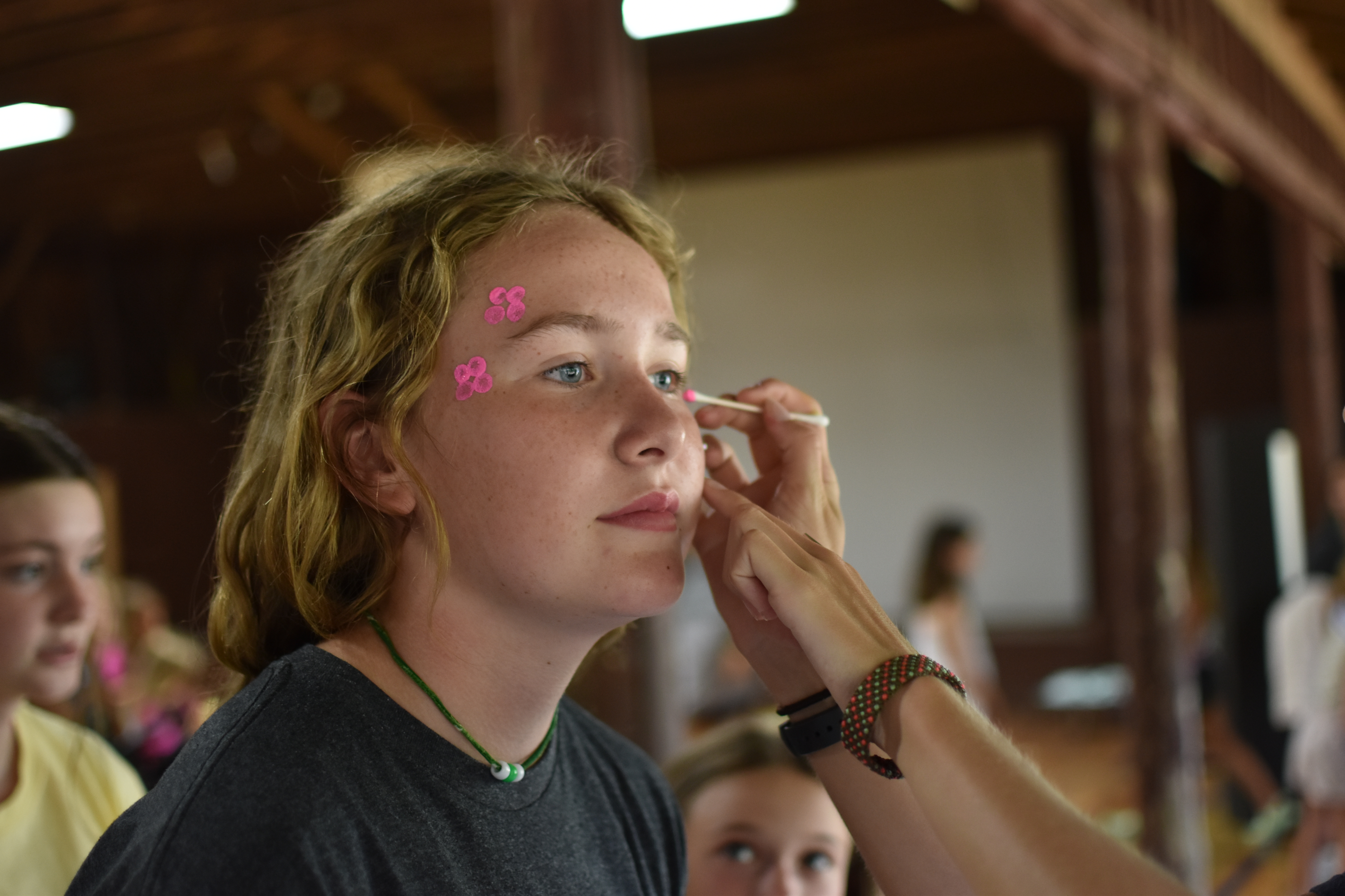 Everyone enjoyed the late morning wake up (I know I sure did!) and then the breakfast with homemade doughnuts. Our guest Sunday speaker Aja didn’t disappoint with her message and unique way to have all the girls remember the verses she taught on. I know there some pictures of them doing some crazy hand motions with claps, slaps, taps and more. I was doing pretty well hanging in there with them until it required a little rhythm and coordination and at that point, I was out of the equation but the campers did great! I did happen to catch several of them watching me try the motions and laughing as I struggled with it.