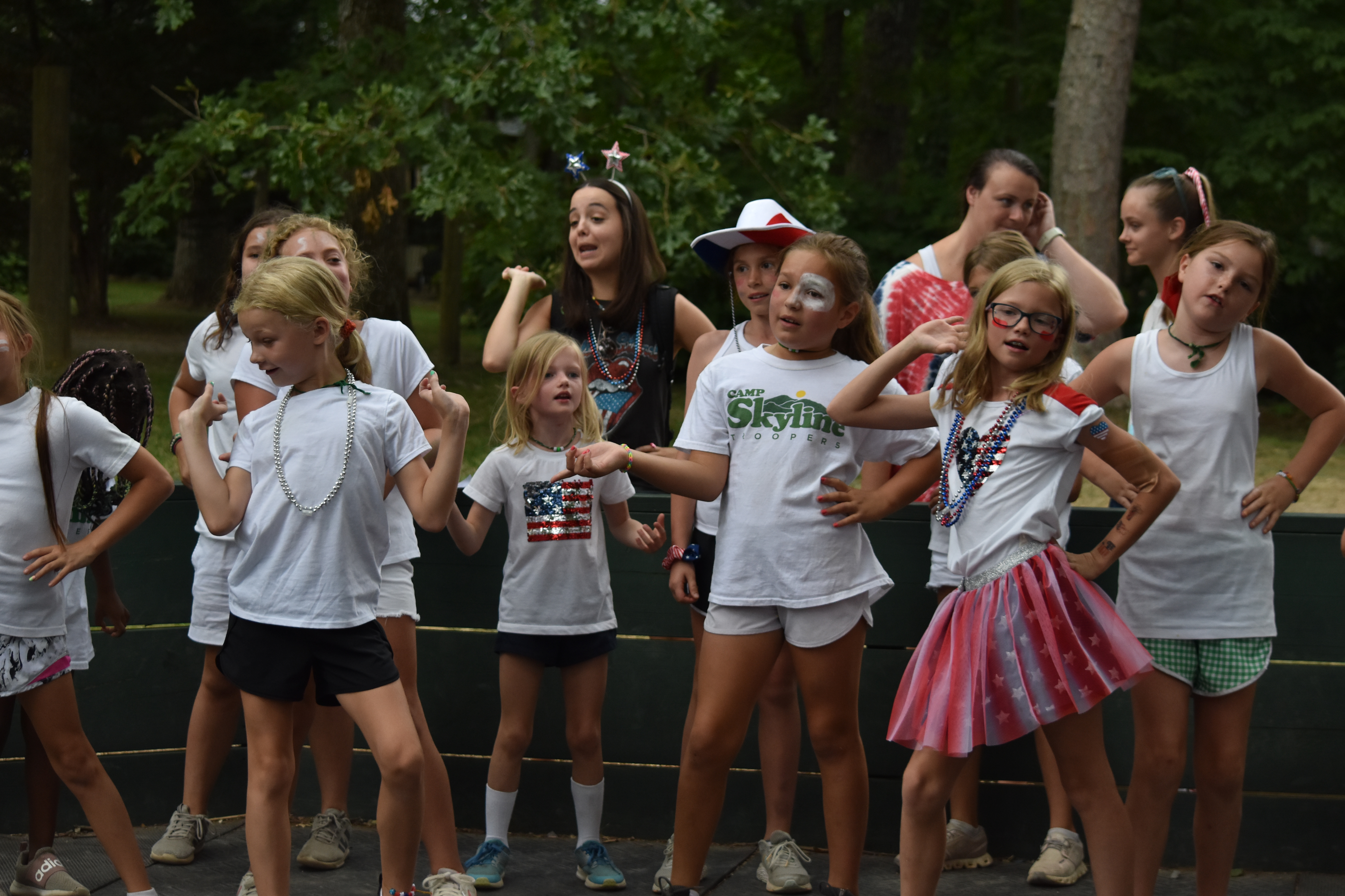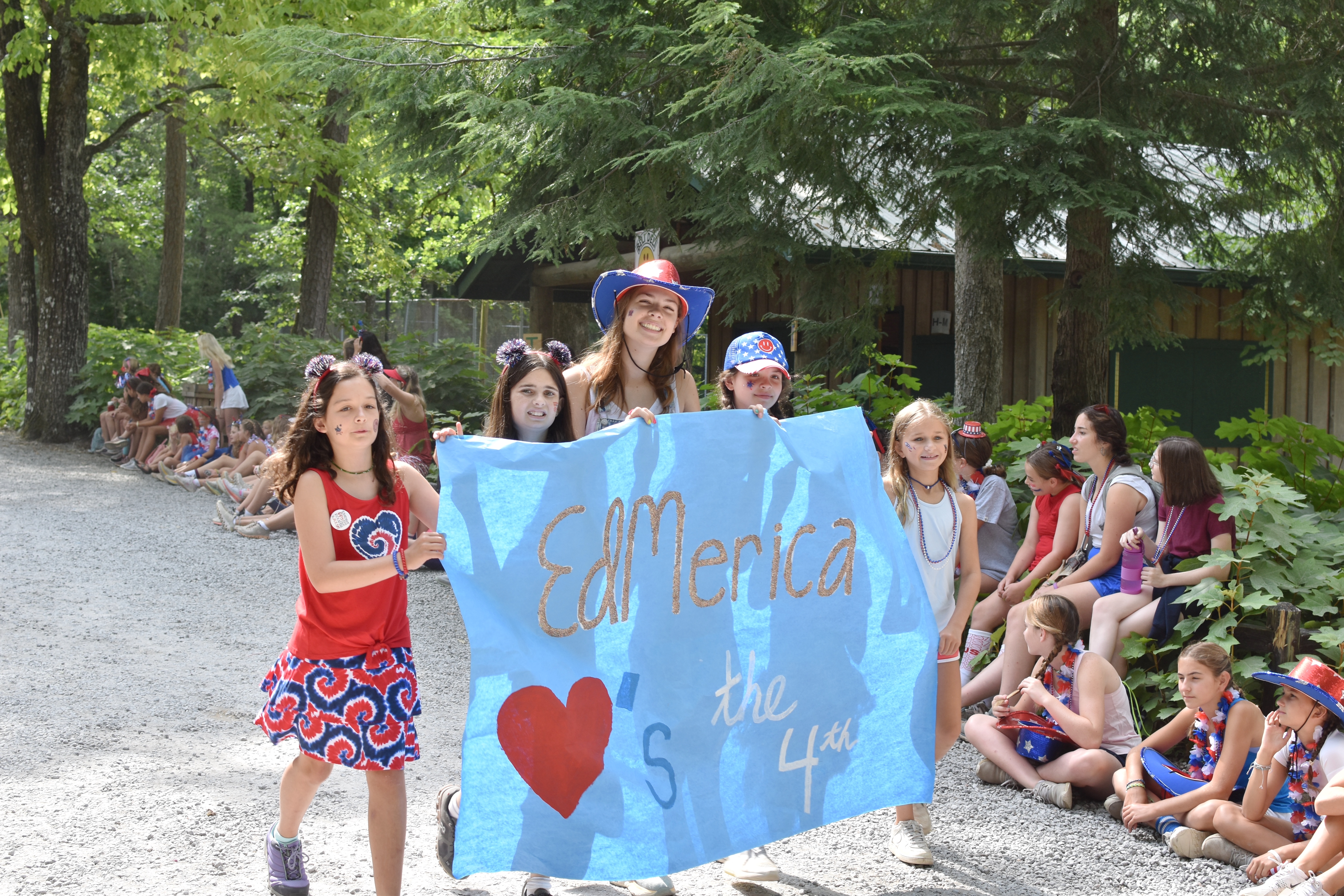 Happy 4th of July to ya parents!! I know its still June to you and me but today at camp we took advantage of a beautiful day and celebrated America! The day began with the raising of our American flag. Right after our cabin that was tasked with flag detail for the morning raised the flag, we were treated to a fantastic duet of the National Anthem by one of our counselors AND campers. It was a fabulous rendition and everyone appreciated it and gave them and standing “O” when they were finished! After that it was time for the 4th of July parade for all of camp to see.