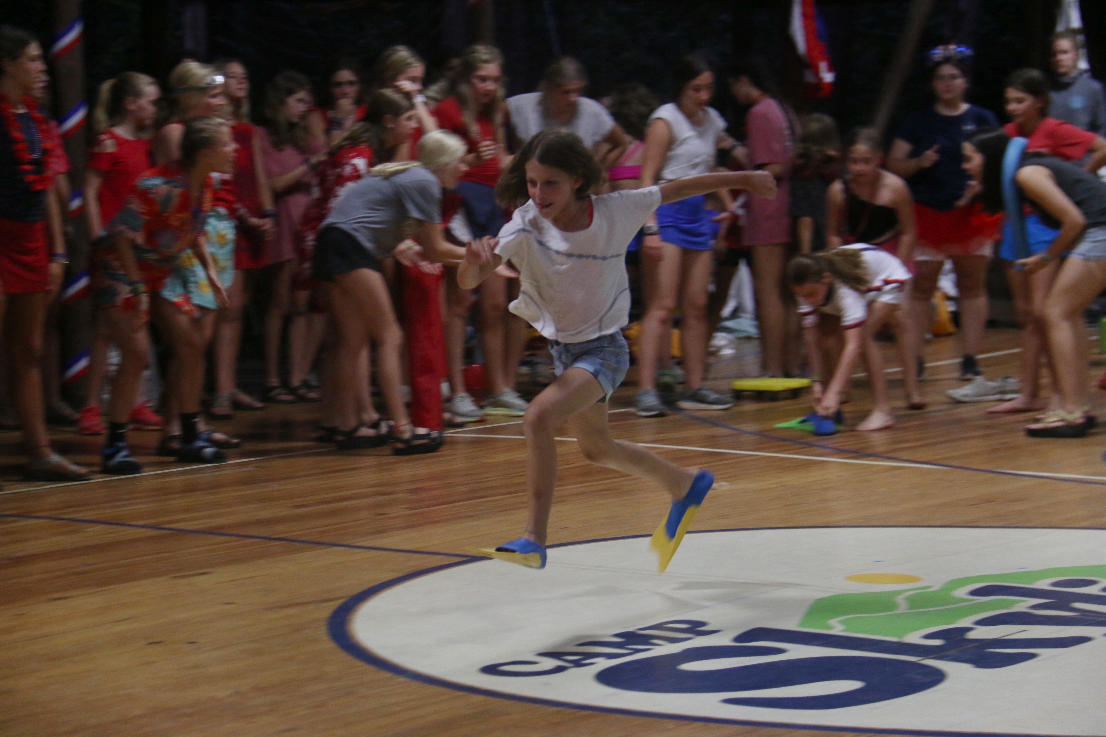 So with the rain, everyone swam in the gym. Honest. With the help of several rollers, each camper that competed got to display their best swim strokes up and down the floor.It couldn’t have worked out any better and we may be on to something doing it this way. There was more laughing than you could count as they “swam” across the gym floor doing the best they could. You really need to look at all the crazy pics from swim meet and you’ll see for yourself what I’m talking about. Sometimes a picture is worth a thousand words and you can form those words yourself as you scroll through all the wild picks.