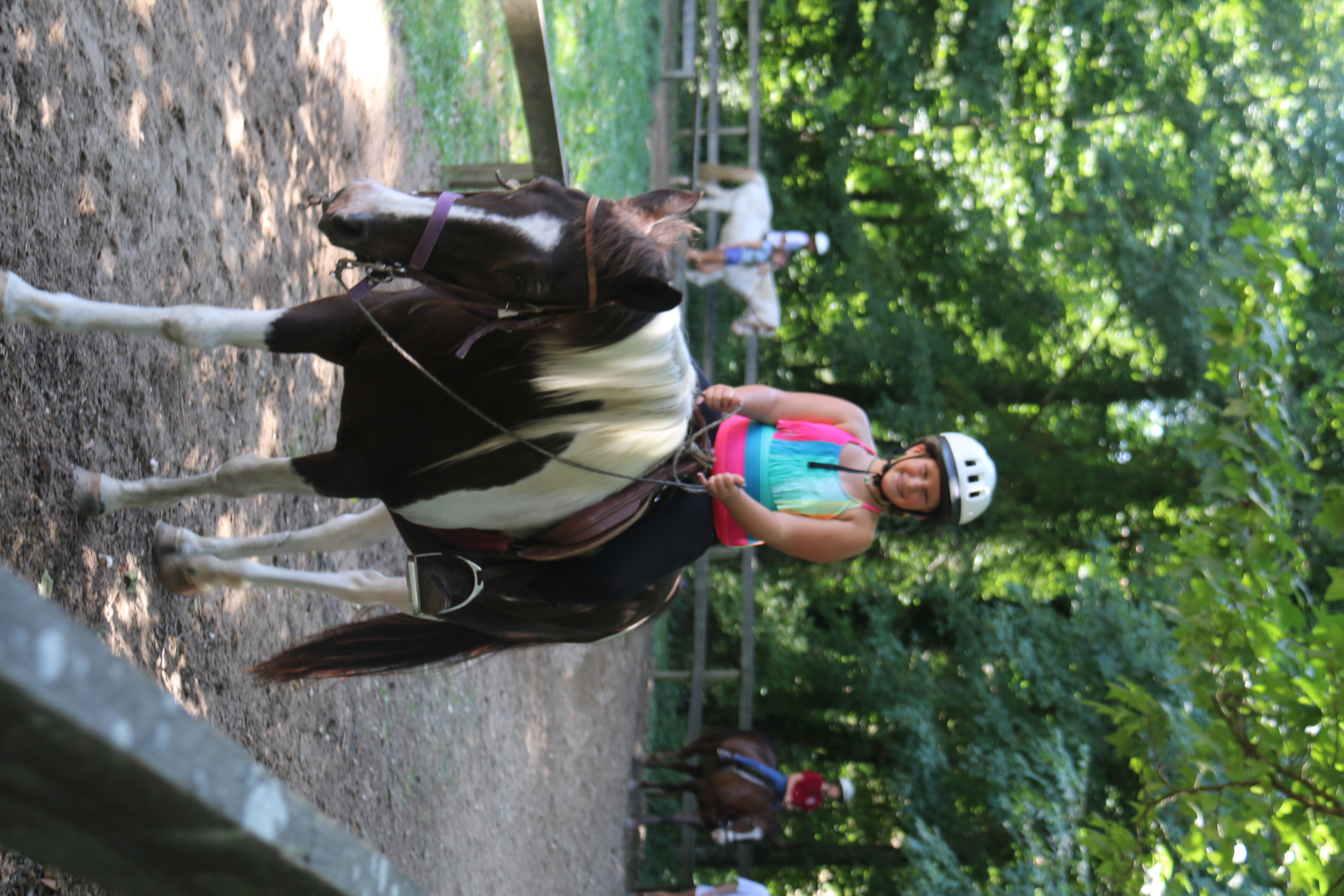 10:00- Morning office work finished, back out to camp for Beli Deli time and to pick up a game or two of corn hole against some campers that wanna challenge. Beli Deli is the snack time, but its also a kick back and hang out time for all the girls. The campers enjoy getting to hang out with their cabin counselors or each other and just talk or play with Bitsy and Piper, our two resident camp dogs who’s primary job seems to greet each camper with a “ya wanna pet me?” look. It must work, I always see campers playing with and petting them. As I make my way through camp I end up by the horse barn. Its always amazing to me to watch the smallest campers get right up on the horses that tower over them and just ride around the ring and control the horse like its no big deal. They’re always smiling as their boots barley reach the shortened stirrups but they have a good hold on the reins and they make their way around and around.