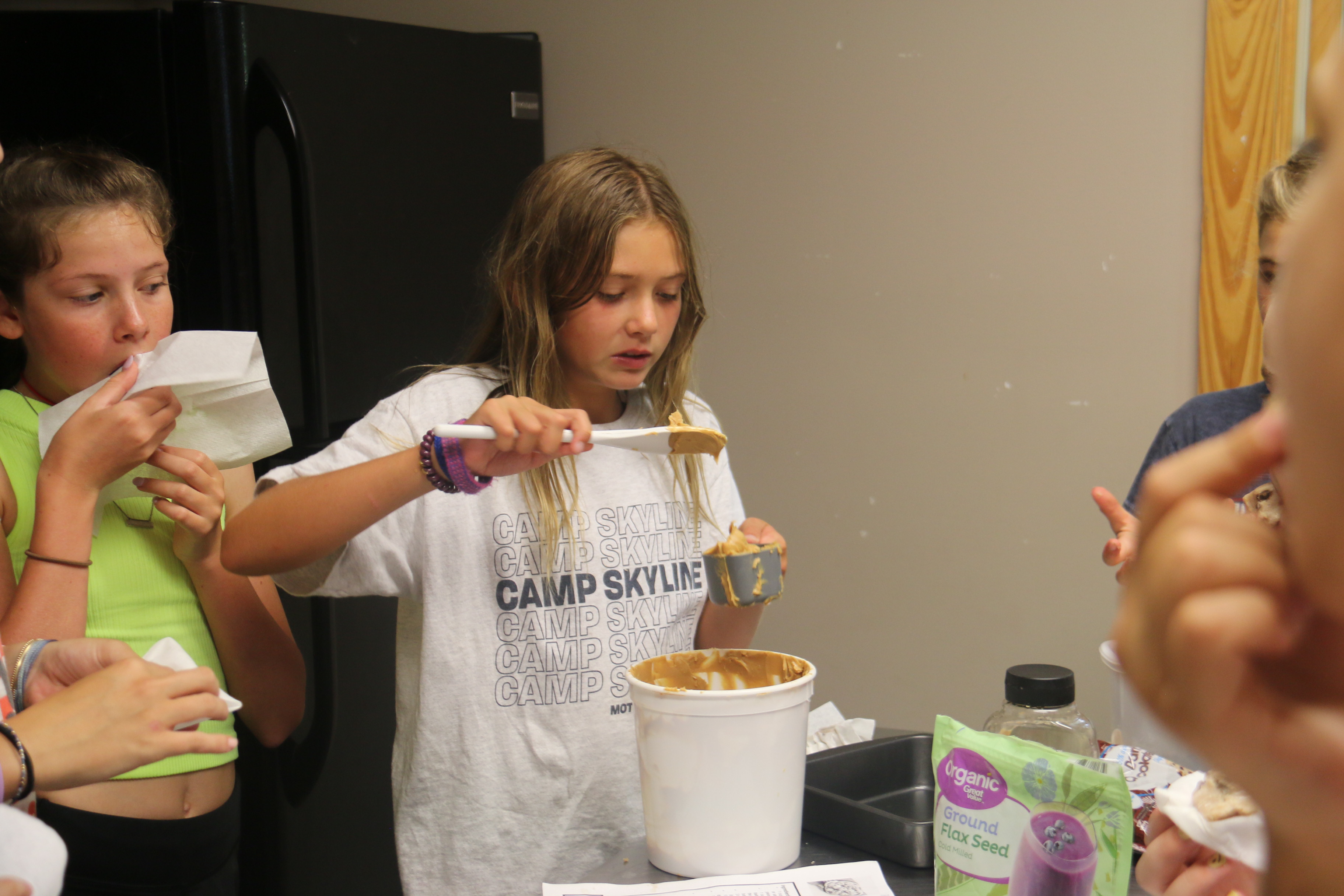 12:20- OK, back sooner than expected, cooking is making a protein power ball today. Saw lots of peanut butter, oats, chocolate chips and as one camper warned me….”lots of fiber, you’ll be heading to the bathroom soon”. They looked delicious but they were still in process so I didn’t get to taste them. What I did get to try was yesterdays cooking project that required a 24 hour chill process. Cookie Dough fudge!! Yes it was a delicious and rich as it sounds. If you camper is taking camps cooking class be sure to have the demonstrate some of their favorite recipes for ya when they get home. You’ll be surprised and full!!!! (Just be ready for a bathroom if ya try the protein power ball).