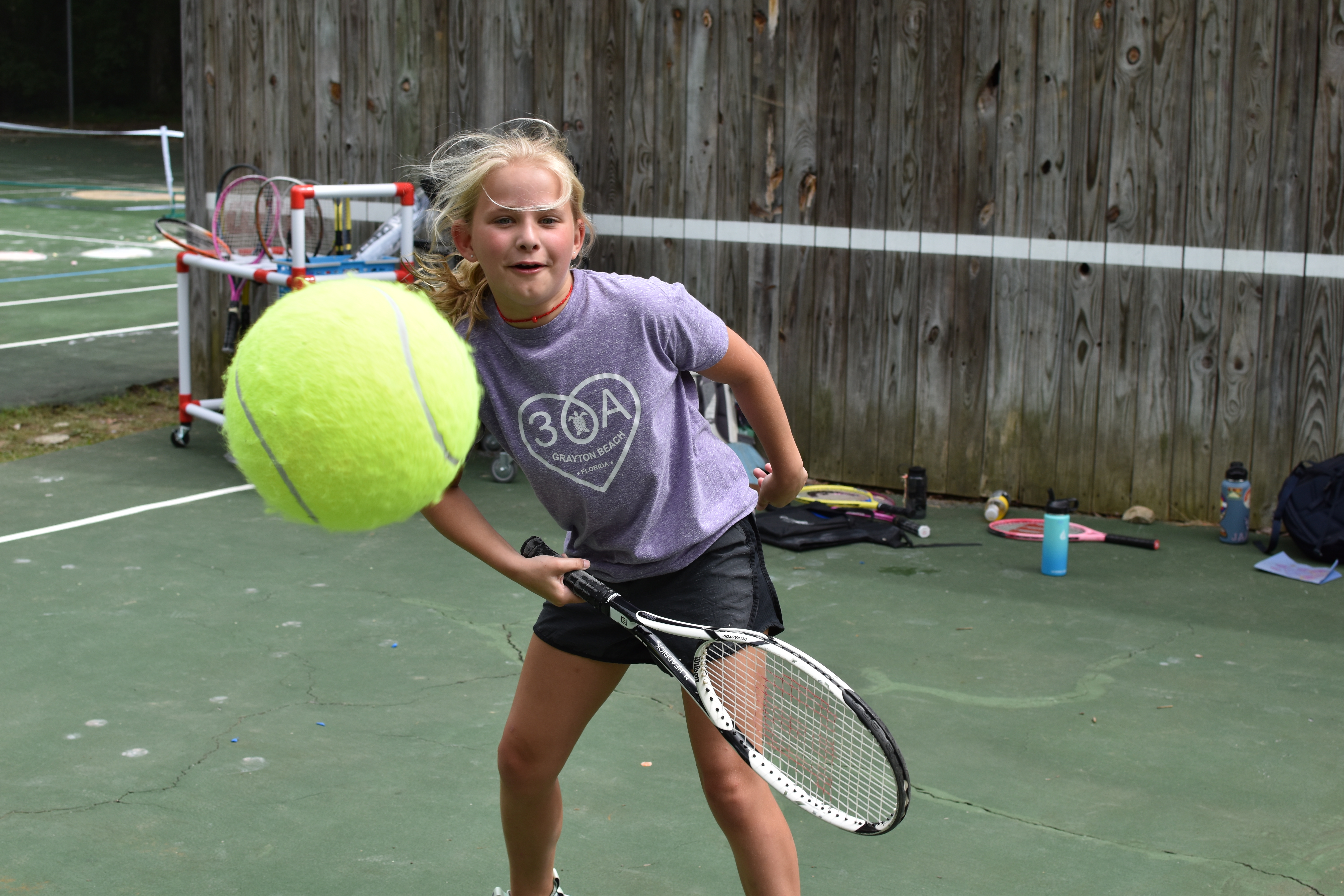 Our nighttime activity tonight (yes…I forgot to tell you about it last night…sorry ‘bout that!) was Dance Night!. You couldn’t have picked a better night for everyone to enjoy a night out on the tennis courts, under the stars dancing and singing together. We were treated to a special dance featuring just the mini campers as they all got out in front of the rest of the camp and showed off their dance they have been working on all week in class. Needless to say the rest of camp gave them a standing “O” when they finished and they earned every bit of it. If you’re a parent of a mini camper be sure to have them show you their dance routine when you get them home! zOf course after they were finished, it didn’t take long for several Conga lines to form and of course there was plenty of line dancing to some camp favorites. The girls really enjoyed themselves dancing and “singing?” to every song they played. I was a little surprised how EVERYONE (and I mean EVERYONE) joined in and sung a 200 plus member version of Someone named Taylor Swift (I’m just kidding, I know who she is…..not by choice though….just saying….If they had played something from George Strait I would ave been rich there with them joining in!)