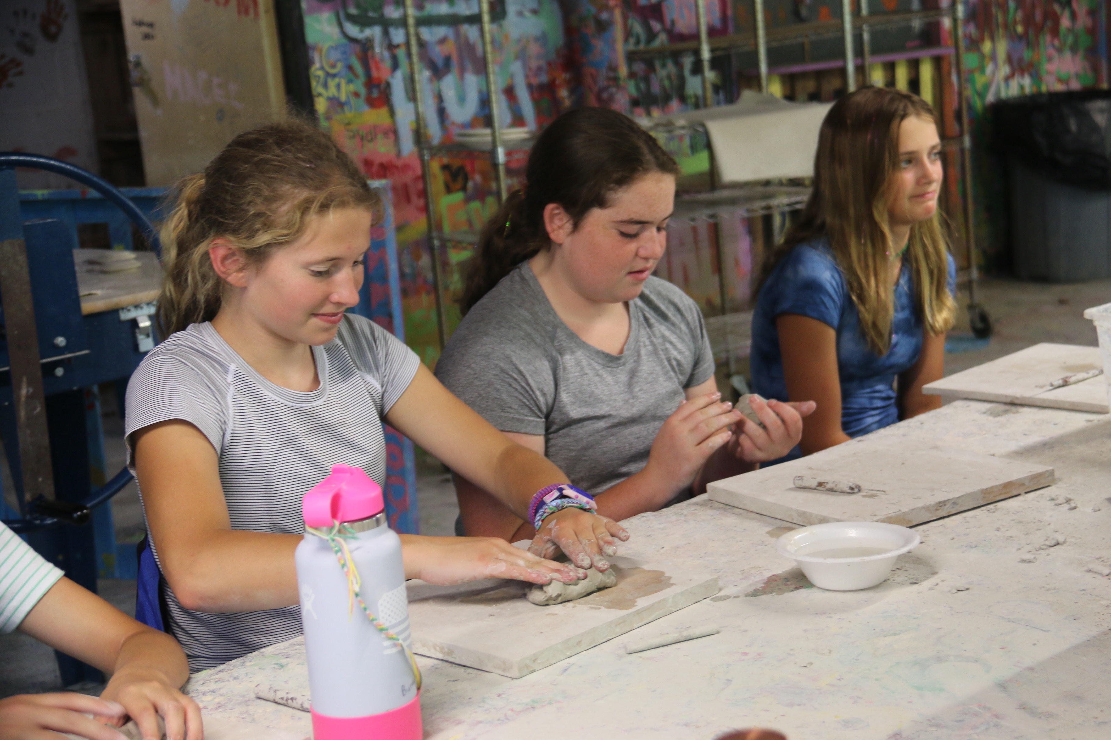 Of course while I was there I was right next to the cooking class and didn’t have the opportunity to sneak in there and taste todays cookings. Maybe tomorrow I’ll get to stop by and see whats cooking. Meanwhile out in the rest of camp, the girls at circus were flying high working on tricks on the Mexican Cloud swing and flying trapeze. Once it got a little warm to hang out watching them, it was time to drift by the Arts and crafts center (its in the shade and by the river!) and look at some fo the projects they are working on down there. Its hard to believe they’ve only been at camp and in class for 3 days with as much progress as they’ve made already.