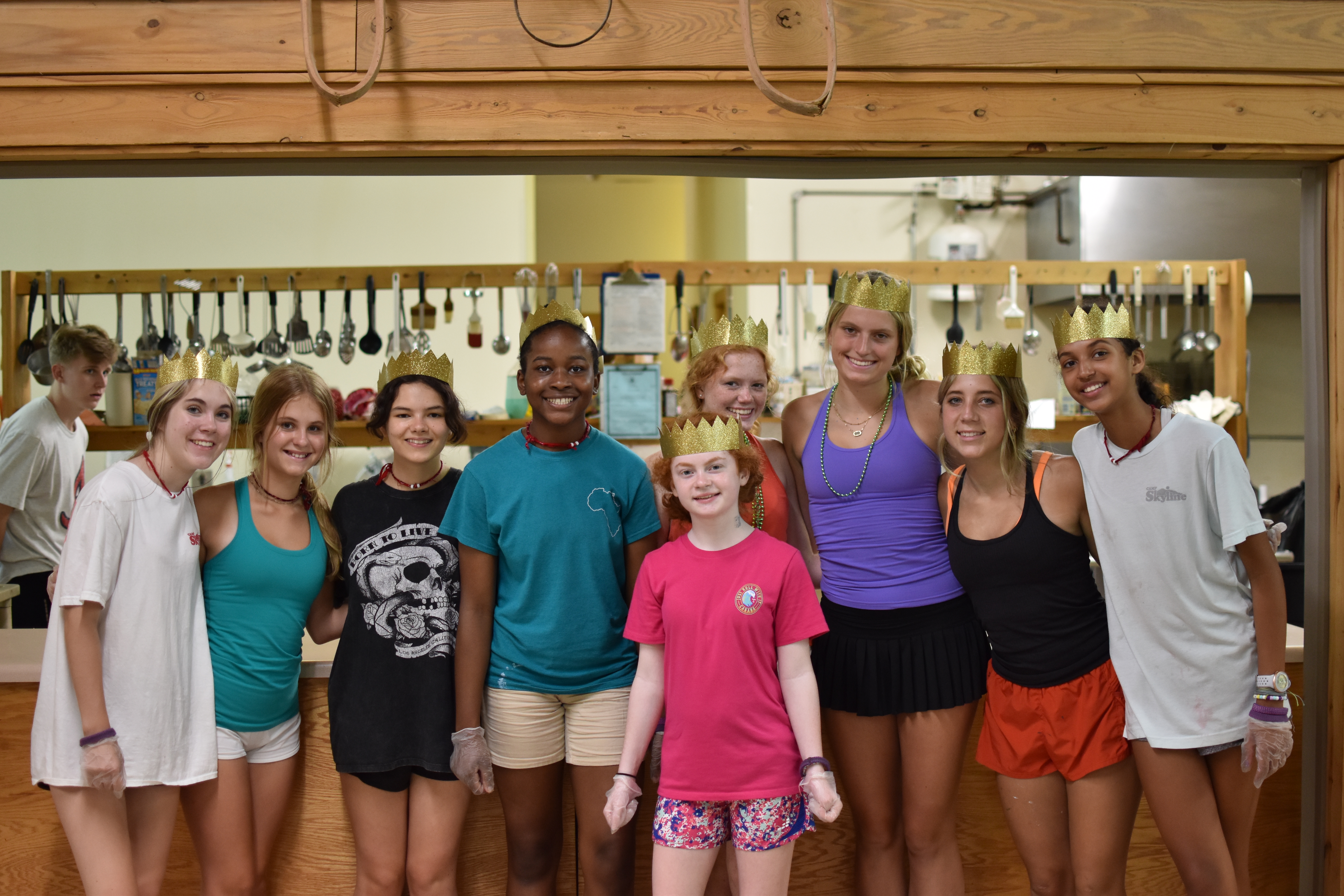 Back at camp the ACITs that help in the kitchen by setting out food for all of camp and bringing us seconds, thirds and occasionally fourths of our favorite foods, all wore crowns. One of our admin, Caroline, wanted to uplift these hard working girls by giving them something to exemplify how they are doing God’s work of service. Wearing a crown helps them to know that they are appreciated by all and how God sees them doing His good work. Check out the picture of this awesome group of girls.
