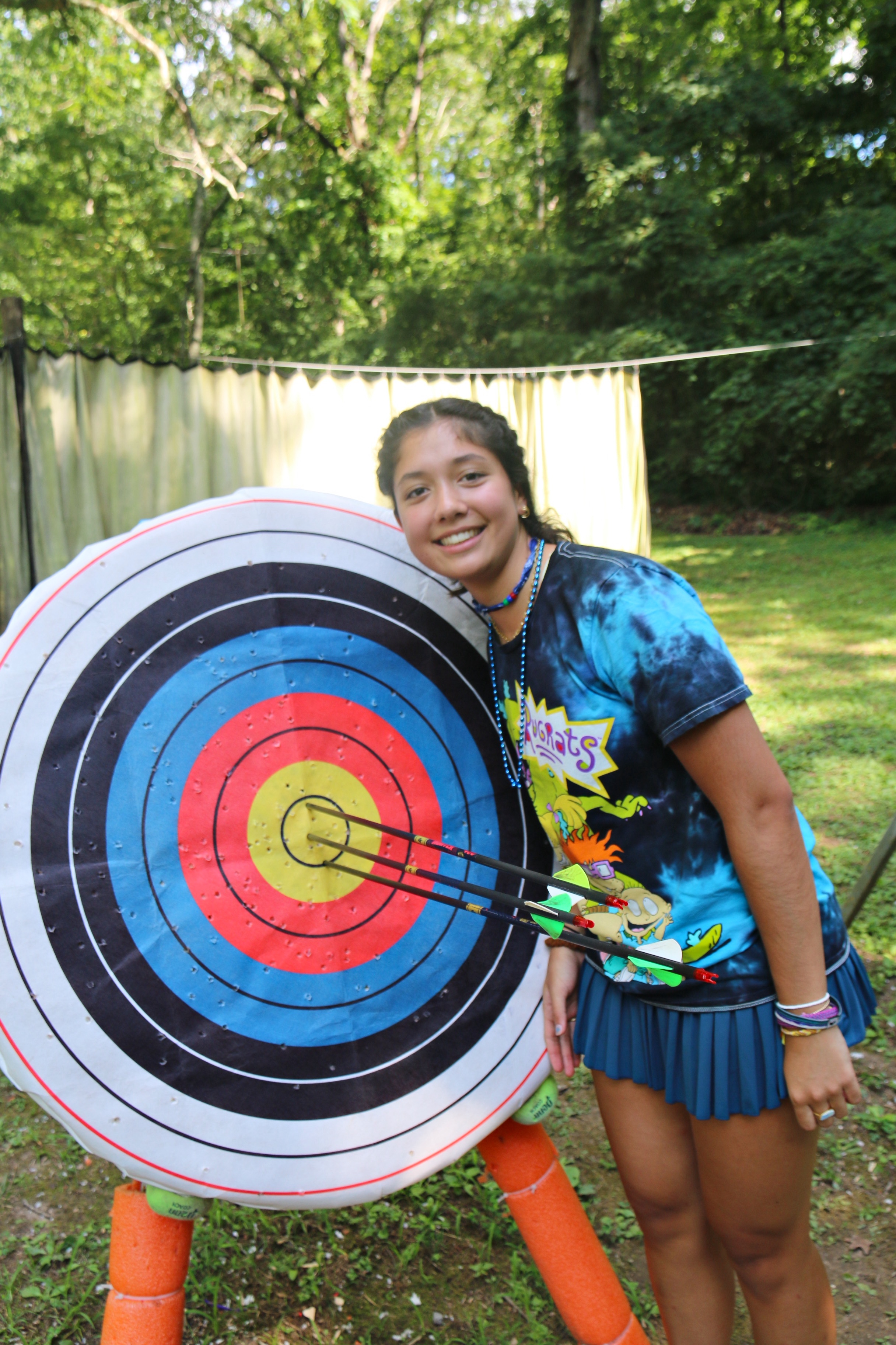Happy terrific Thursday to ya parents! (I did that one without the use of my watch!…its the little accomplishments). Its getting towards the end of the week and also towards the end of the session and that can mean only one thing. Everyone is working hard competing for club points and/or getting ready to perform in front of the whole camp in some form or fashion. Lets start off with news from todays archery tournament. The final contestants in the tournament had been settled over the previous few days so today during our first Beli Deli, it was time for the winner take all. The area around the archery range was crowded with campers from all three clubs as they packed in to cheer on the campers that were representing their club. It took several close and intense rounds of shooting to get it down to the final 4. I gotta tell ya, I’ve never seen so many arrows end up in the yellow bullseye as I did this morning. The focus and intensity on their faces showed as each girls took her time to carefully aim and then release an arrow on its way to the center of its destination. If you look through the pictures from today you can see for yourself there are several that are great, but there is one that is REALLY Supercalifragilisticexpialidocious. She has 3 arrows in an 2 inch circle. Talk about great grouping! Go ahead and look for yourself, there are some great archers up here this session, you’ll be surprised at how good they’ve gotten over the last 2 weeks. I was so caught up in seeing that picture I almost forgot to tell ya who won….. Congratulations to the Rangers for claiming the Robin Hood status of unbeatable in archrery this session! (that means they won!)
