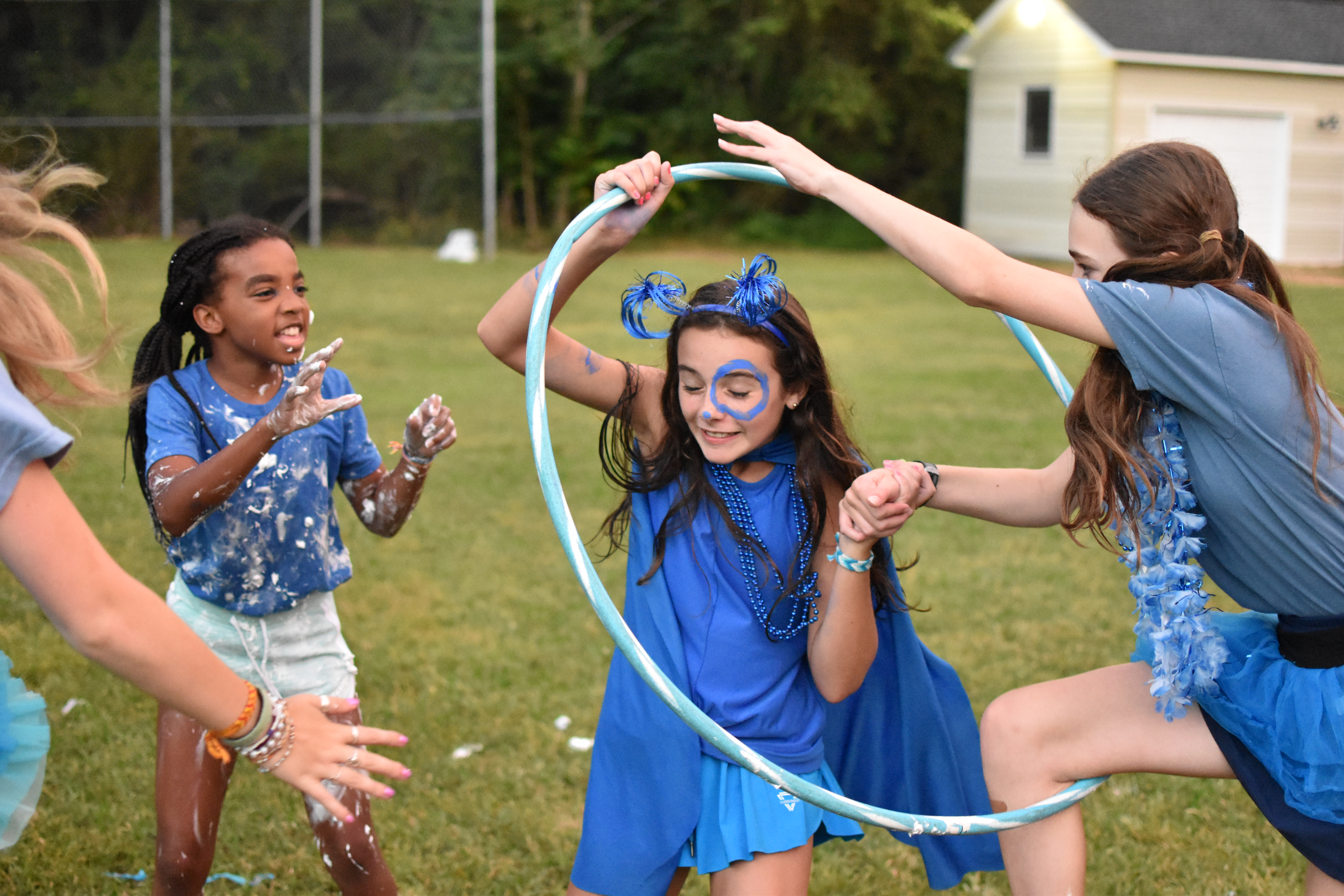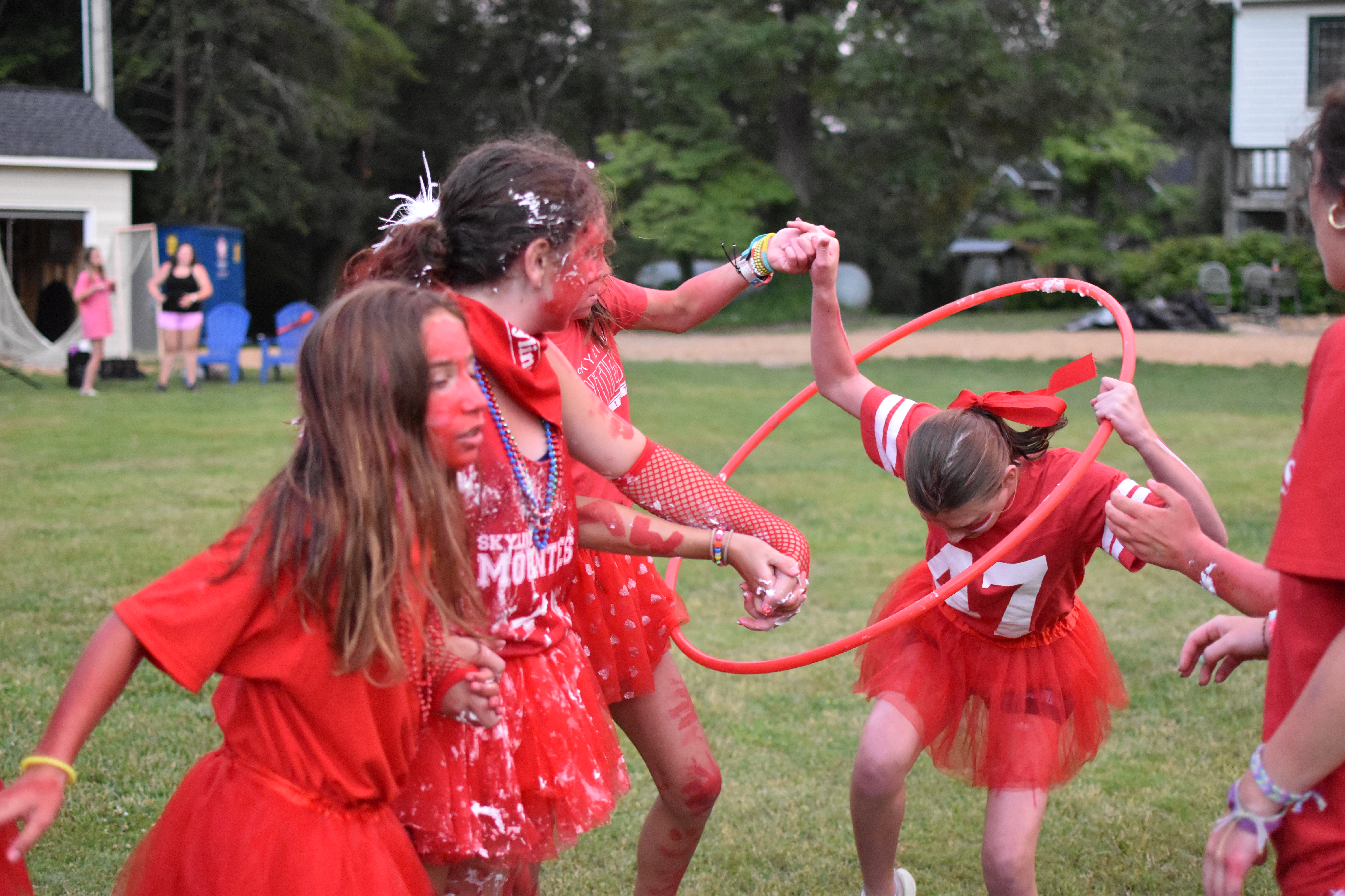 Tonight was our camper favorite “Speed Challenge”. This is a series of 10-12 wild and wacky relay races per age group that are run back to back to back to back…you get the point. Each age group will rune their set of races as fast as they can. This might include the find your shot relay, cover your partner with shaving cream relay, wet sponger over the head between the legs relay, the piggy back relay and more. As soon as all 3 clubs are finished for a particular age group, we rest everything and then take the next age group of girls and do it again. and again, and again….. All in all it ends up being 60-70 relay races and we also have a cheer off contest in there just in case any of them might still have a voice after they’ve been cheering on their fellow club mates in each of their races all night long. I gotta tell ya, it was a loud and fierce competition but when it was all said and done, the final results were….. Troopers 3rd, Rangers 2nd and the Mighty Mounties reclaimed their spot as Champions!