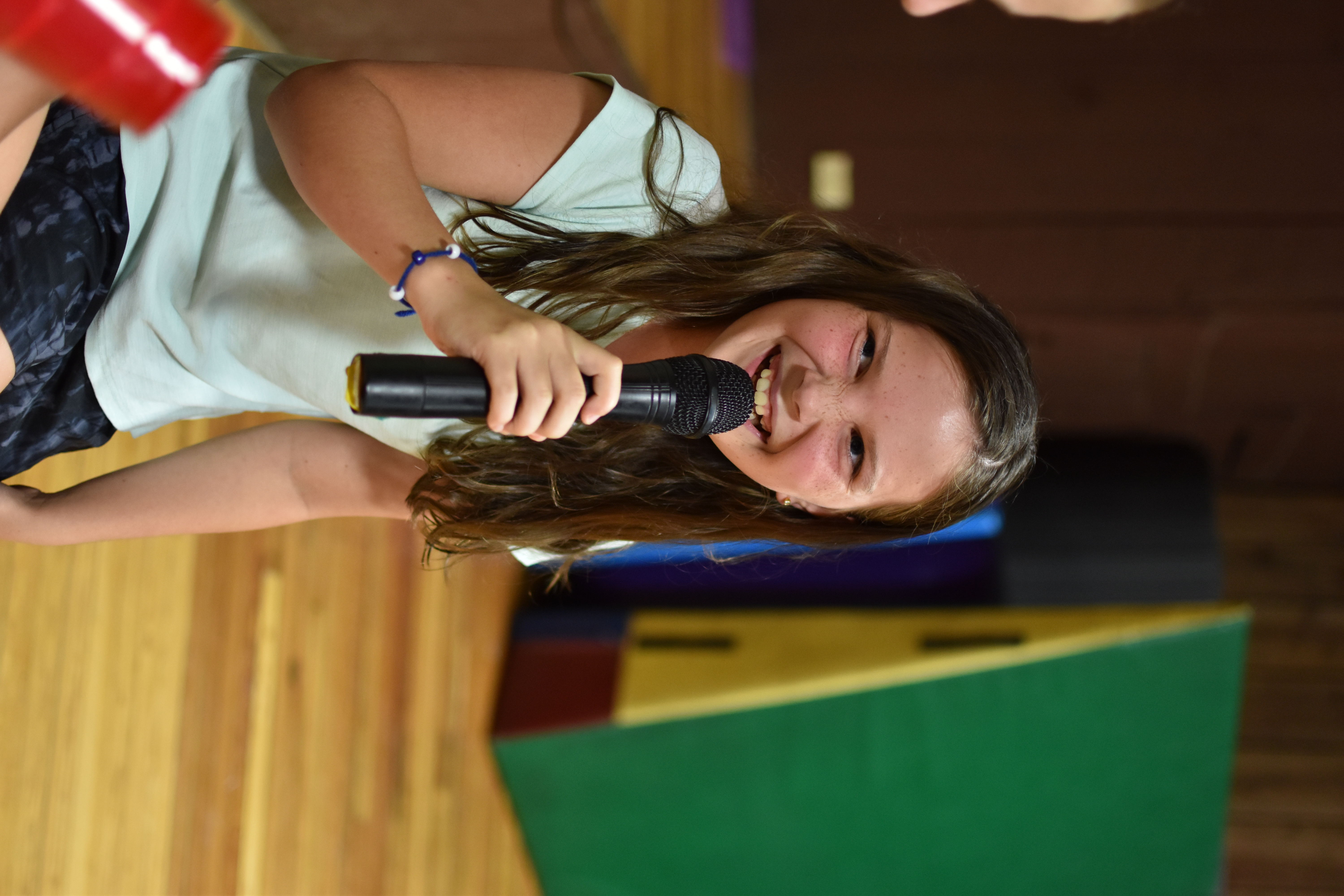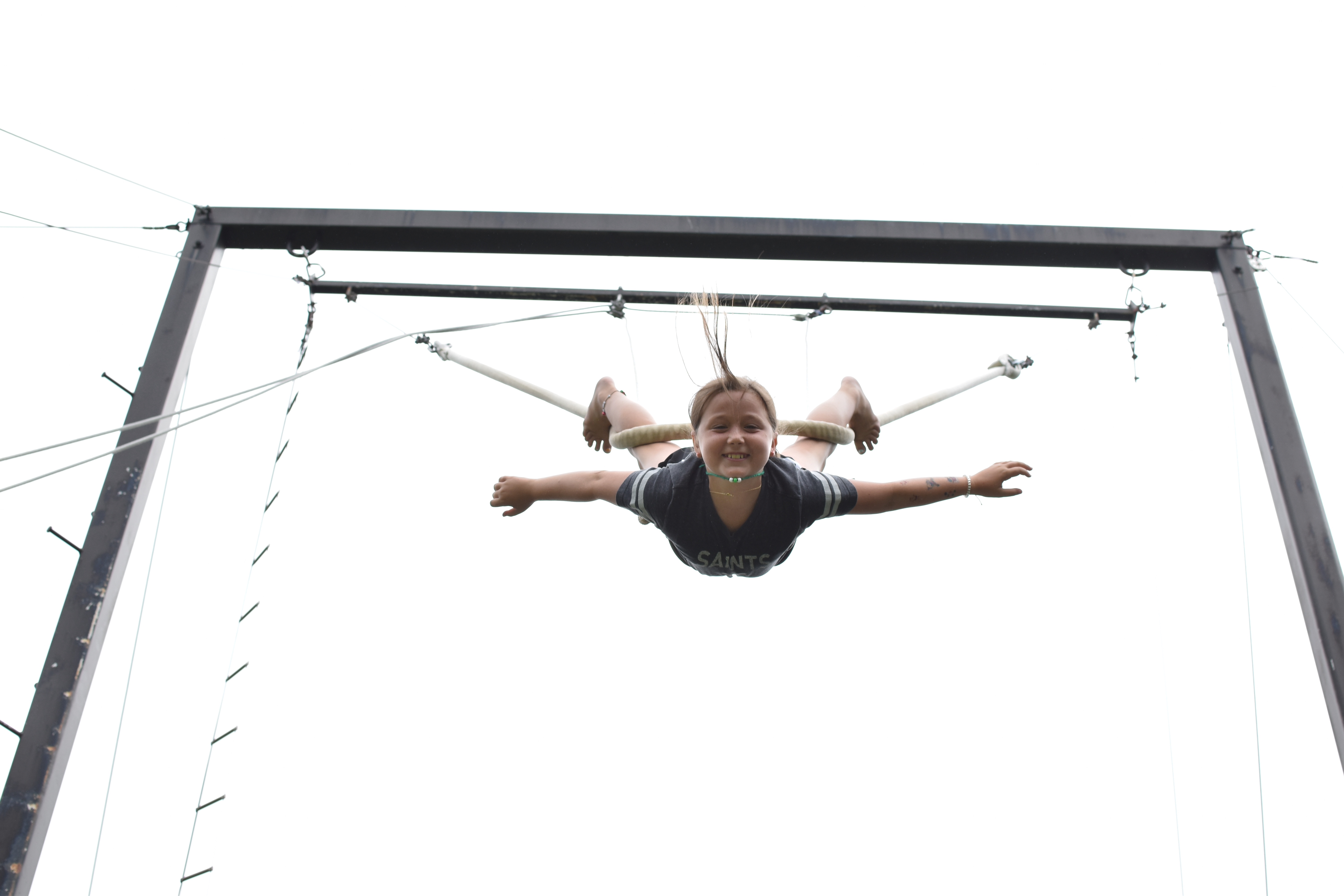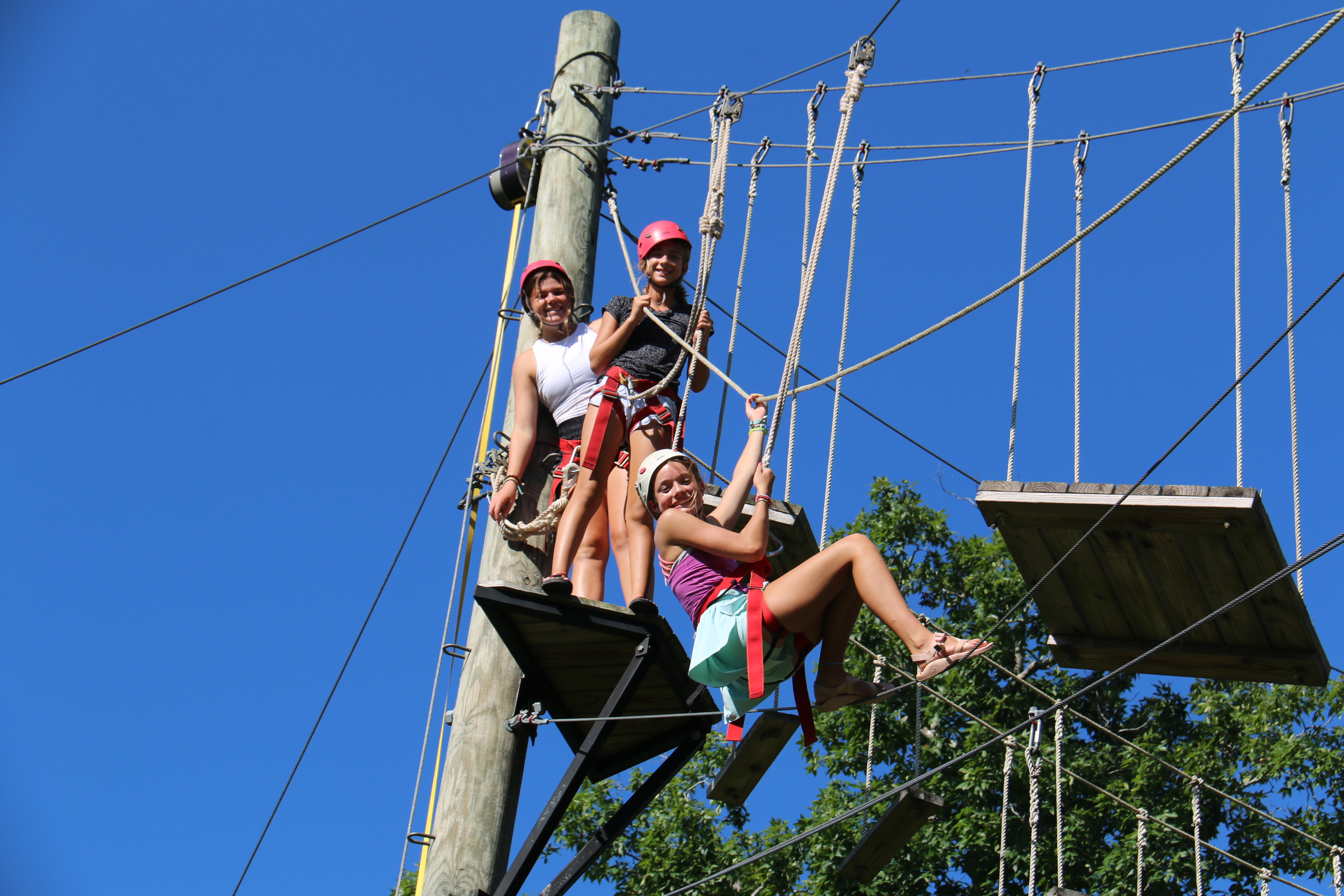 I also got to see several classes of Ropes today. These girls are so brave as the climb a tall, wobbly pole to try and jump off and catch a bar. (Don’t worry though they are all harnessed in and wearing a helmet.) They call it the Pamper Pole. One camper tried 6 times and each time she has missed and she still wants to keep trying. That’s perseverance! I told her to find me when she is successful because my motto is, “Two feet on the ground!”. They amaze me!