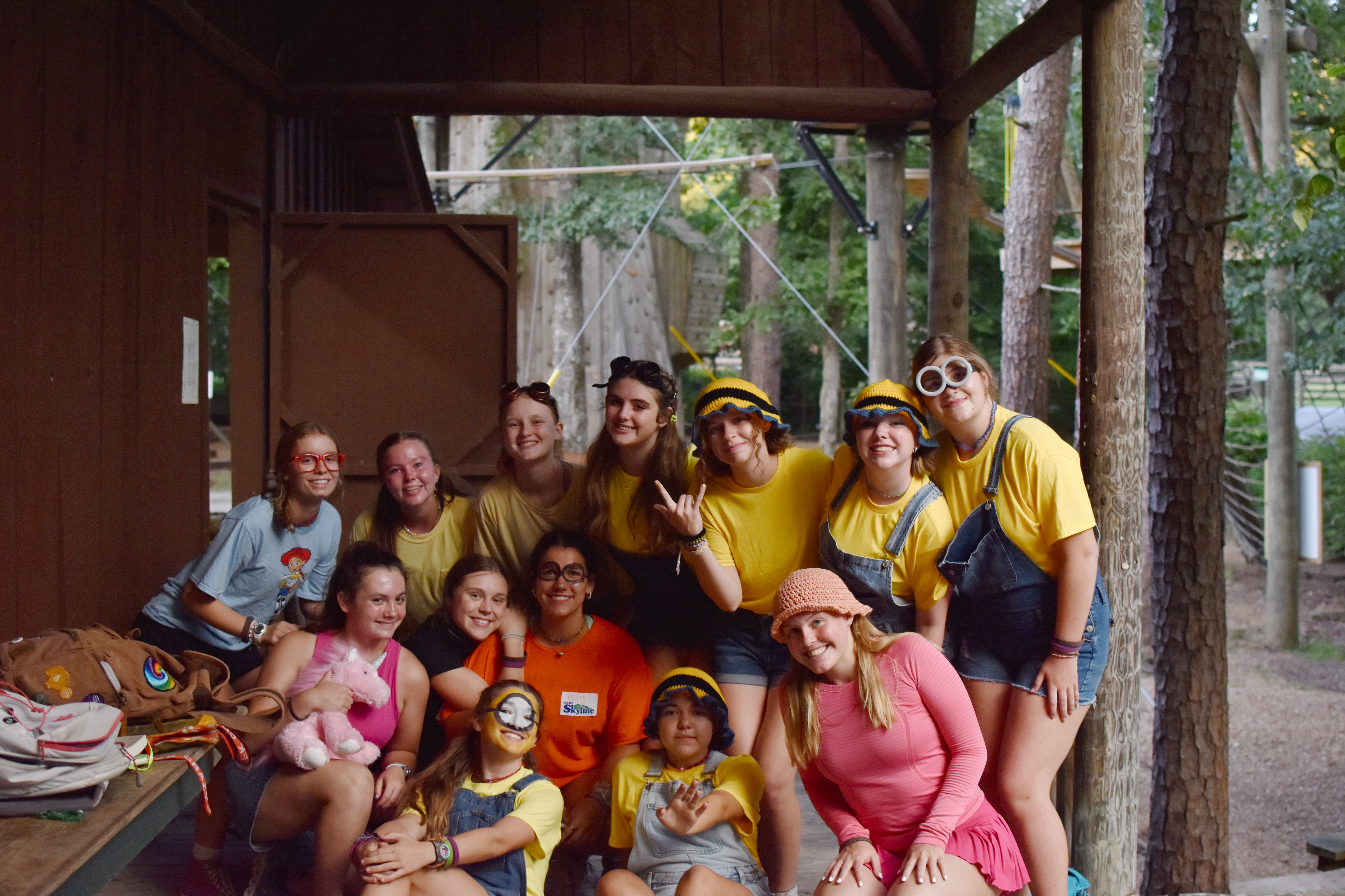 Once I got back to camp today it was time to get ready for one of my favorite nights of each session. Age out dinner. This is the next to last night of the session when Sally has all the age out campers who are in their last year of being a camper over to the house for a special home cooked meal. These Age out campers are in a special class at camp called LT (Leadership Training) where they learn how to work together, help out in a class during camp, they also are assigned a younger camper cabin they get to her take care of during several activities throughout the session. Basically their taught how and then put into leadership roles where they can use and hone their new skills. We get to know these campers really well since we spend a little extra time with them teaching them. I can tell you for a fact they enjoyed the dinner and especially the two flavors of Sallys famous homemade ice cream. Later in the night, the age out’s worked as emcees for tonights Showtime and they were all dressed as the cast of Despicable Me (in case you couldn’t tell from their pics).