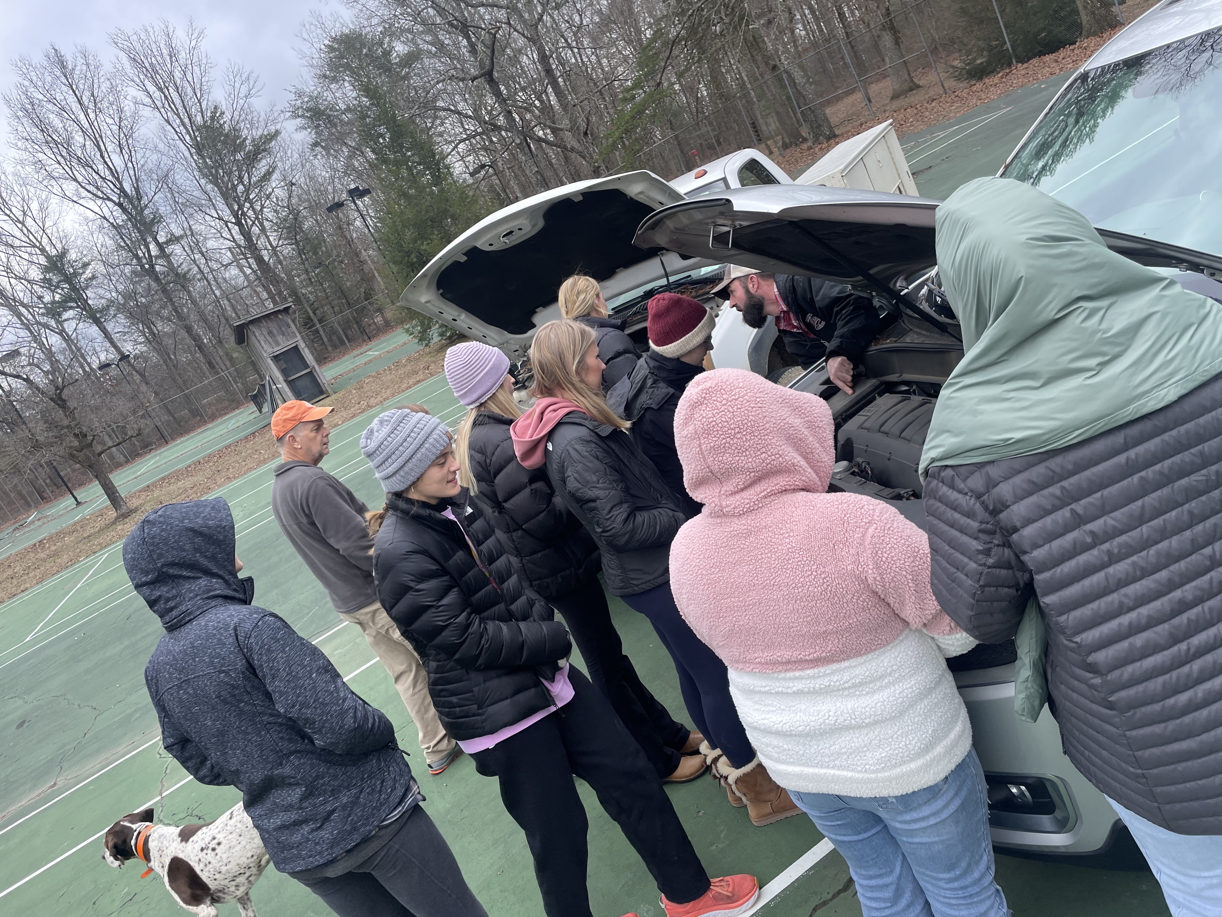 We then had a fun time where Adam taught them how to check tire pressure and also jump off a car. Nick taught a self defense class where they learned some moves to get away from someone who might be in danger to them.