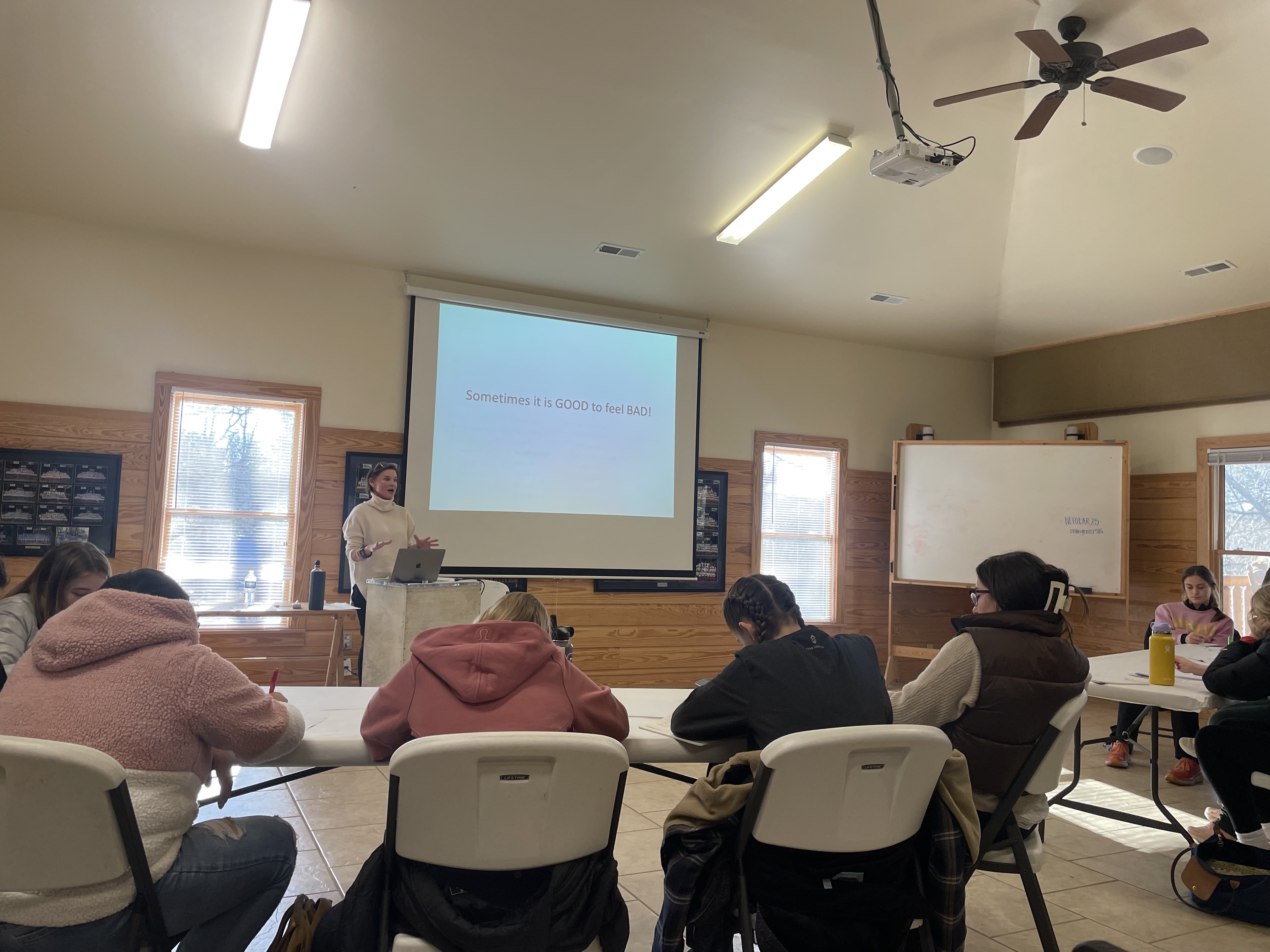 After warming up with some delicious soup for lunch we enjoyed a much needed rest hour followed by a time where Sally’s friend came and talked to everyone about untangling emotions. We then had some time to do ropes and enjoyed making pasta with Allene. Wrapping up our speaker sessions with Taylor York talking to everyone about anxiety and how to deal with that in the moment.