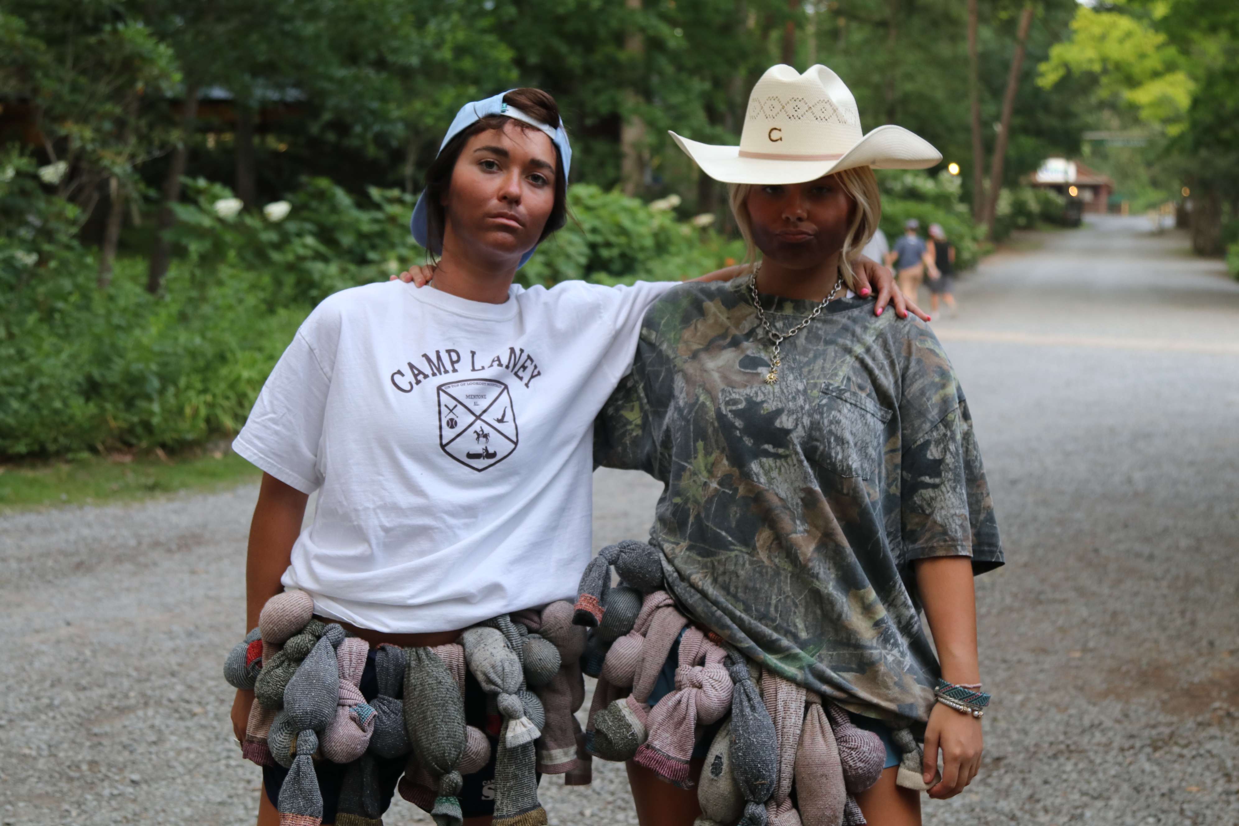 As the day came to an end it was time for everyone to come to dinner and enjoy tonight meal of BLT’s, chips, and of course snickerdoodle cookies for desert. but there wa something a little different about dinner. The counselors were all dressed like the boys from Camp Laney as they prepared for tonights activity of Get Skyline back. Now don’t get ahead of me, just take your time and keep on reading to see what it all was about. Would you believe, at the end of the meal, those “boys” who were at dinner with us all jumped up, starting singing some Laney song and running around and then went and “took” the club leaders along with the club flags and leader boxes. Once they took the leaders and their goodies out of the dining hall they hid them in 3 different areas of camp and it was up to your campers to go out and form a rescue of their beloved leaders, flag and club box. Now don’t get too worried, you know your campers aren’t gonna let those “boys” just come in and take their club leaders, just as soon as they finished the last plate of snickerdoodles (you can’t form a rescue on an empty stomach) they headed out and went to gettin after those no good for nothing boys! Of course the counselors were armed with stuffed socks (yea…. we use a LOT of those up here) and all the campers had to do was get 4 campers around the legs of a counselor without getting hit by one of the socks the counselors had. Once all the counselors were “captured” by having the 4 campers around their legs the leader was free and they all went back to the dance hall to get their next clue as to where their flag was and then again to find their club box. You would have been proud of your campers the way they came in wave after wave trying to get to the counselors while avoiding the stuffed socks that were filling the air everywhere you looked. If a camper was hit by a sock all she had to do was report back to the scorers table and then she was right back in the game going after they legs and trying to free their leader or flag. Sounds easy right?? You should try to explain it while typing!!!!