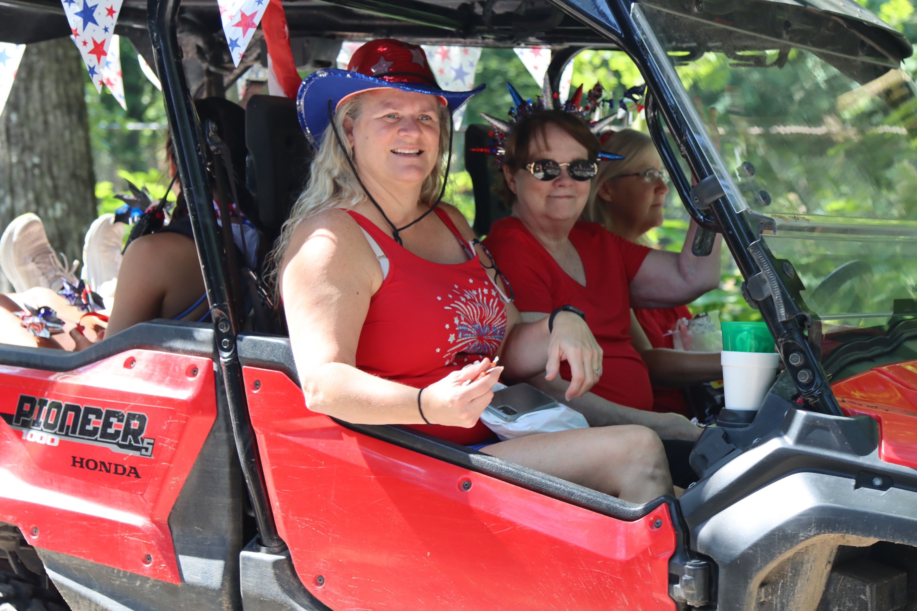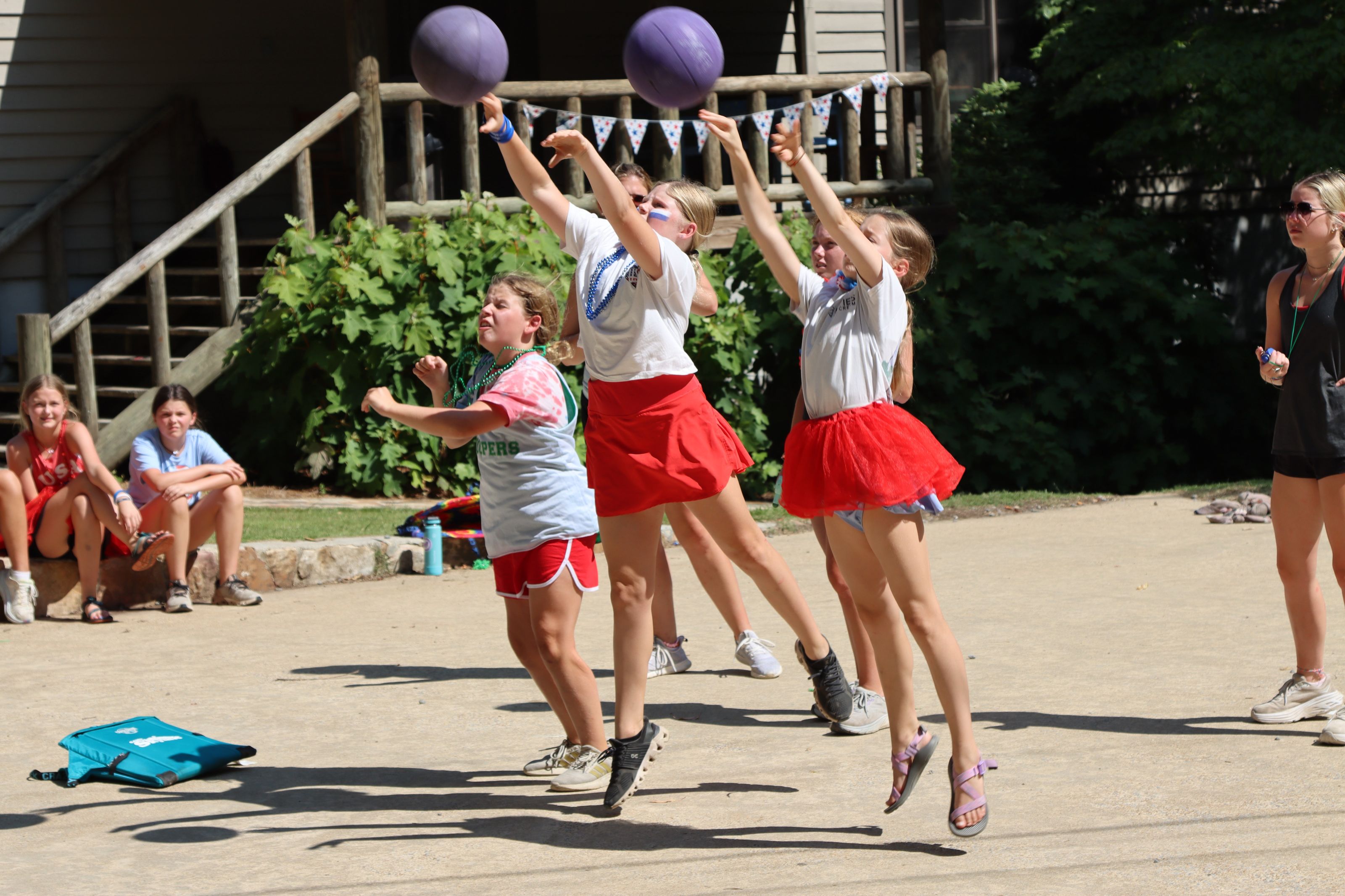 We started the day off the right way and thats with a little extra sleep! It sure paid off ‘cause everyone had an amazing amount of energy all day long. I honestly don’t know how your daughters do it. After a special flag raising where we had 2 of our very own campers sing an amazing rendition of the Star Spangled Banner in front of the whole camp. What a super job they did too as every camper was giving them a standing “O” when they finished (and they deserved it too). After that it was time for breakfast and then off to get ready for our own parade of cabins and clubs through camp. There was patriotic music playing through all the speakers and highly decorated signs being marched through the parade by cabin and club members. Of course our horse barn staff was up front and center proudly flying our country’s colors as they lead the parade. If ya look through the pics from this morning you might even see some colonial counselors decked out in authentic gear. All the campers loved the parade as they were standing sitting and cheering from the side of our parade route and patiently waiting for the parade participants to throw some candy their way!