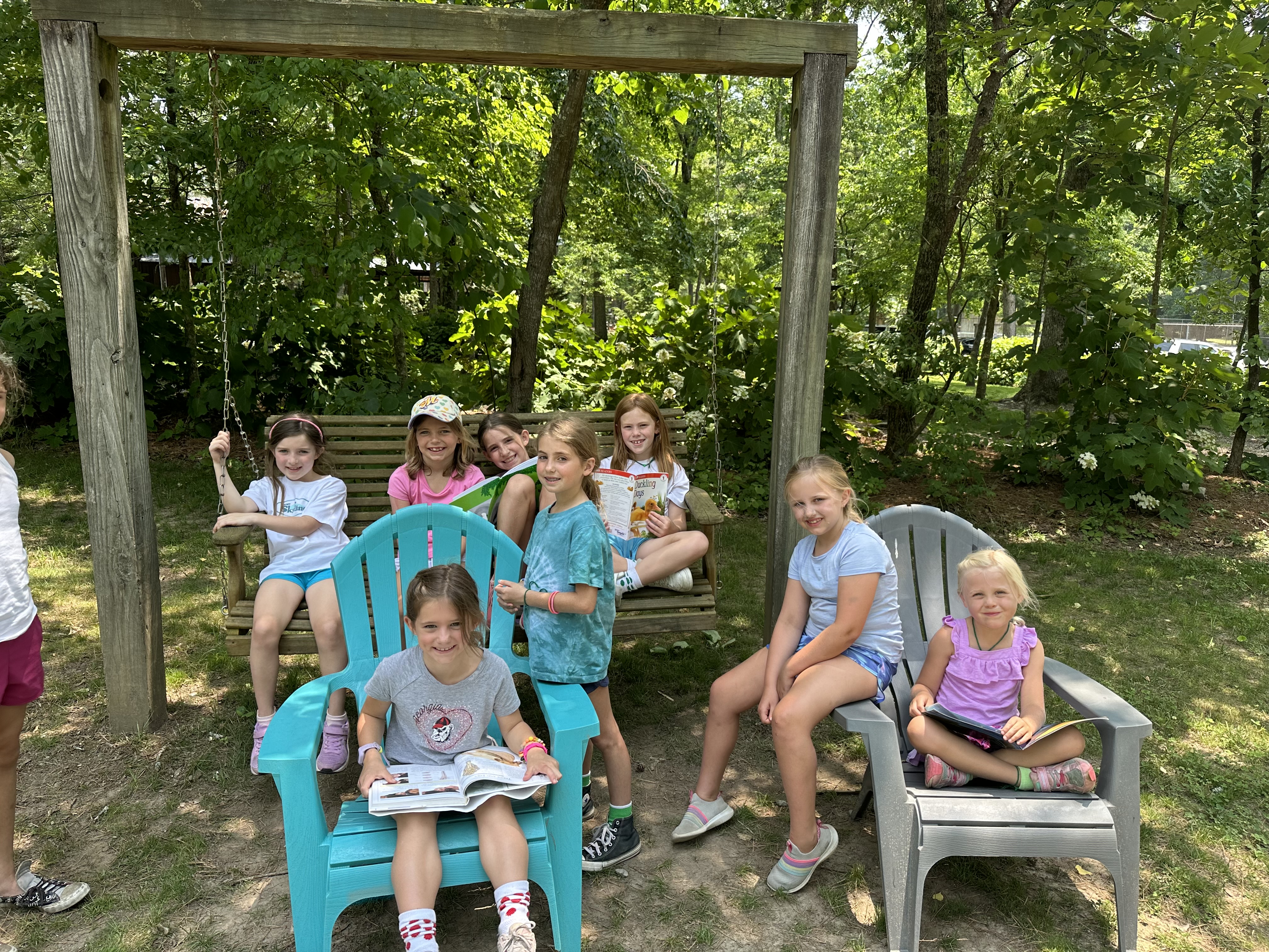One of my favorite times a day is Beli Deli where your child has the opportunity to grab a snack and just hang out with 200 or so of their friends. As you’ll see in pictures we now have a Book Nook on both sides of the river for the girls to have time to just sit and read. And of course the Gaga Pit and the rope swing are always a favorite during this time as is sitting on the gym steps and making friendship bracelets.