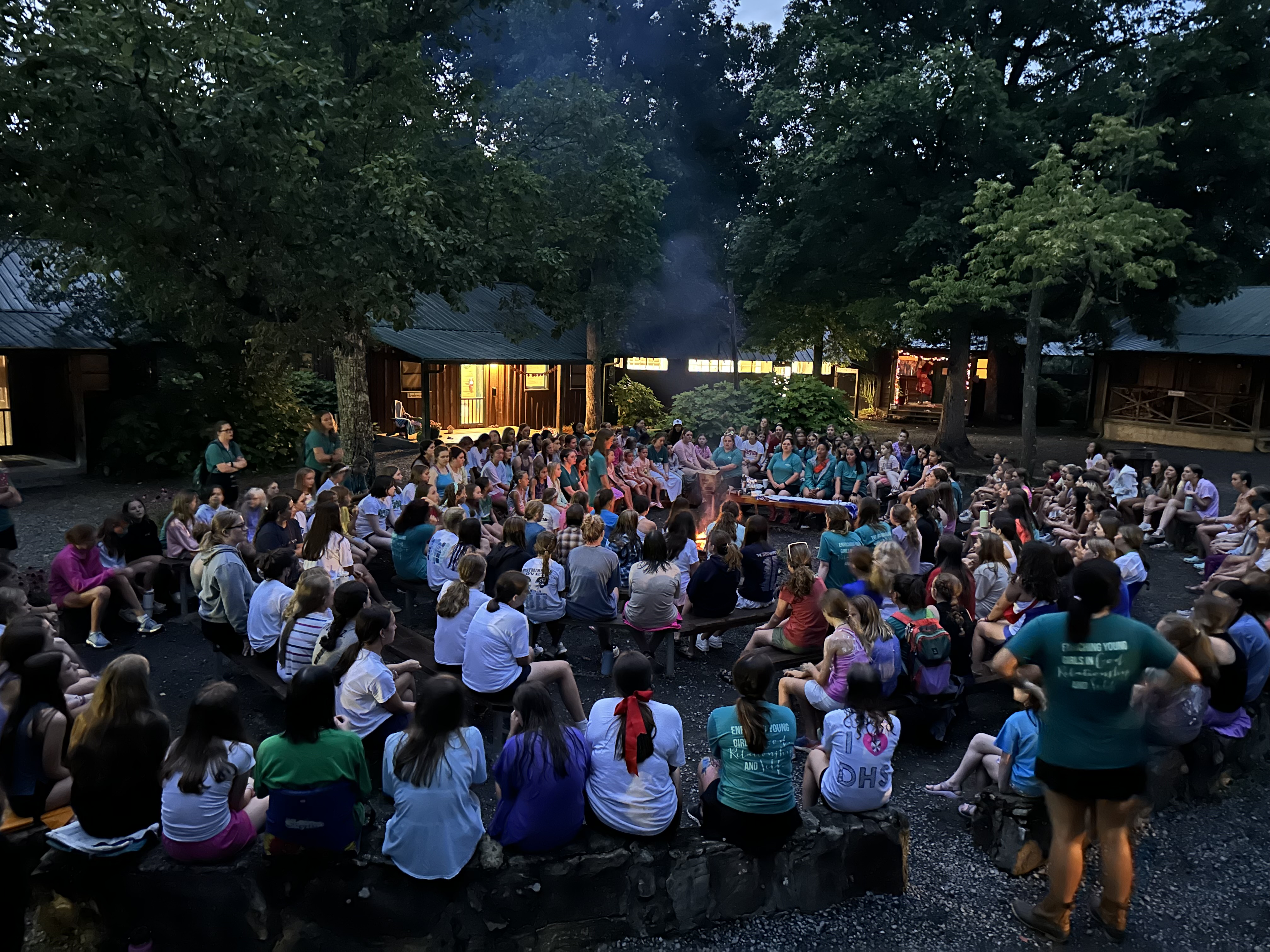 Now back to what the campers did today! Tonight we like to start the session off with some more “get to know your cabin mate’ type activities so we had our cabin fun night where each cabin gets to choose what they want to do just with themselves. Some of them enjoyed the pool, shaving cream fights, hungry hungry hippo (human version), karaoke, painting their counselors faces and of course, since were a girls camp you know we had to have a spa and make over session. The best part was all during the cabin fun night session each cabin took turns coming to the campfire to enjoy some good ol’ fashioned S’mores. At the end of the night all the campers gathered around the campfire for some singing and our night time devotion. This is the only time all session when all the campers will be at the same campfire. After this the older girls across the river at Summerplace and Riverside will have they own campfire with their own devotion and some singing too.