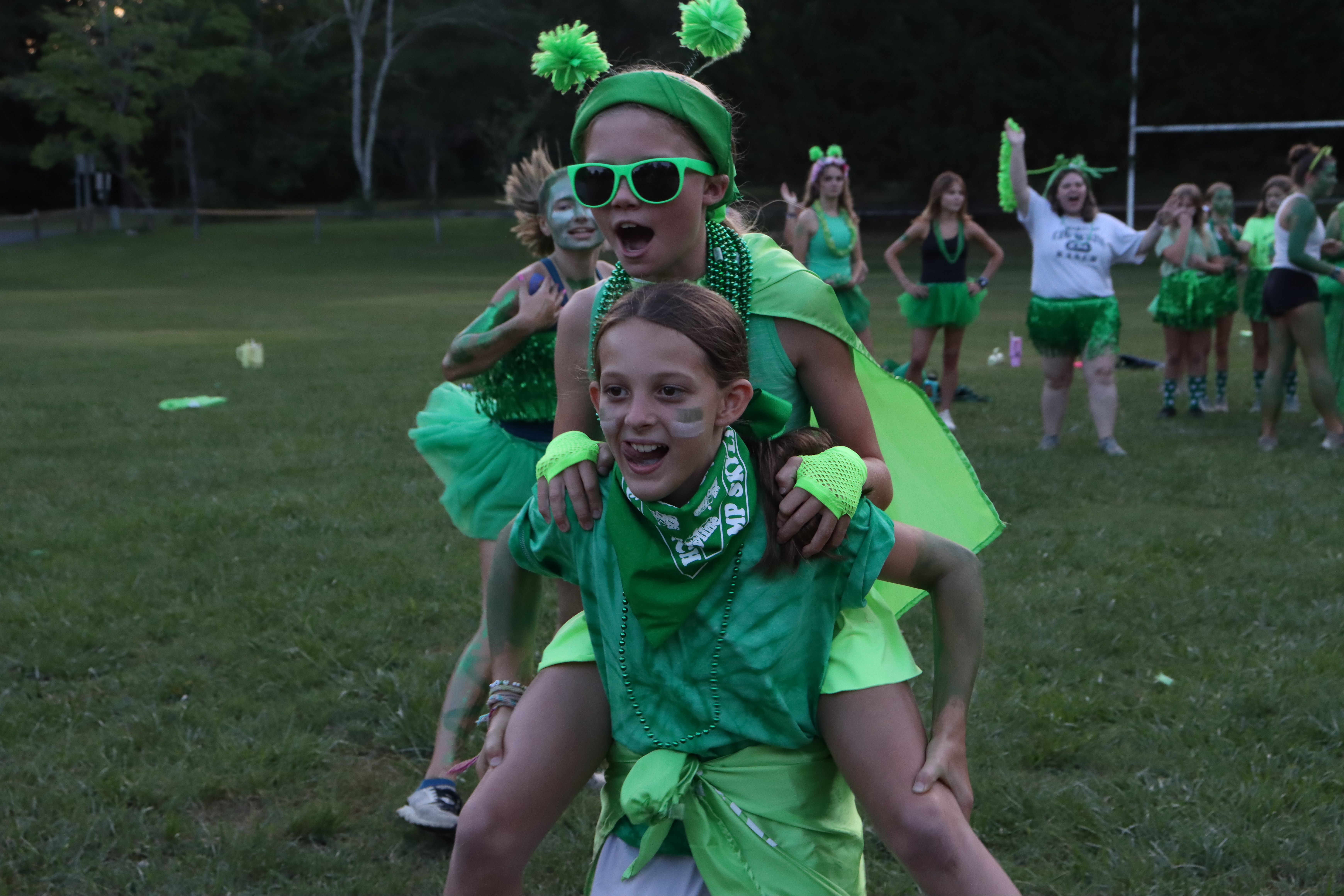 Tonight’s activity was Speed Challenge which is a club competition! Speed challenge is a huge relay race that goes non-stop with so many tasks! And the girls cheer and have so much spirit the entire time! It is so high energy adn I know these gals are going to sleep good tonight, most of them dyed in their club color from body paint…
