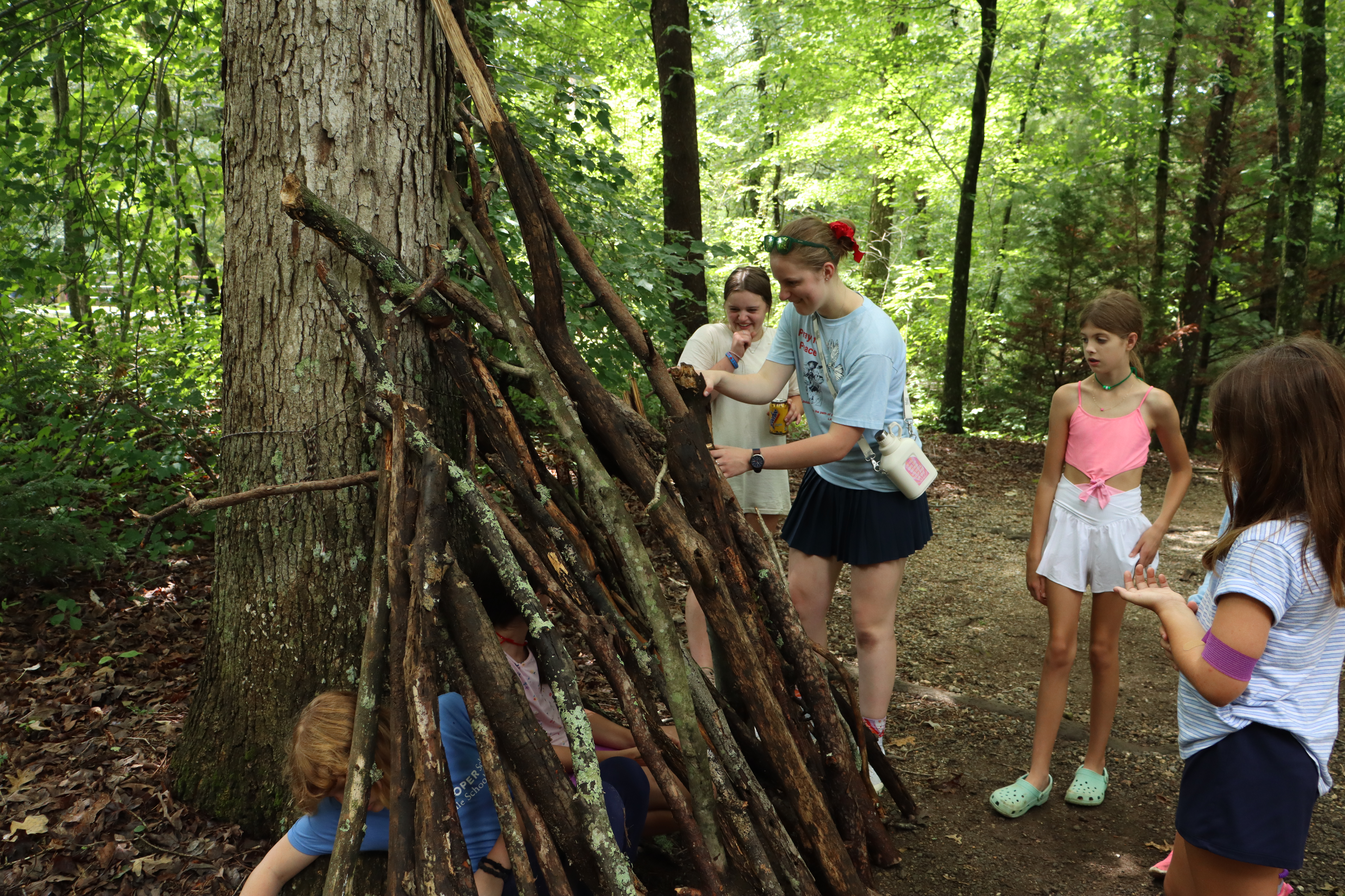 Outdoor Adventure class built a small shelter out of materials found in the woods! It seems to have held up well!
