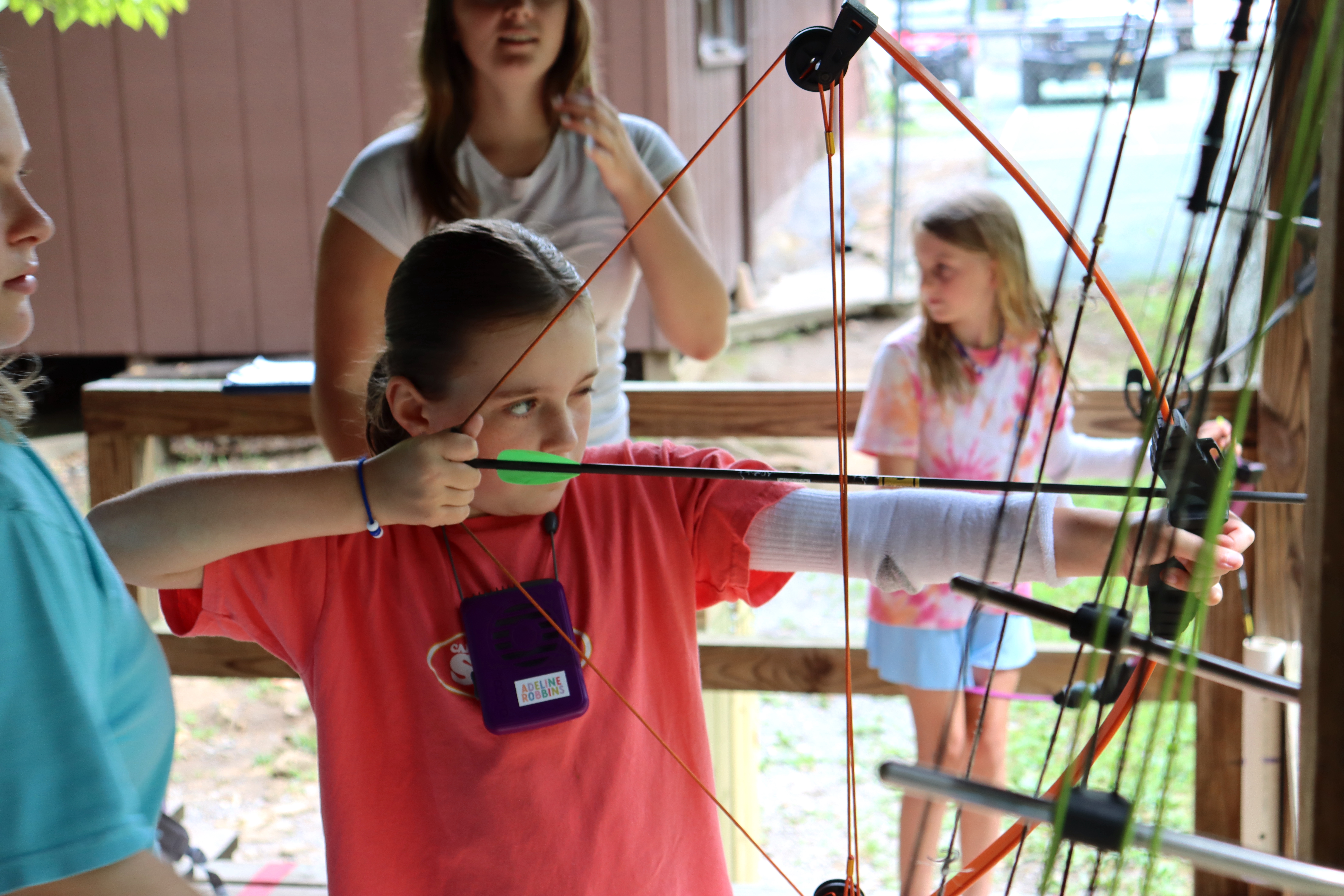 Hi everyone! My name is Alexis and I’ll be bringing you the blog today! I’m so excited to fill y’all in on everything that happened at camp! Today was our first day of activities for our campers and let me tell you, they got settled in quick… and that’s no exaggeration! We already have girls going up in ropes and climbing to the top of the tower like they could do it in their sleep! Our ropes course is full of challenging obstacles to get across and these girls did it so effortlessly - they will look like pros in NO time! Horseback had a pretty laid back day where the girls got to show what they already knew and also learn new things and get more comfotable and confident with it! In cooking they were making CANDY SUSHI which I think the campers enjoyed a lot based off the fact that it’s all I heard girls talking about all day! Mountain Biking went to Laney today which is about a 2 mile ride there and back! Definitely a good warm up for all the exercise they will get this session! In third period Bible Study, Mrs. Frances was teaching from the book “A Kid’s Guide to The Armor of God” written by Tony Evans. The Armor of God is our theme for camp this summer and it comes from Ephesians 6! We’re already seeing bulls-eyes in archery… it’s only the first day!!! I have a strong feeling these girls have so much more talent up their sleeves, and I can’t wait to see it! Our girls in swimming got to BLOB today!!!!!! The blob is always oh so exciting! We also have a Lily Pad over by the dock for girls that choose to swim in the river! It’s safe to say that our girls are getting settled into their activites just fine and we can’t wait for the loads of fun we will have these next two weeks!