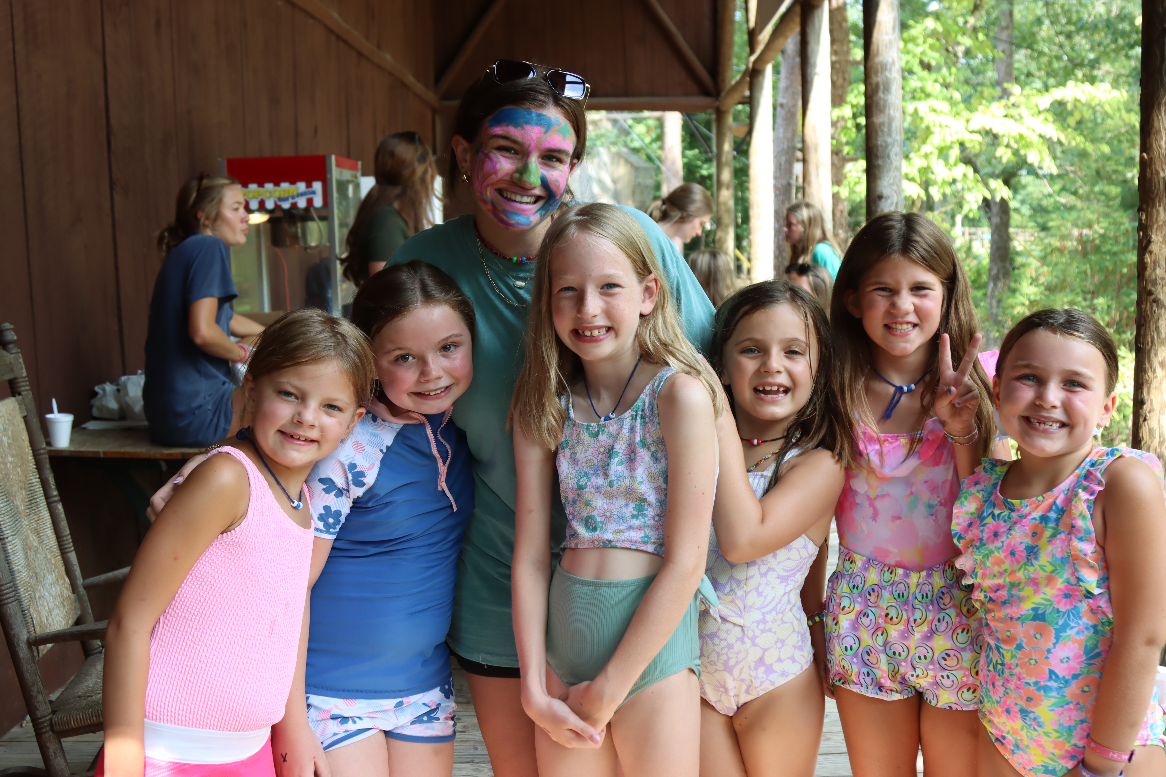 After some much needed rest, we had carnival! Carnival takes place all over campus with so many open stations. The pool, blob, inflatables, face paint, bracelet making, snow cones, popcorn, and just so much more! Fun takes place all over camp and the whole campus is full of life. For dinner we have a picnic where campers fix their plates and get to hangout around camp with their friends!