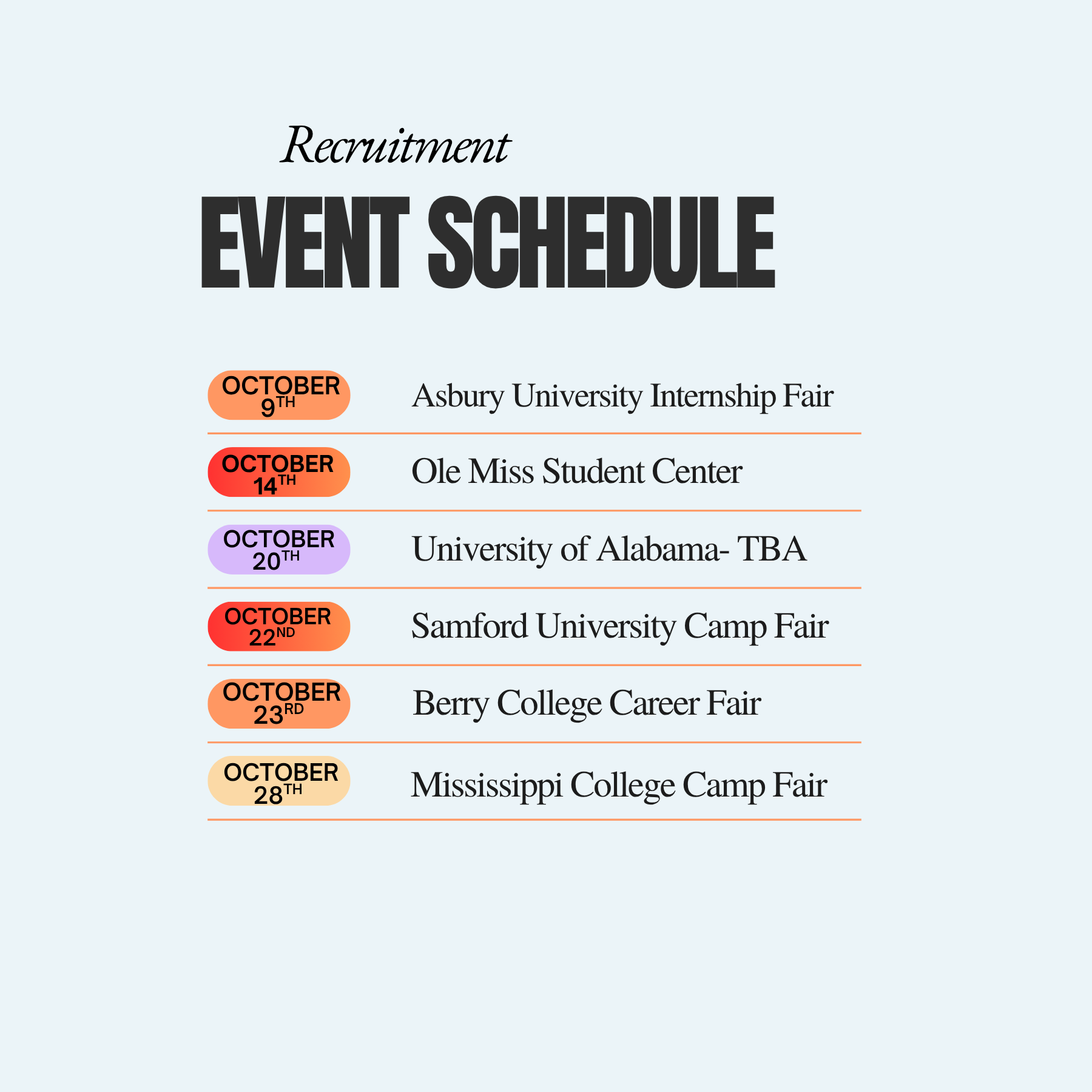 We’re excited to announce that this fall, we’re taking our counselor recruitment on the road! Throughout October and November, we’ll be visiting several college campuses and career fairs to meet young women interested in becoming part of our summer camp team.